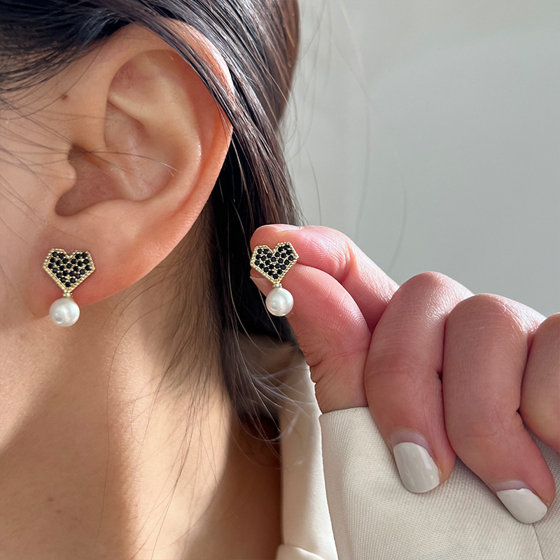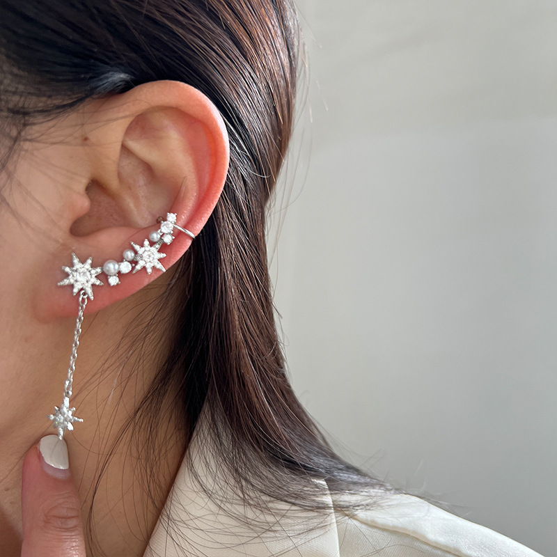 s925银针高级感轻奢珍珠耳圈女小众设计感秋冬耳环2023年新款潮
