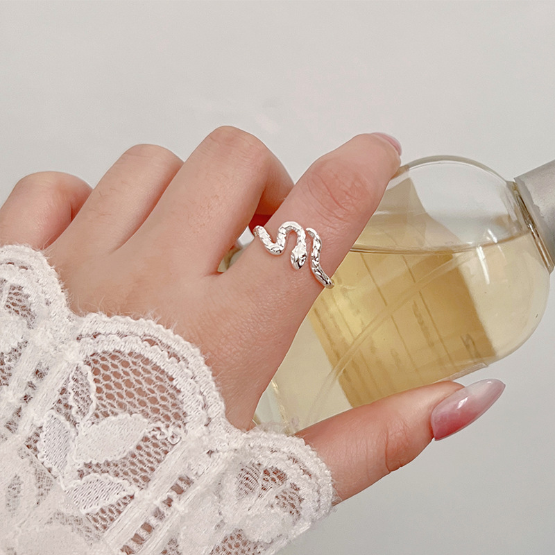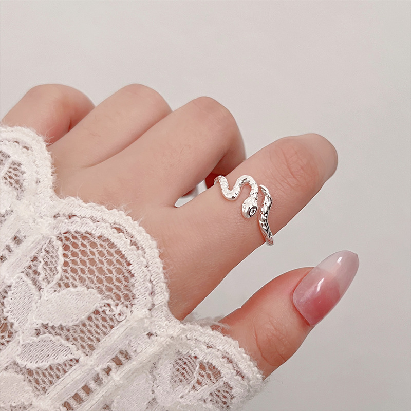 韩版几何型不规则银色蛇形戒指设计感个性ins潮网红气质简约手饰