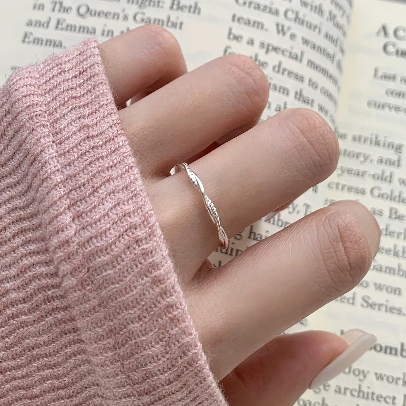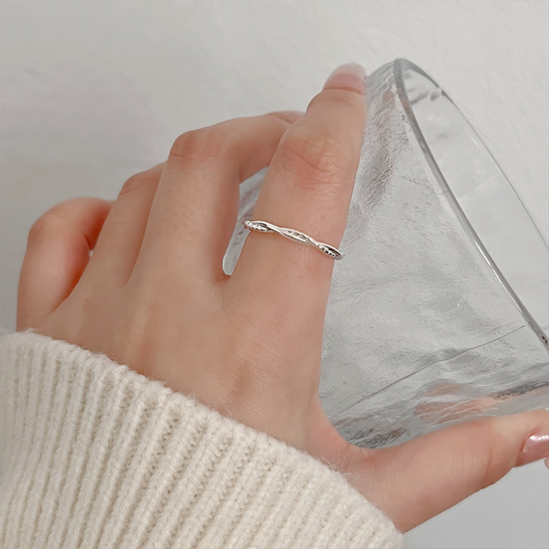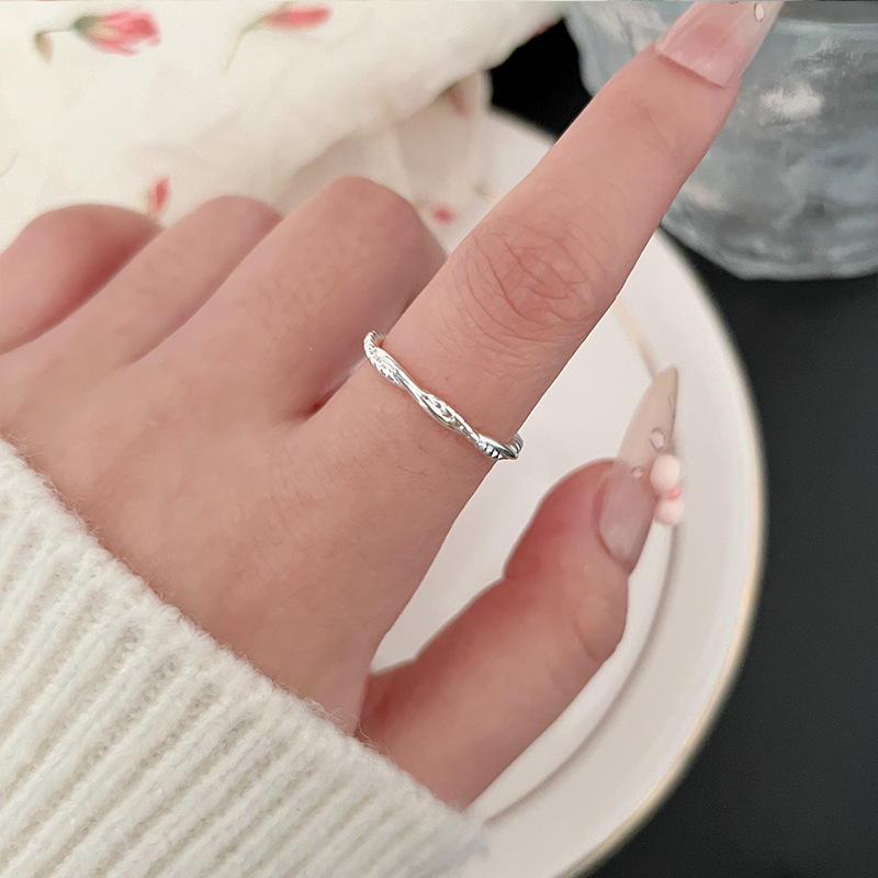 缠绕麻花开口戒指女韩版个性食指环简约小众设计时尚百搭