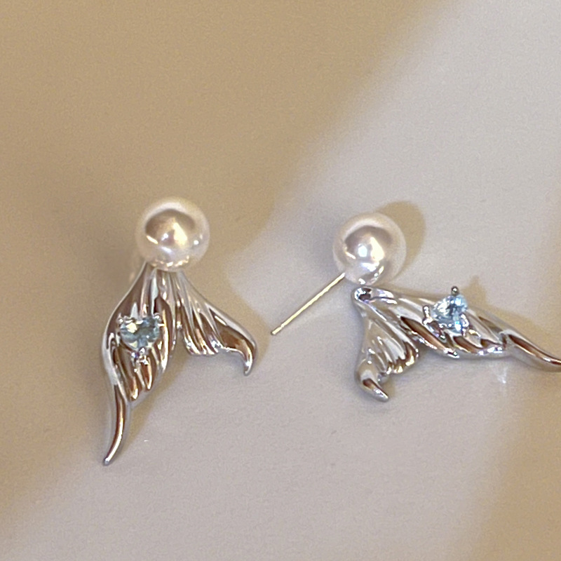 设计感褶皱鱼尾珍珠耳环女轻奢气质耳坠2024新款爆款独特耳钉耳饰