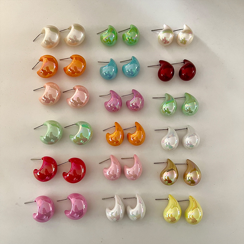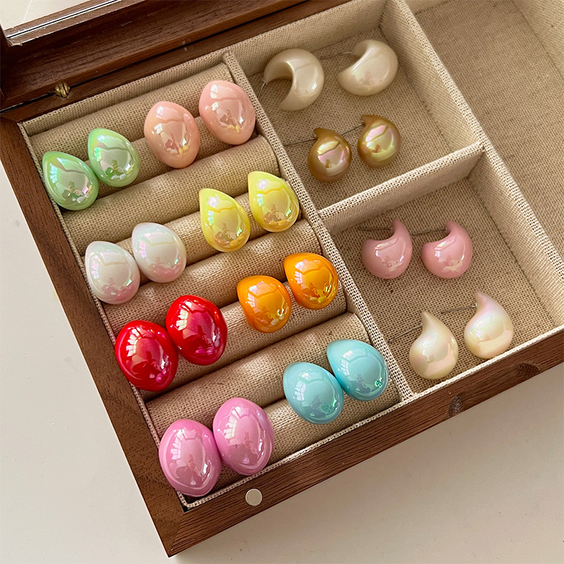 活力多巴胺色系豆豆耳钉水滴月亮亮闪耳环耳饰韩国简约气质新款潮
