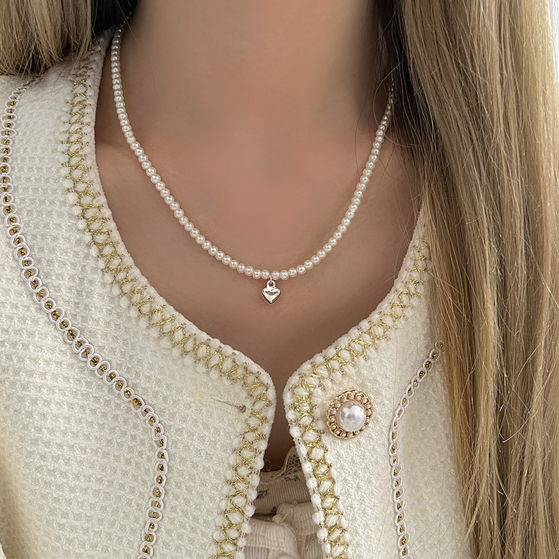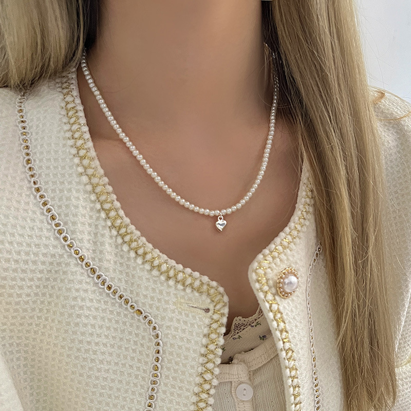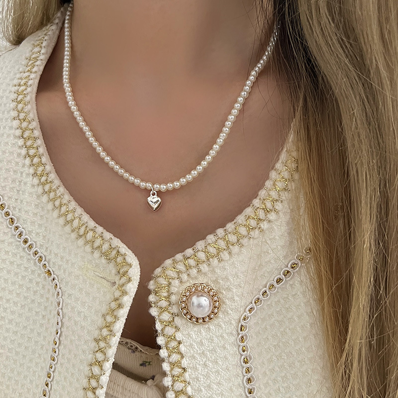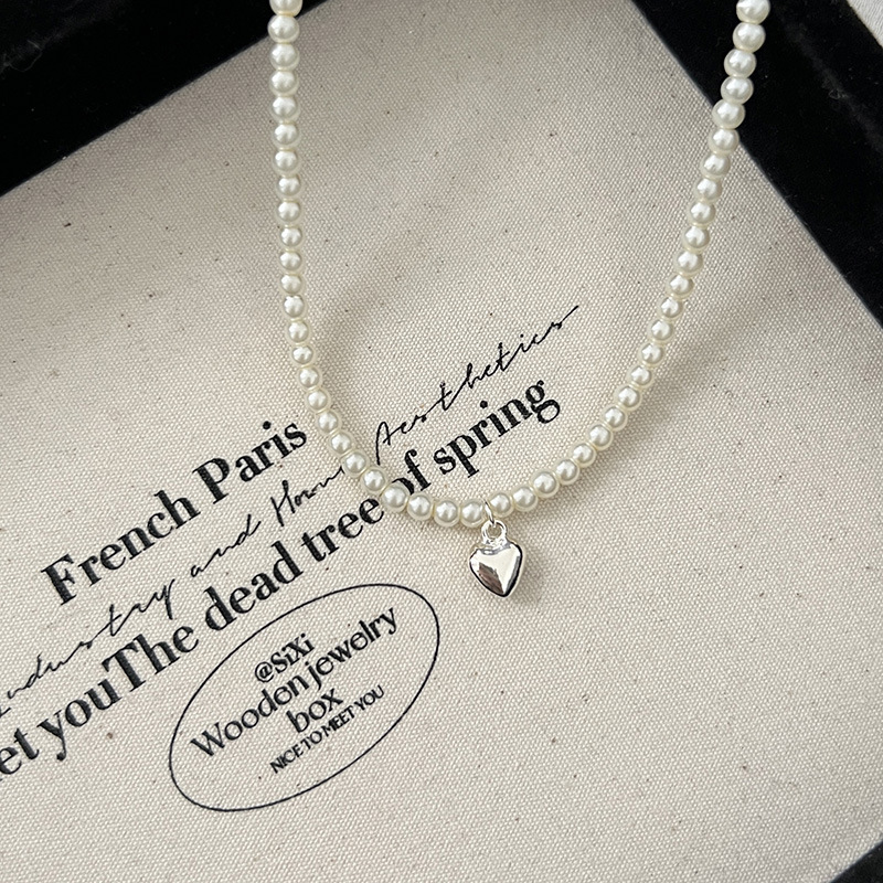 精致珍珠爱心项链女ins潮小众高级设计感锁骨链法式气质名媛颈链