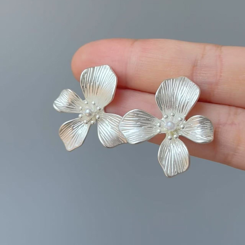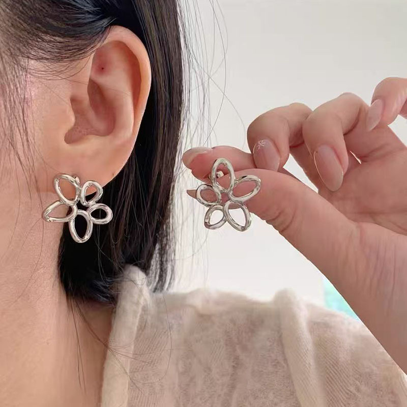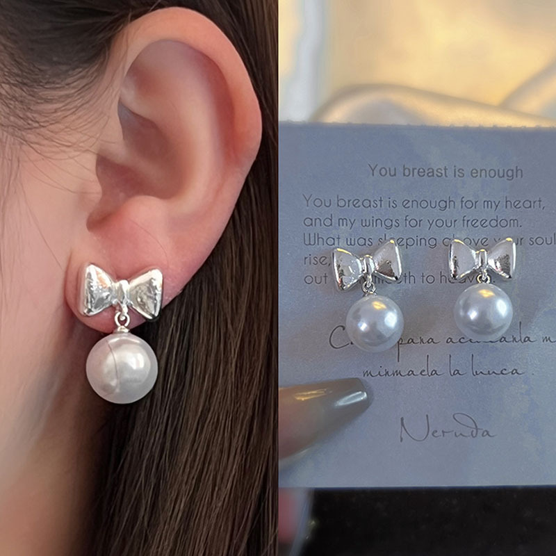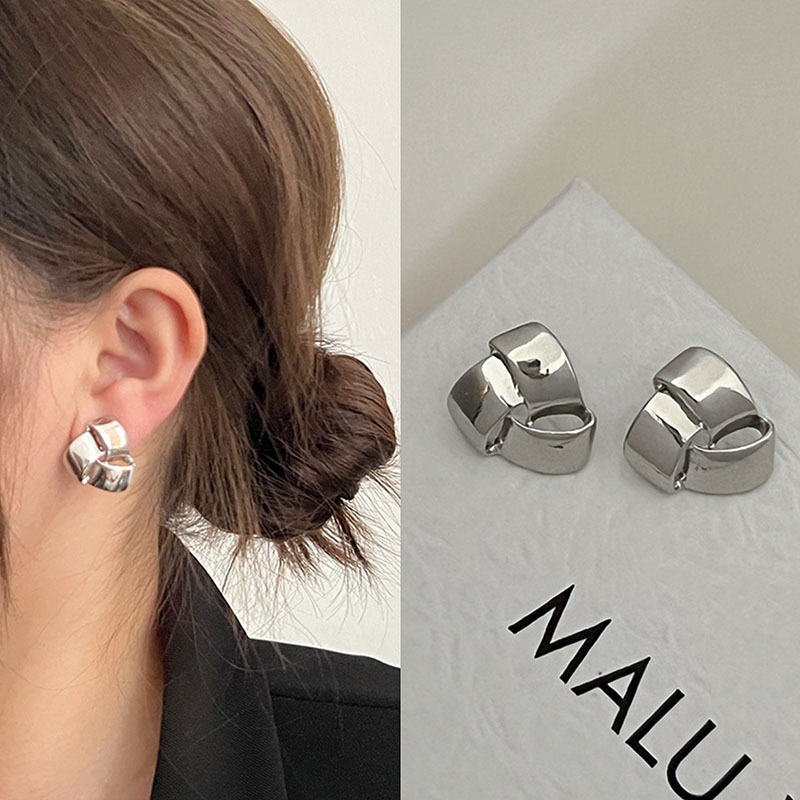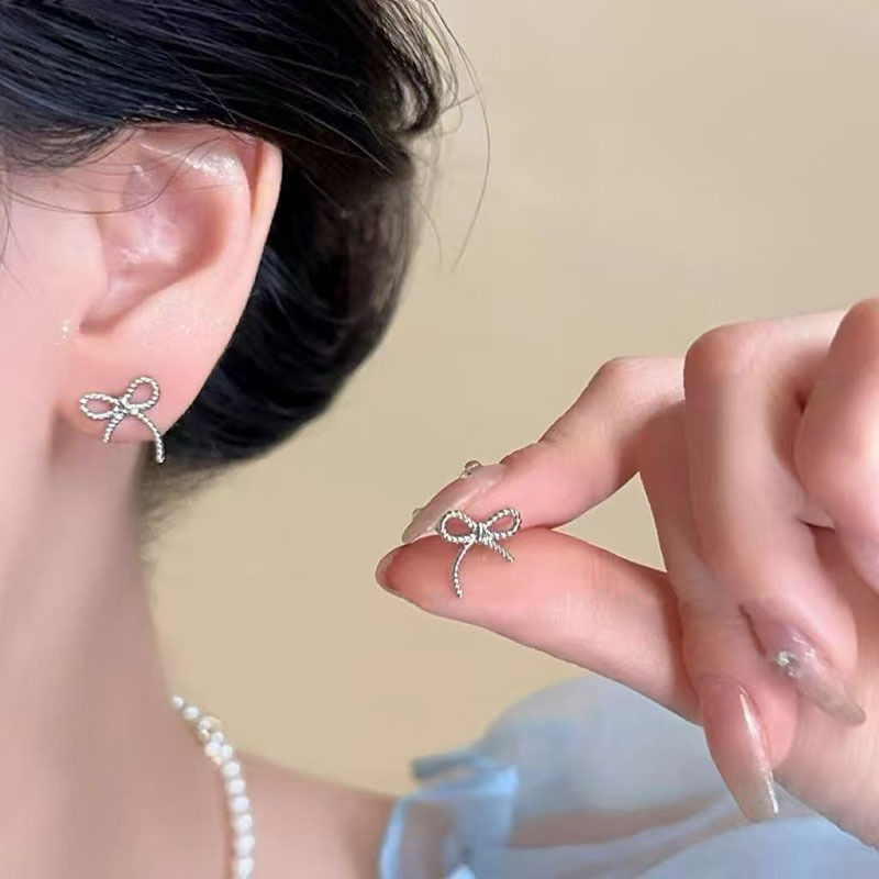S925银小众金属感爱心蝴蝶结耳钉女时尚设计轻奢耳环气质耳饰批发