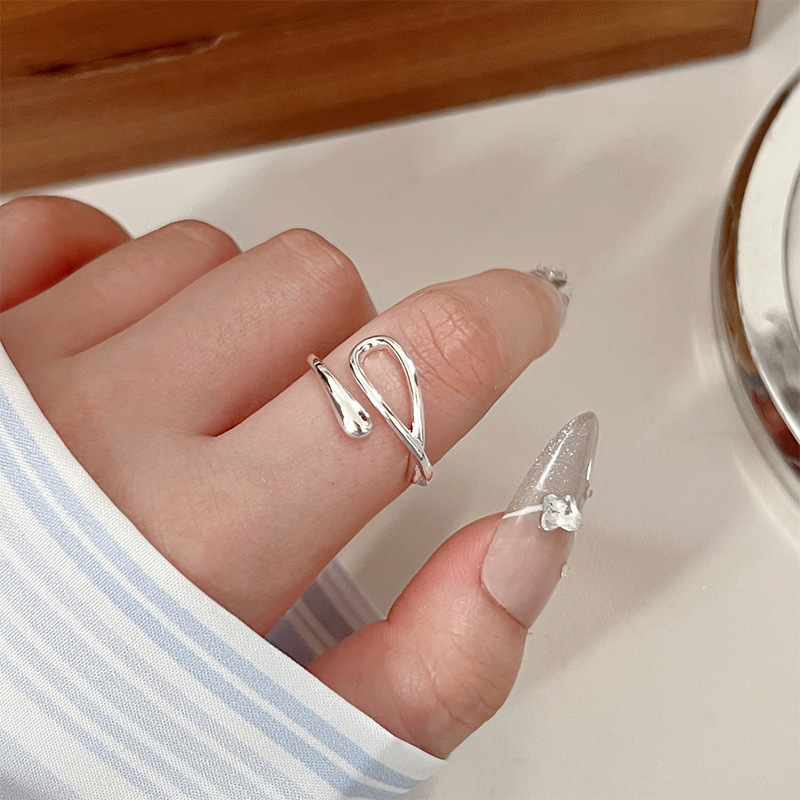 几何镂空水滴戒指女韩版时尚个性简约开口指环叠戴食指戒潮
