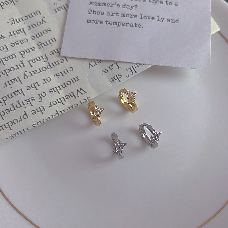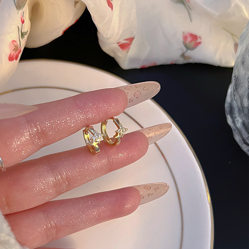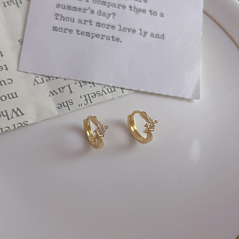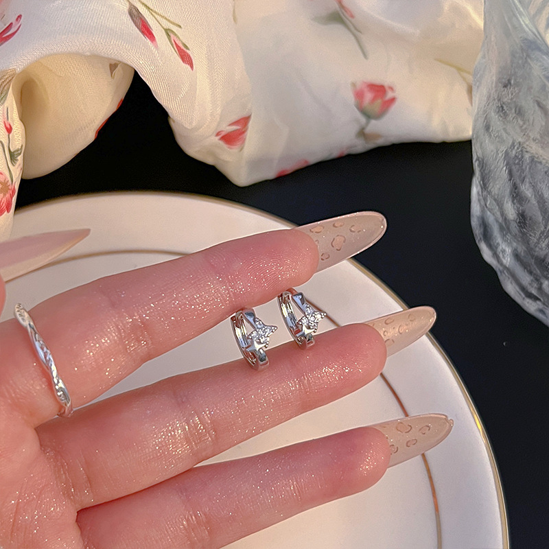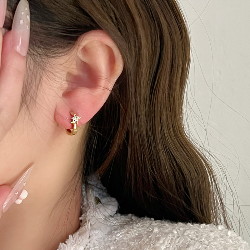 ins四芒星星镶钻冷淡风耳圈小众设计感耳饰叠戴耳扣耳环女