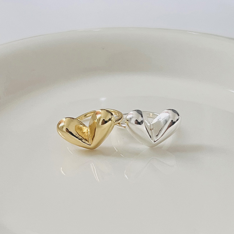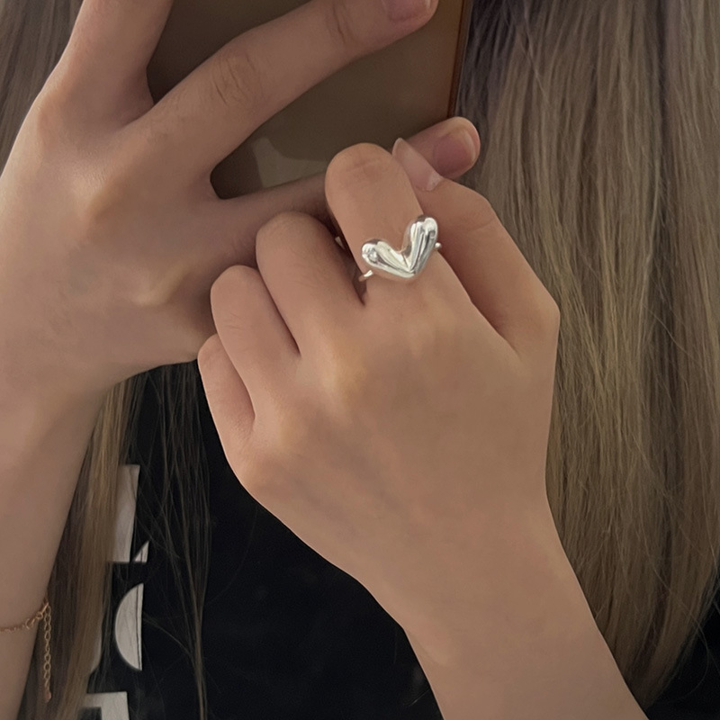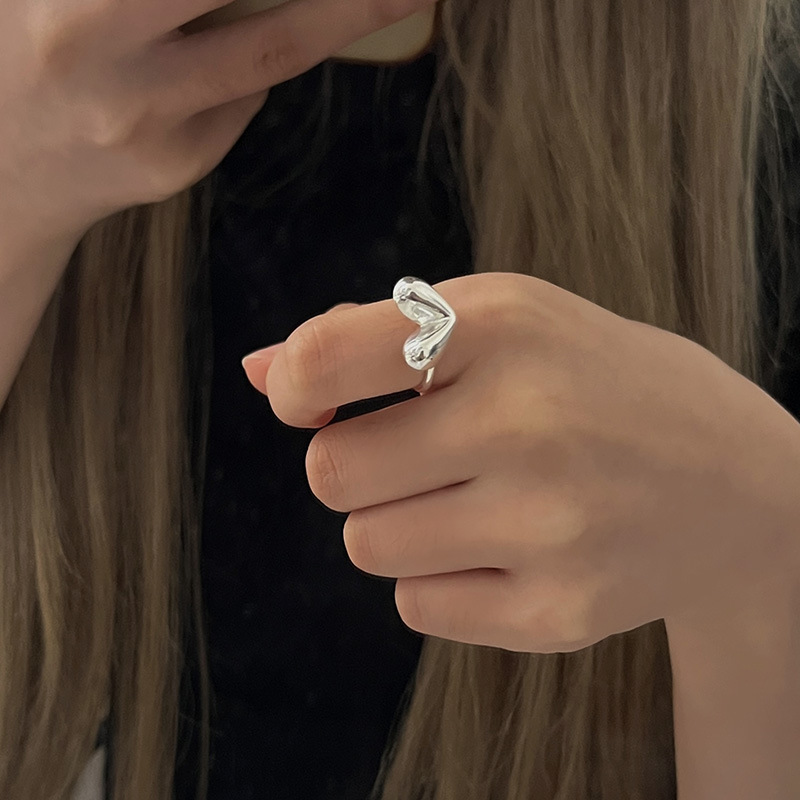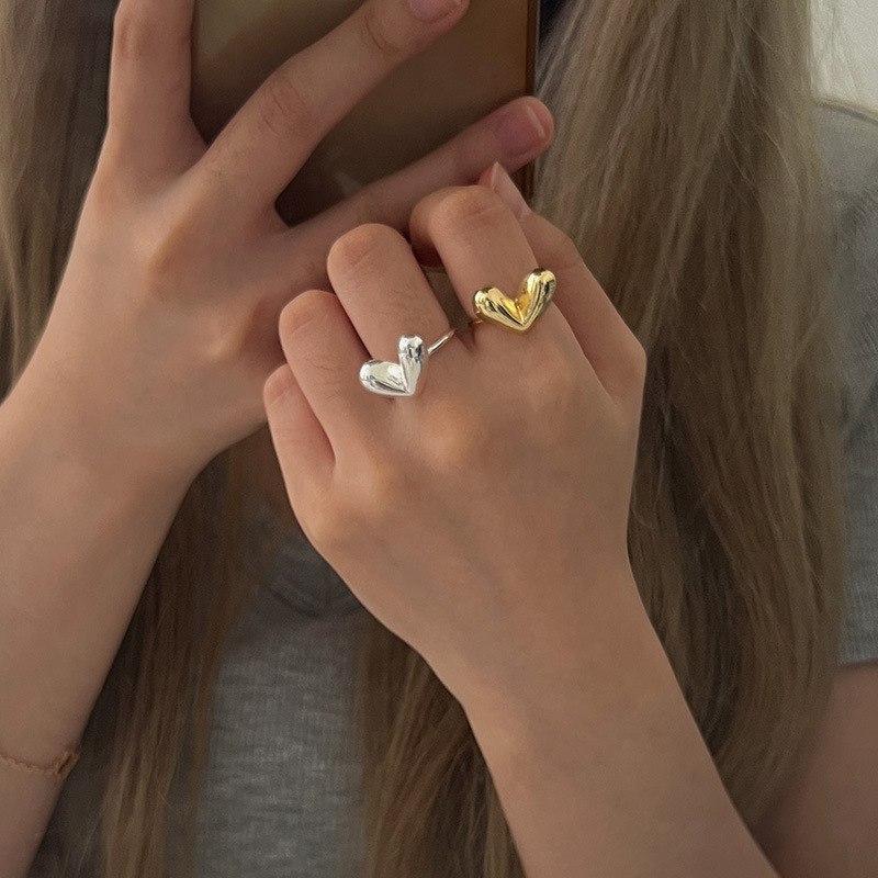 简约立体爱心戒指女时尚百搭个性开口可调节指环ins风小众食指戒
