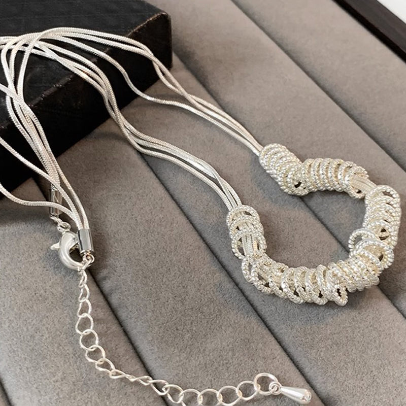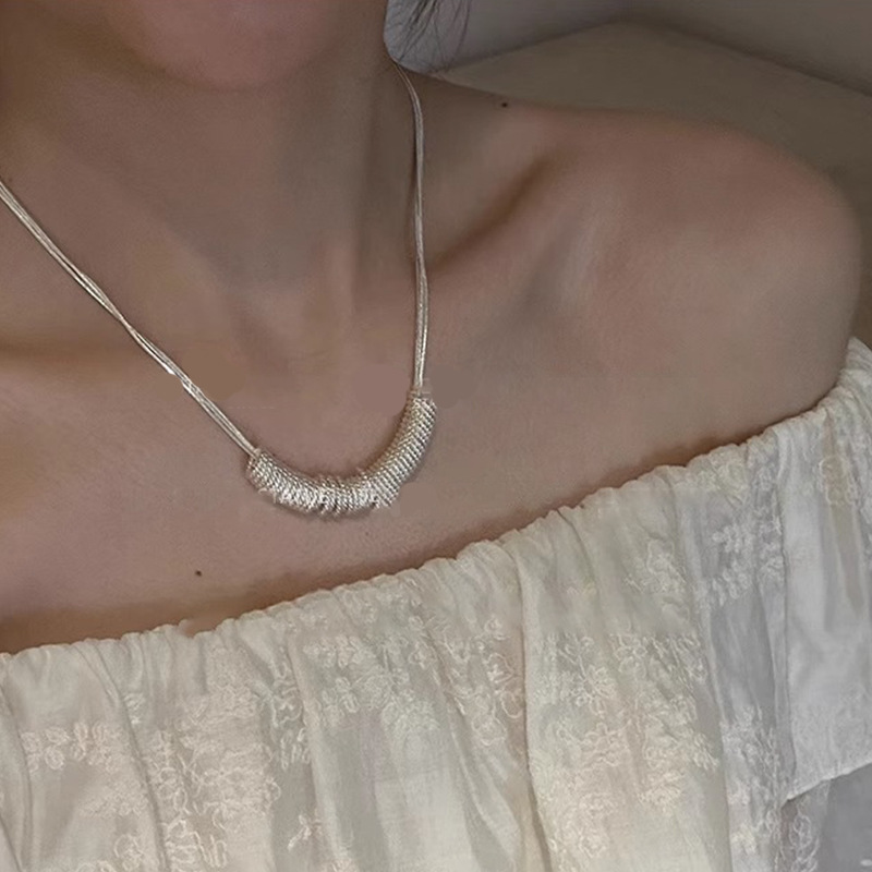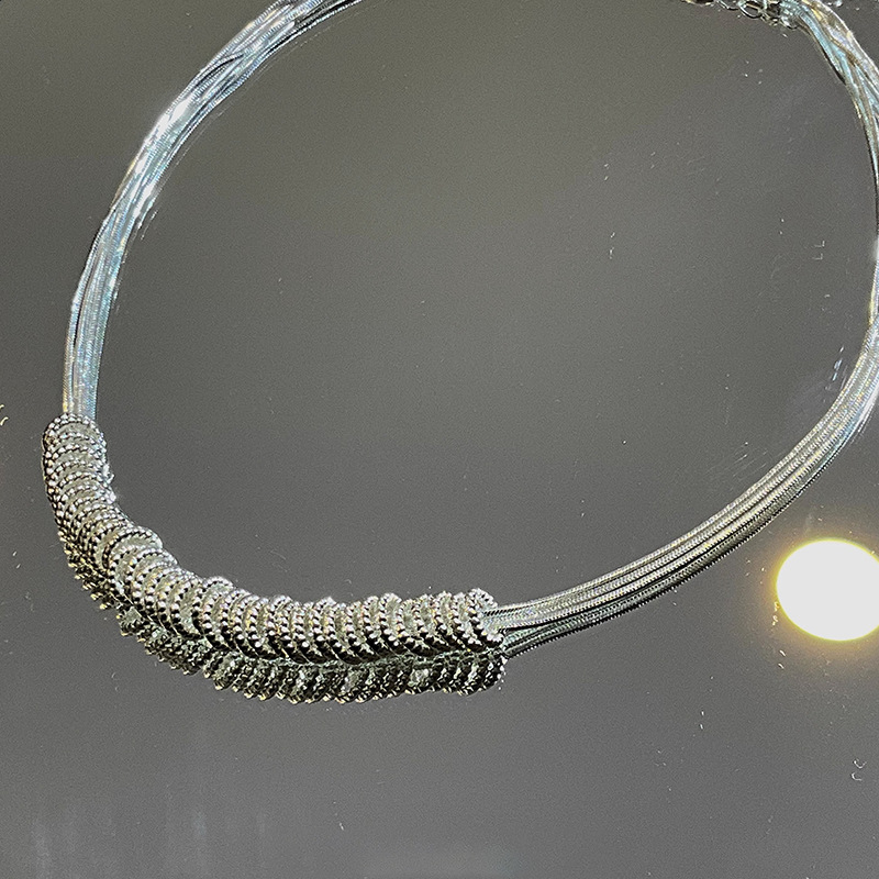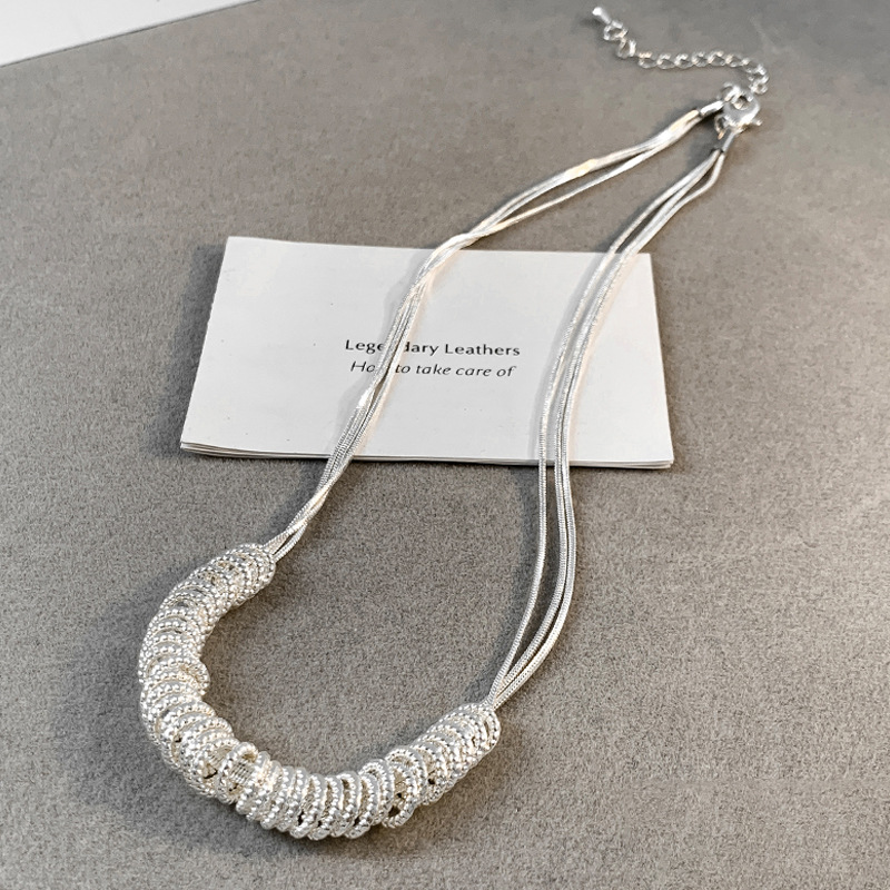 碎银子圈圈项链女不规则简约小众设计叠带百搭轻奢串珠锁骨链新款