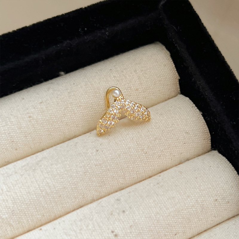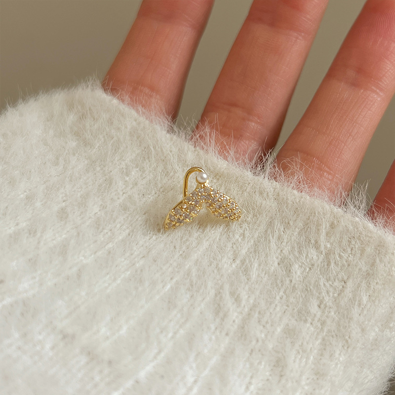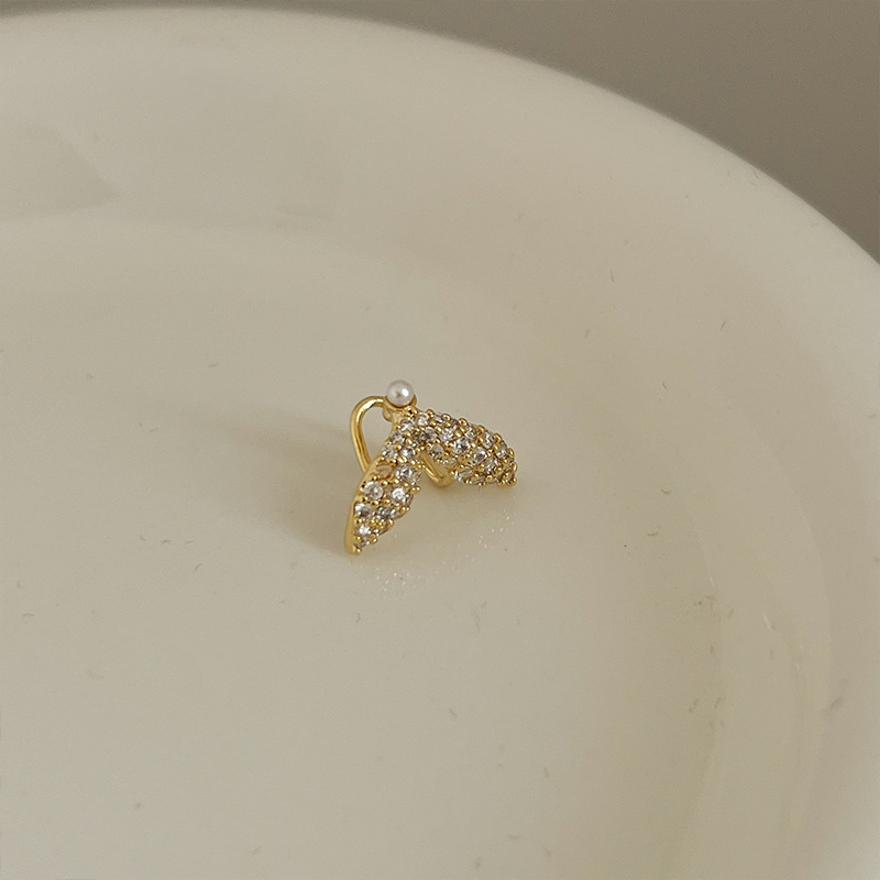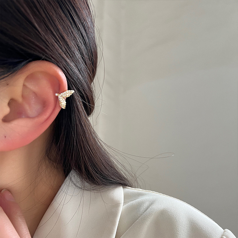 单只小众感锆石珍珠鱼尾耳骨夹耳夹女无耳洞耳环夏季款2024新款潮