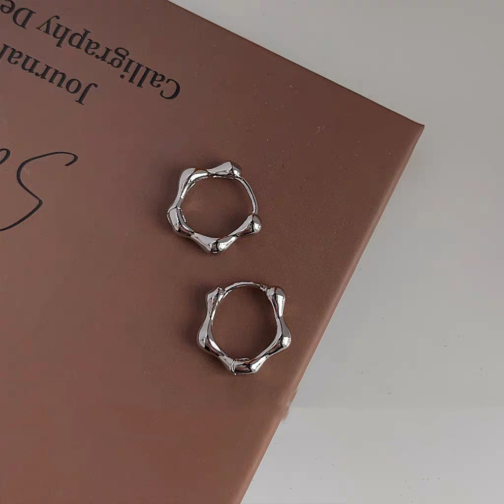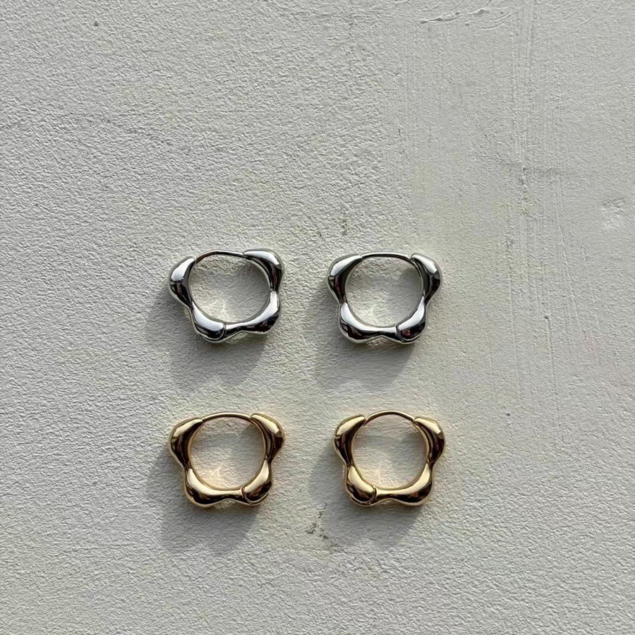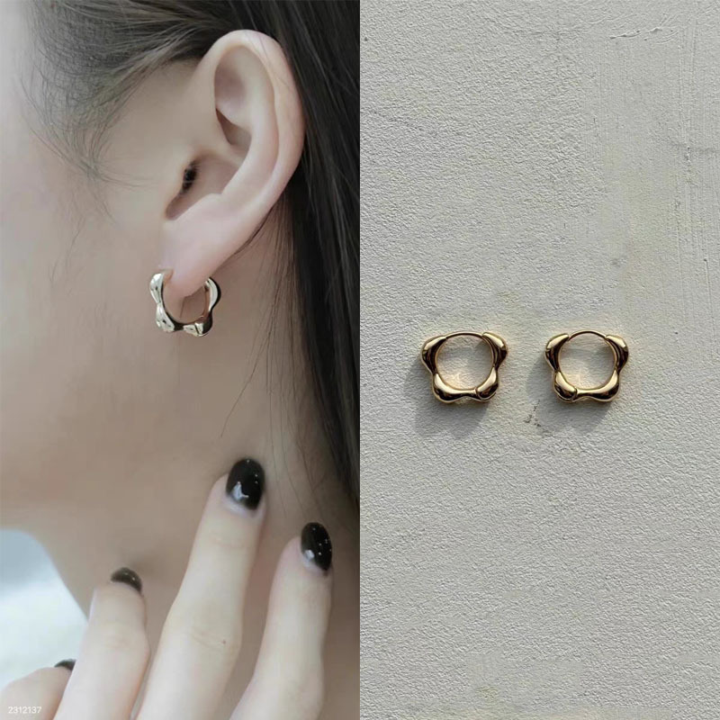 冷淡风波浪极简耳扣光面金属感素圈花朵通勤百搭高级感耳饰女
