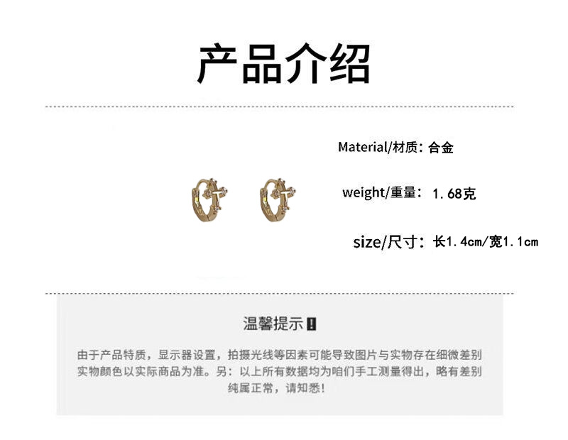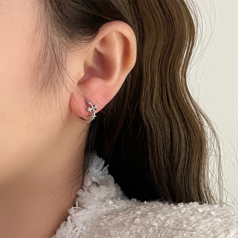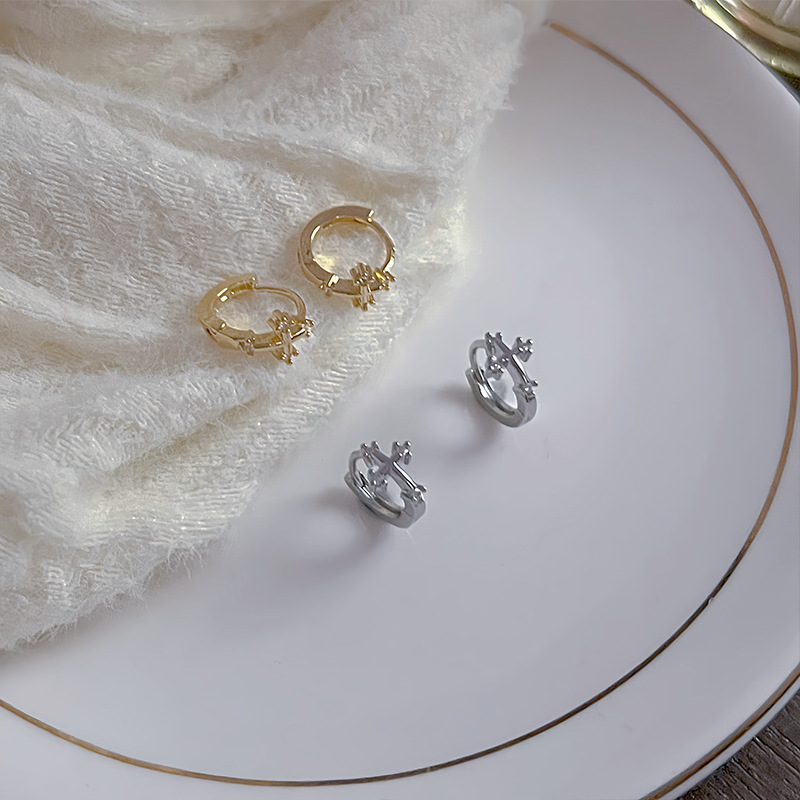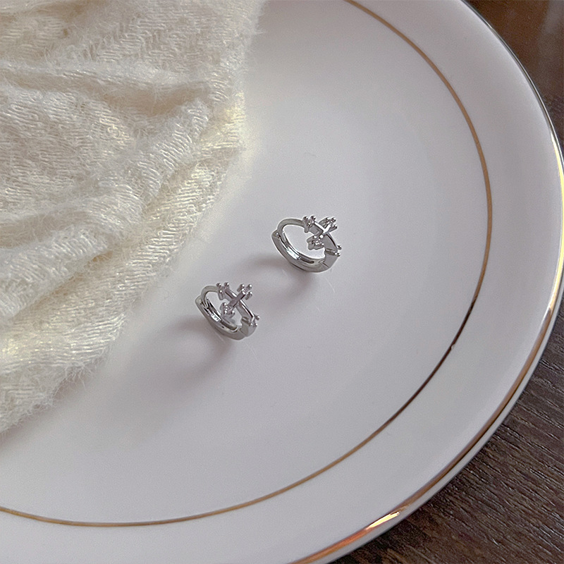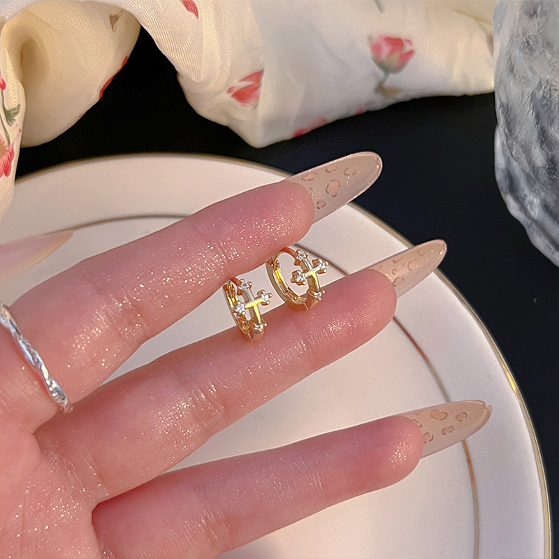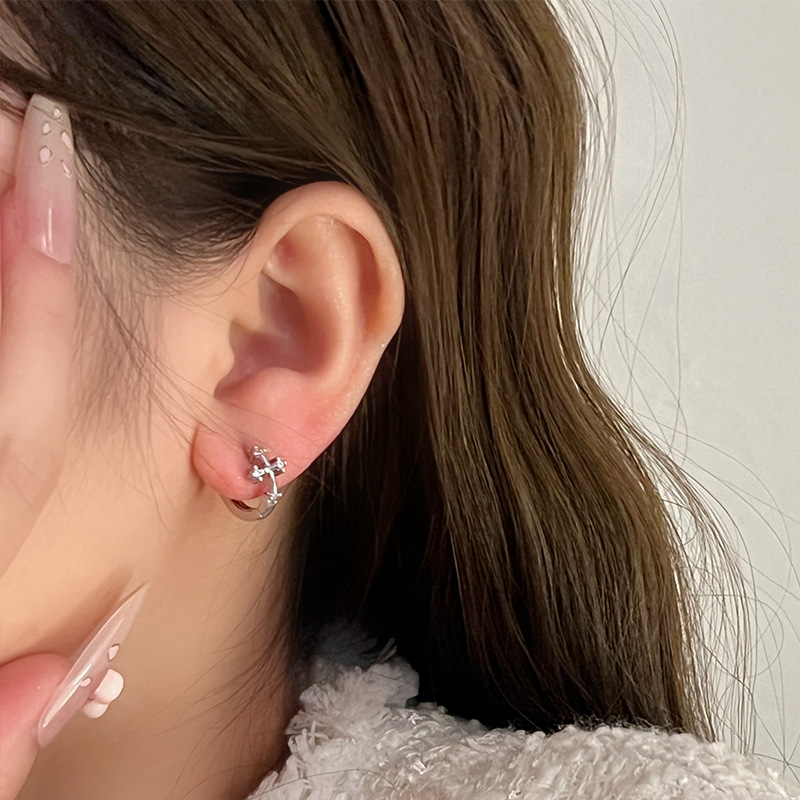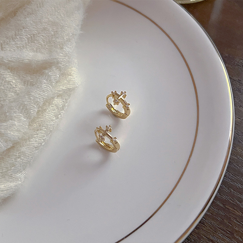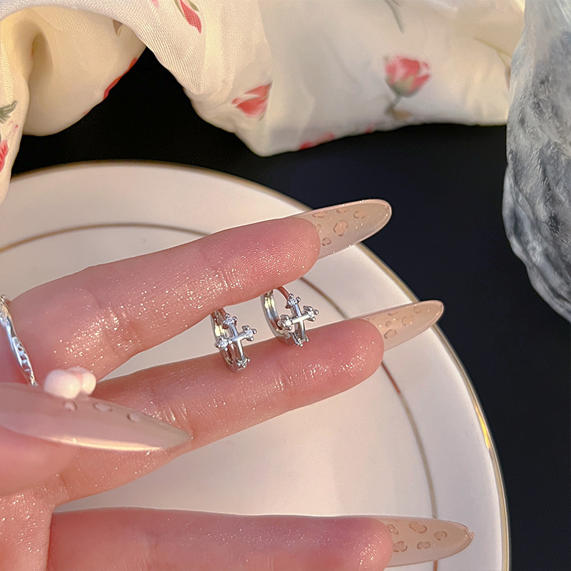 超闪锆石十字架耳扣气质百搭耳圈简约精致闪钻耳钉耳环