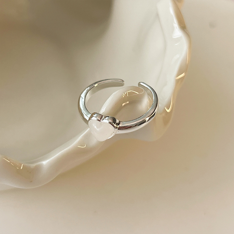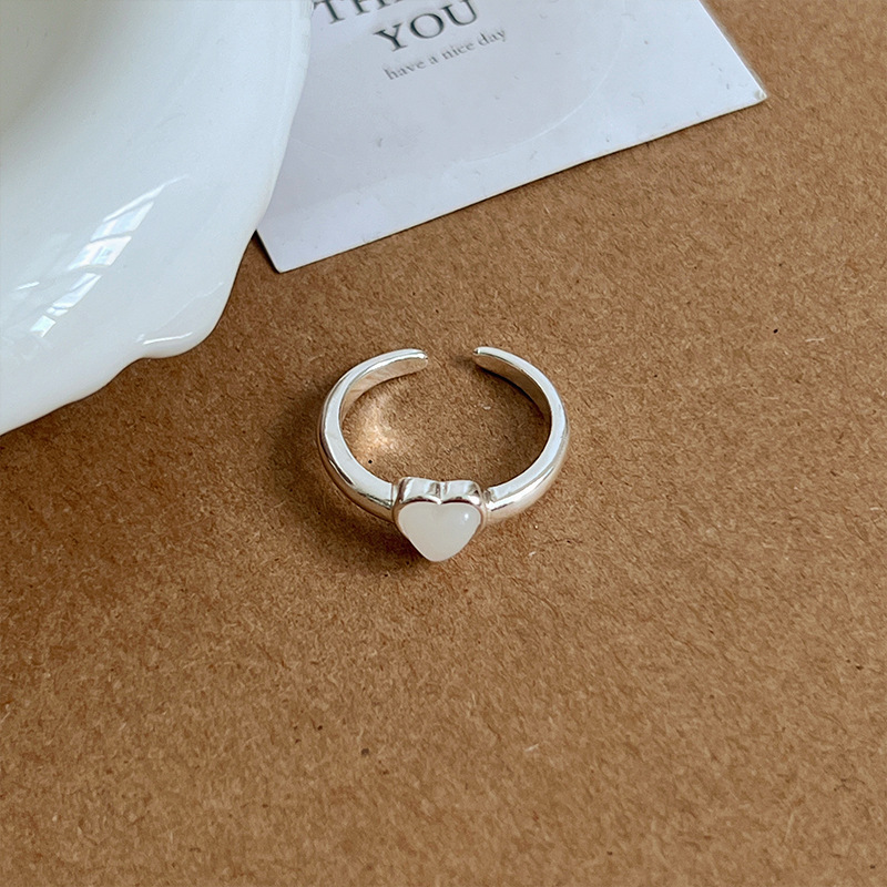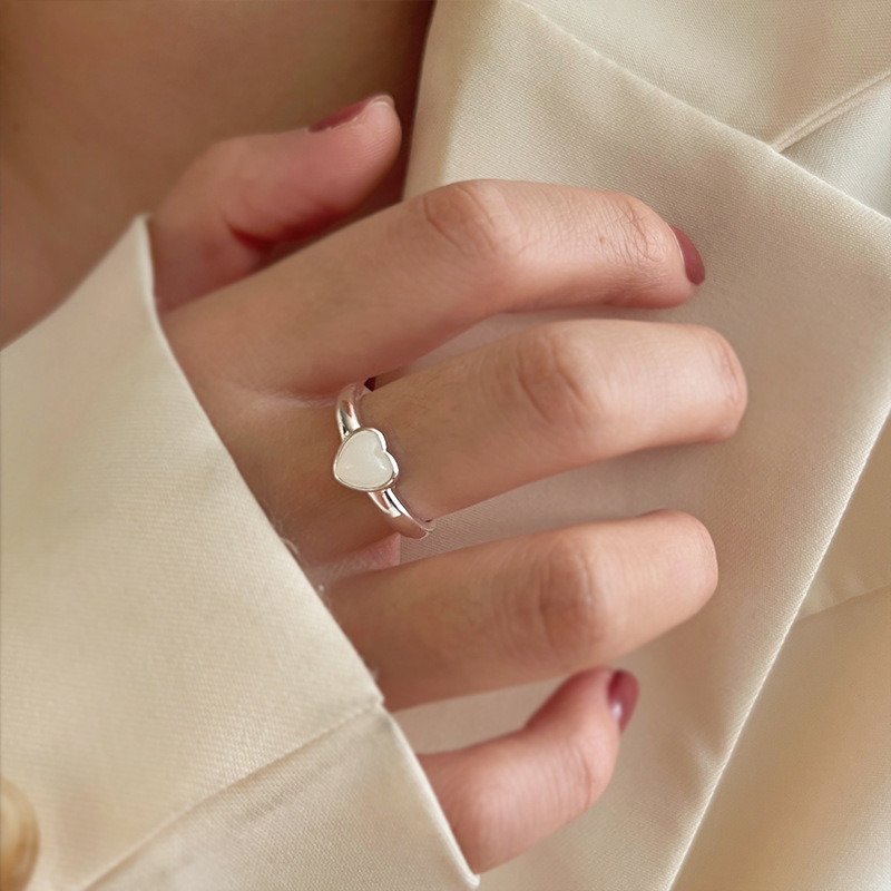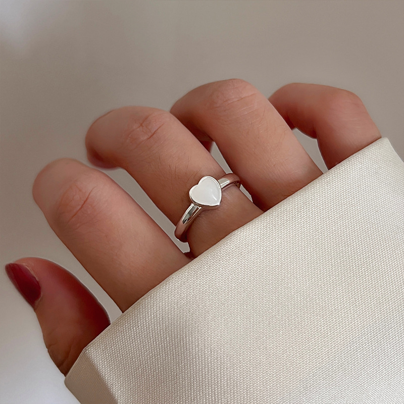 白贝壳月光爱心戒指女冷淡风时尚简约日韩气质百搭高级感森系指环