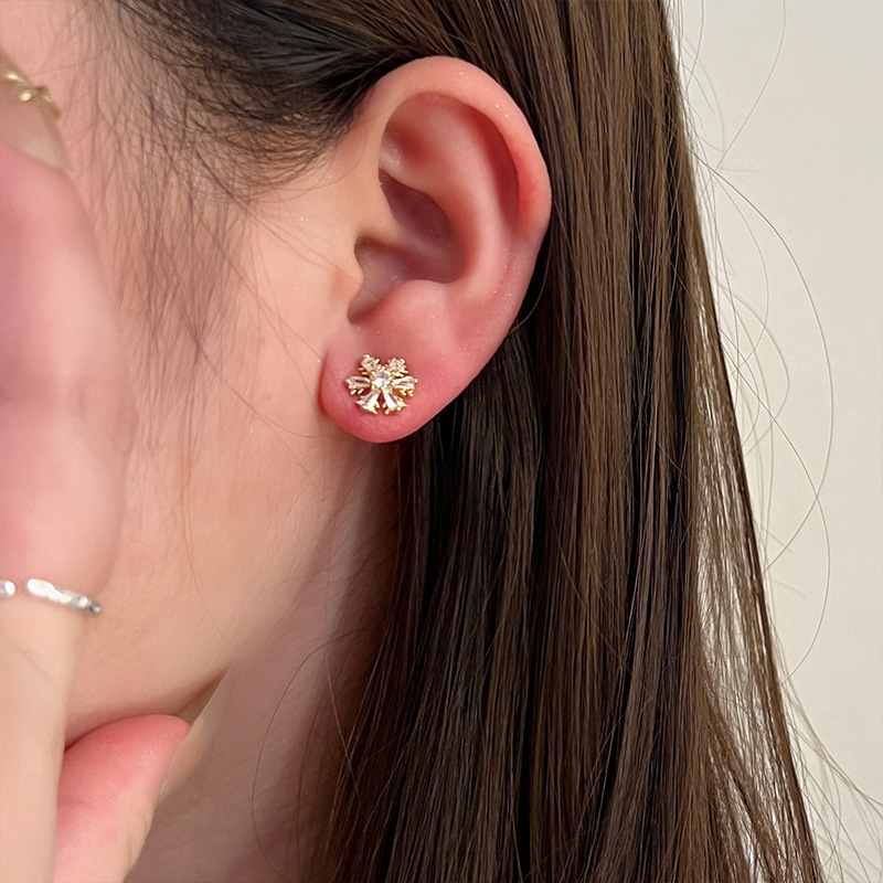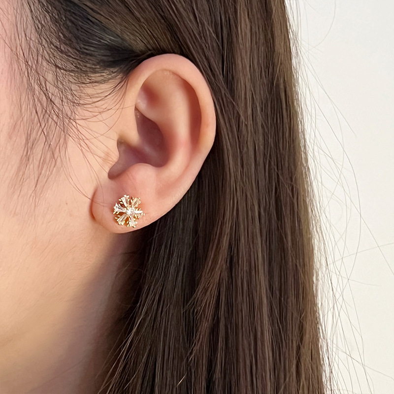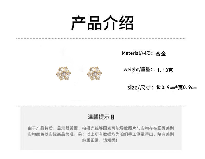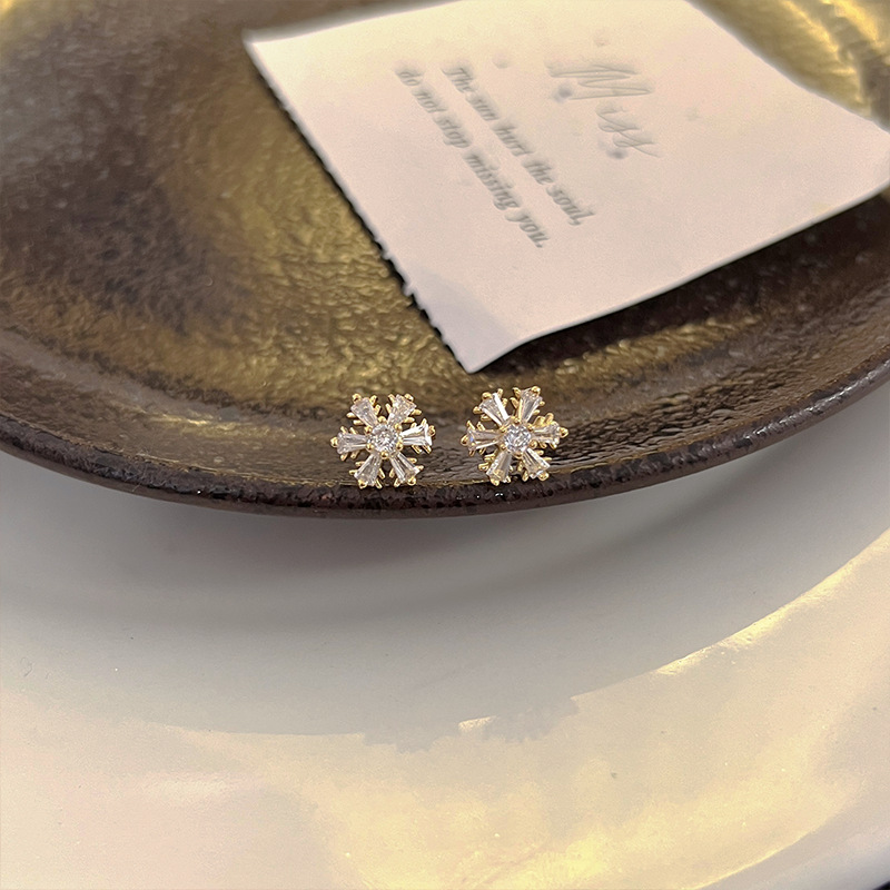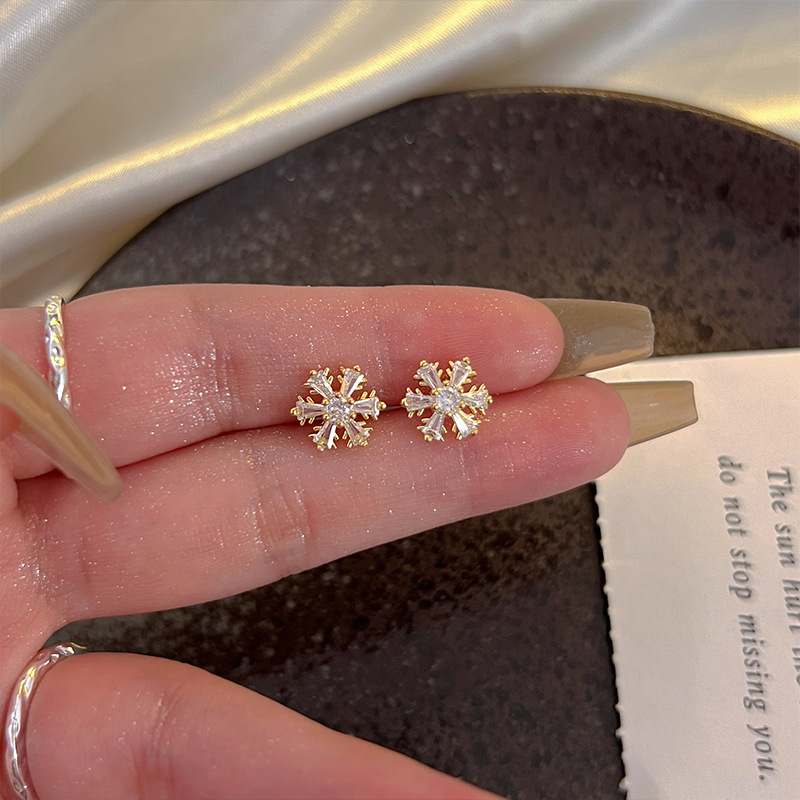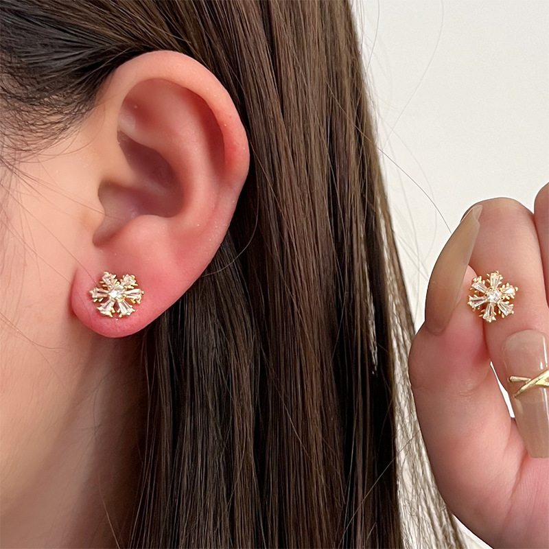 简约轻奢雪花耳钉女纯银小众设计感高级百搭耳饰2024年新款潮耳环