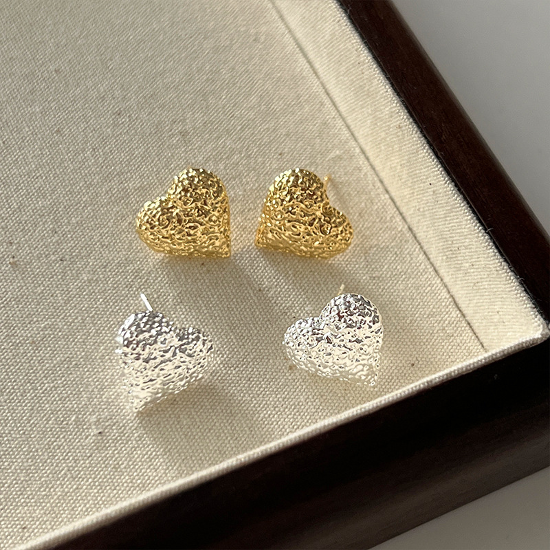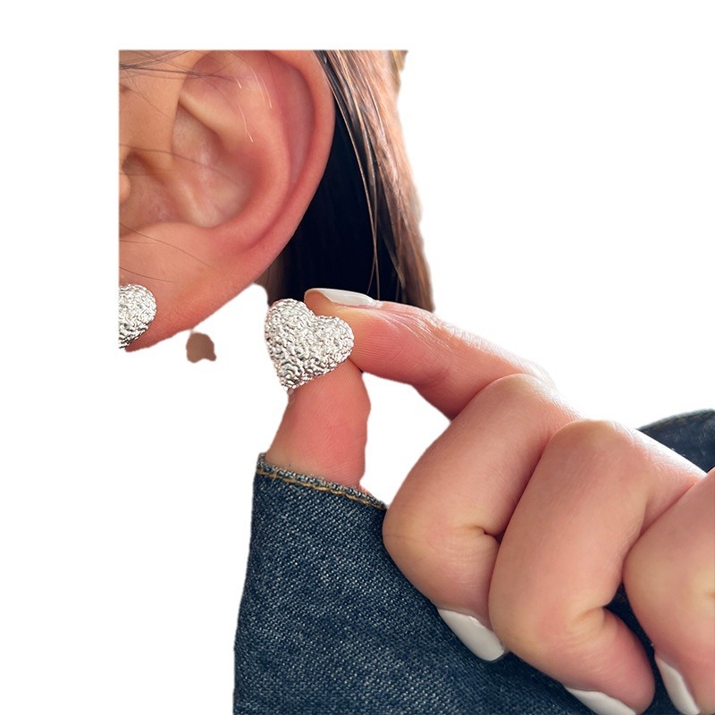 冷淡风ins岩石质感 爱心耳饰女高级感耳钉女2023新款洋气爆款耳环