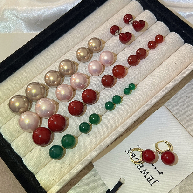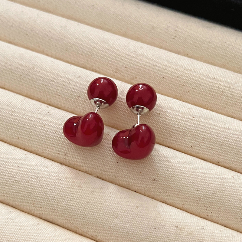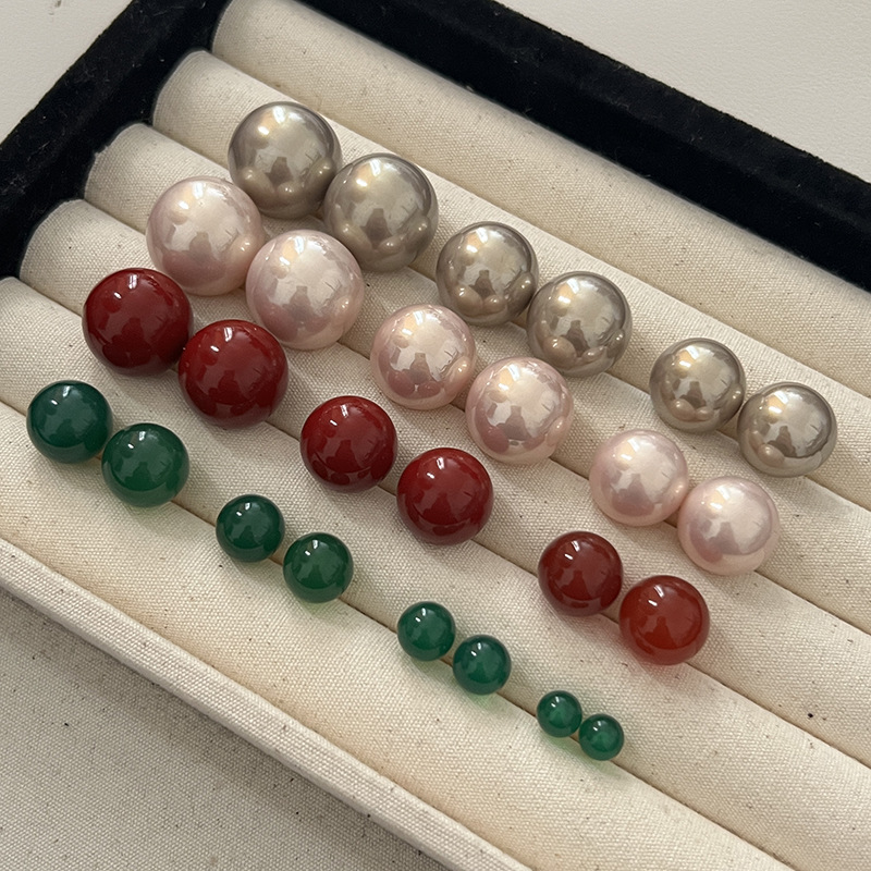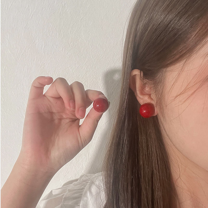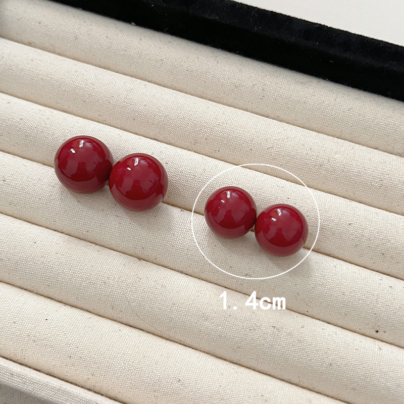 安可拉红豆豆珍珠耳钉女复古港风气质高级感耳环轻奢养耳洞银耳饰