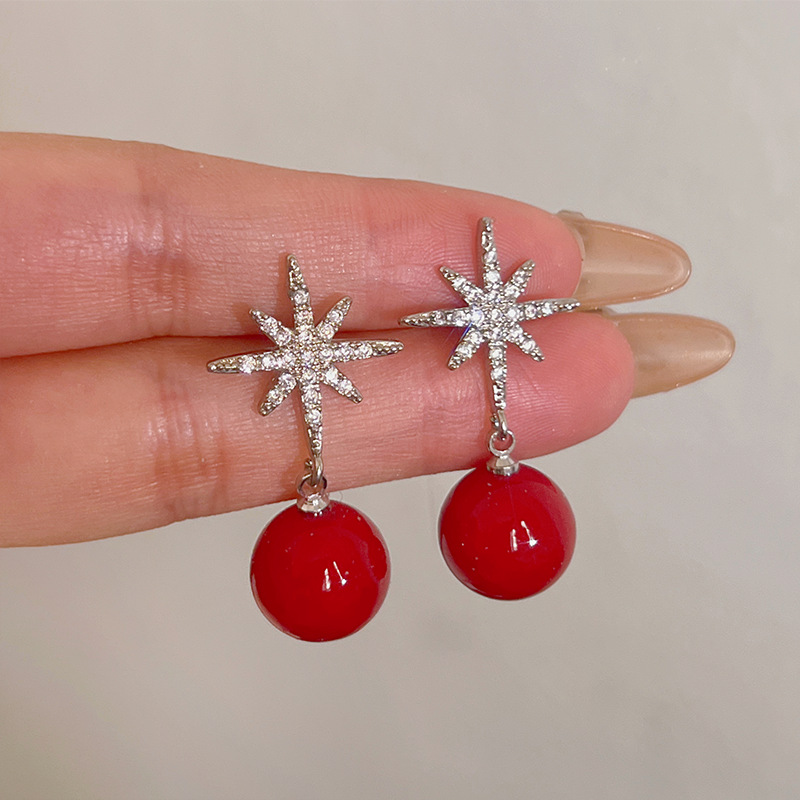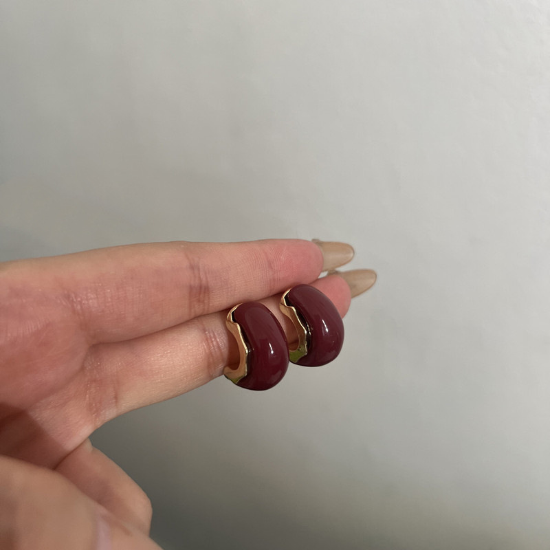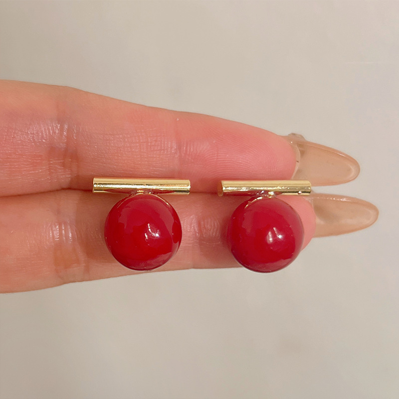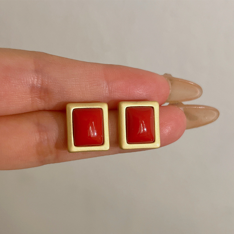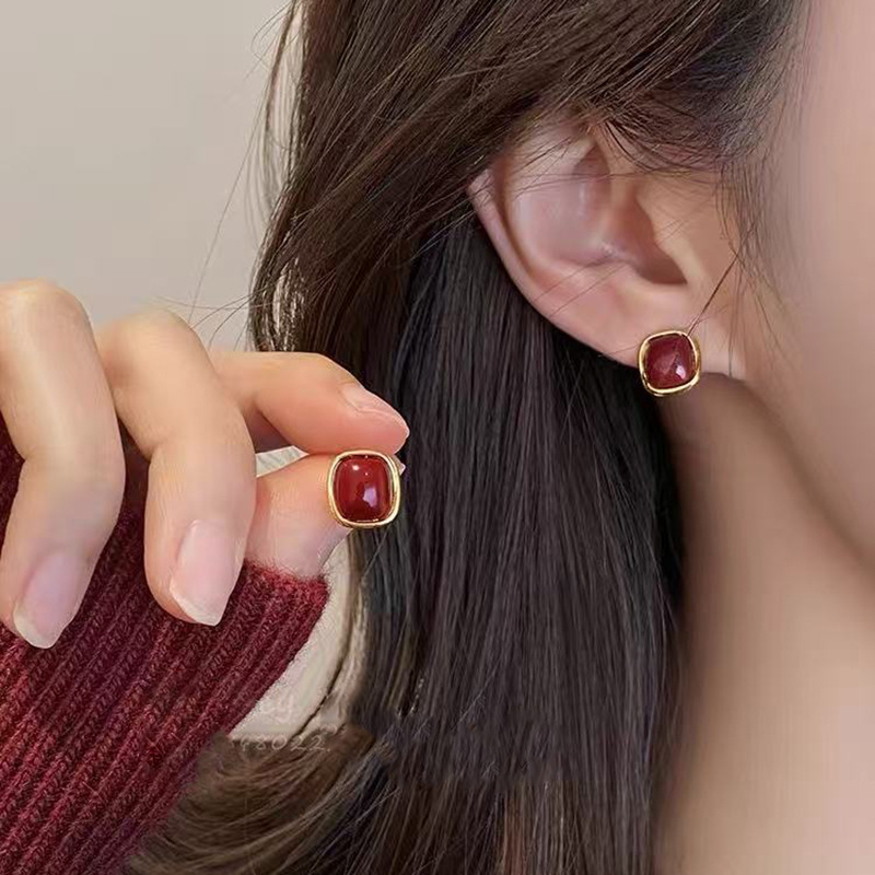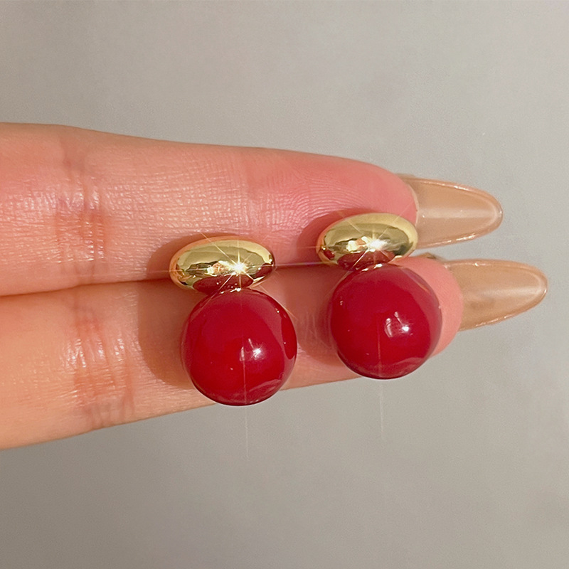 2025新款红色系列纯银针耳钉女款滴油喜庆耳环文艺复古个性耳饰