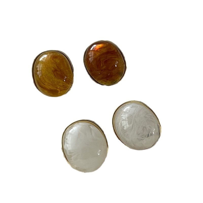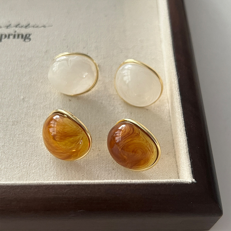 美拉德耳环2023新款爆款欧美椭圆琉璃耳钉轻奢高级感法式复古耳饰