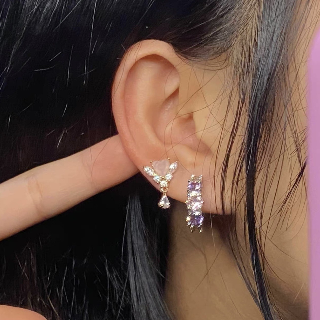 高级感网红轻奢紫色水晶锆石耳扣耳钉女气质名媛耳环2023年新款