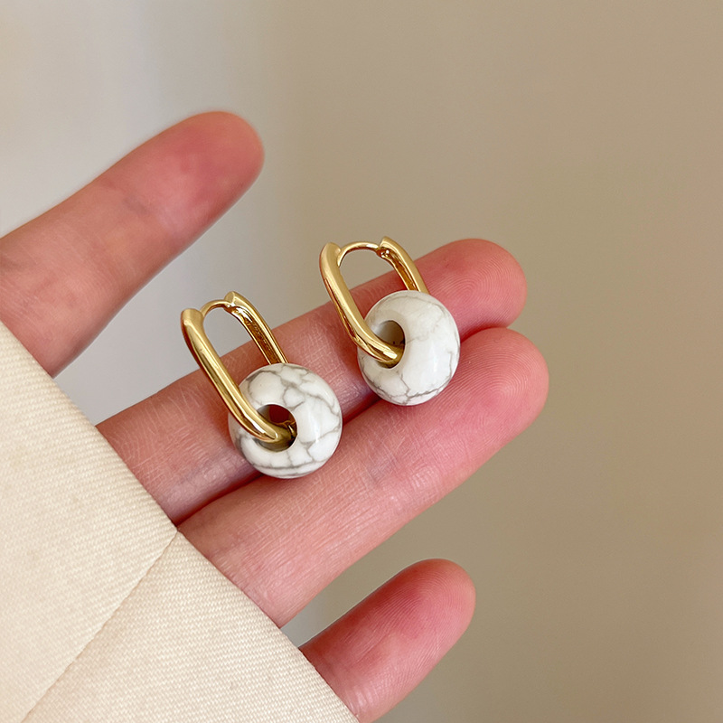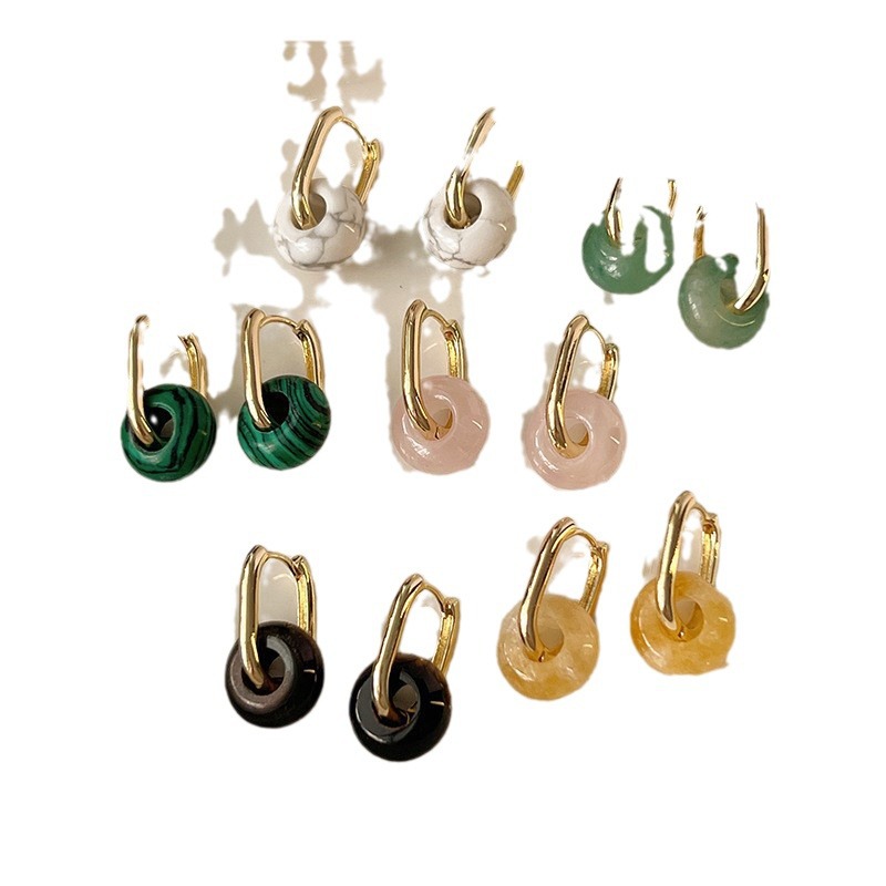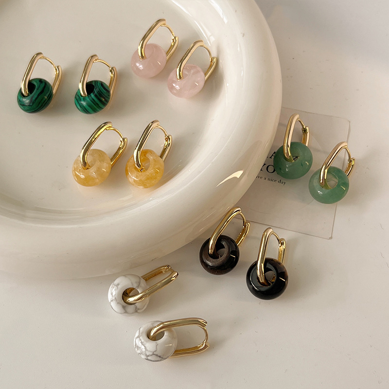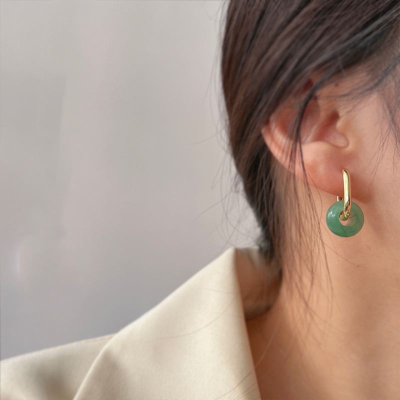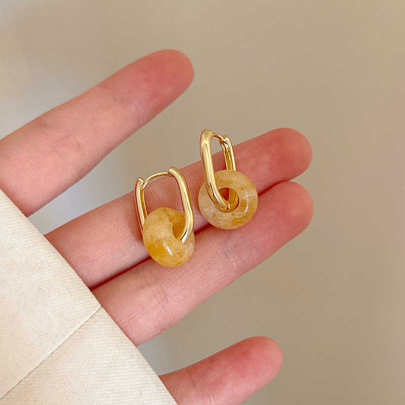 法式复古天然石玛瑙耳环耳圈ins小众设计高级感中式耳饰潮