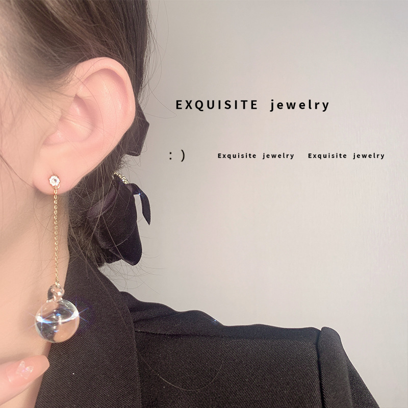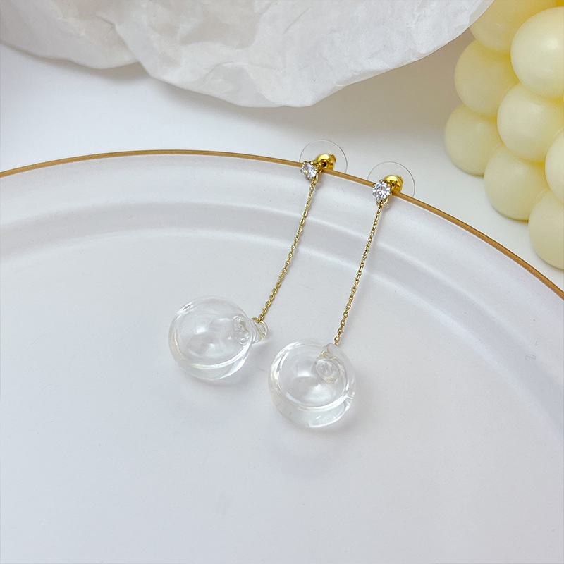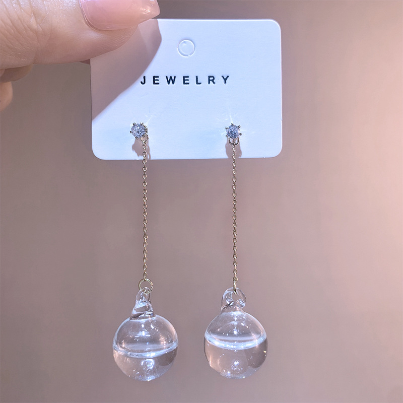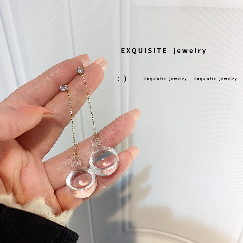 我是歌手张韶涵同款透明玻璃水球耳环长款圆形球球吊坠耳钉