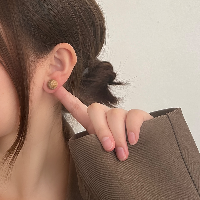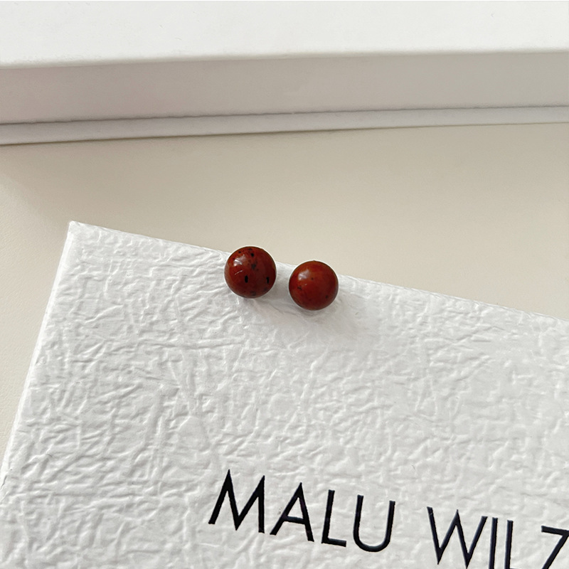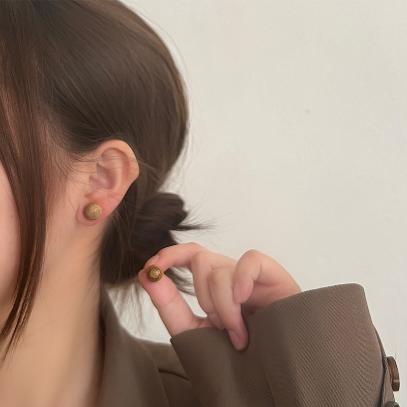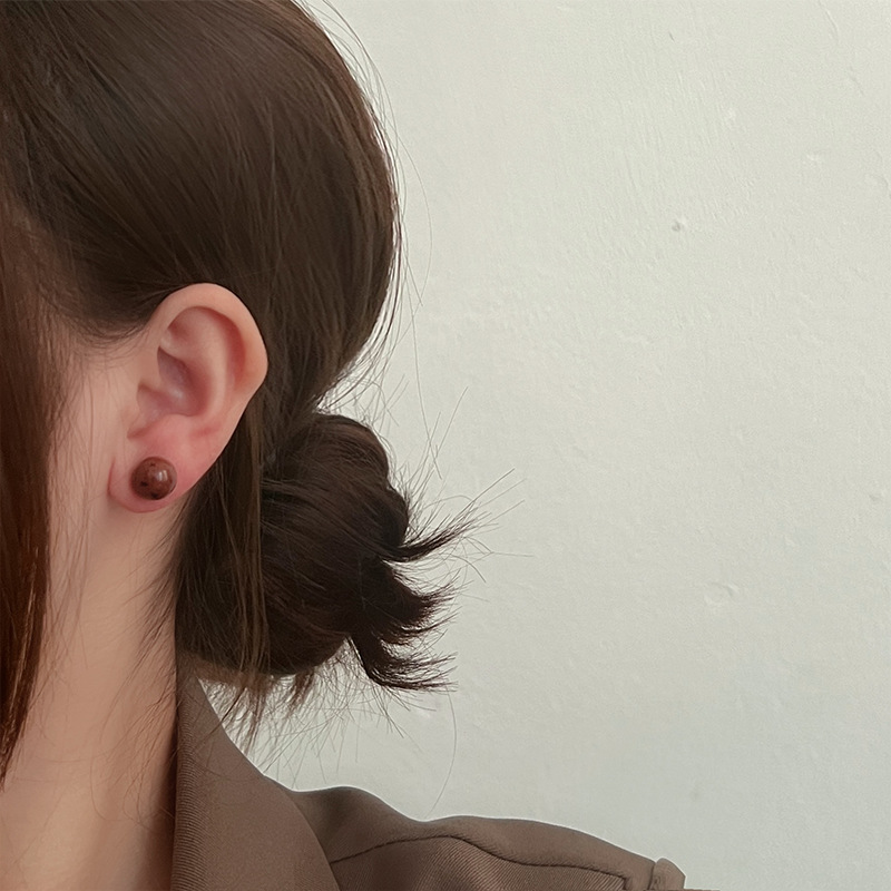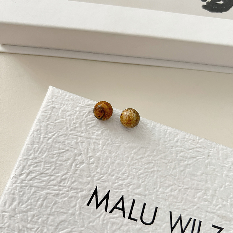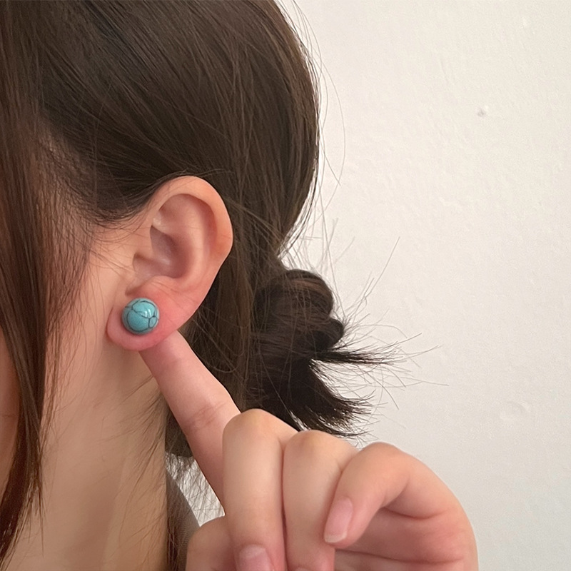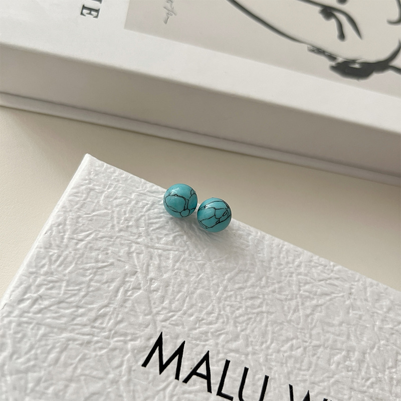 925纯银耳钉女小众设计绿松石圆形简约时尚气质女耳环耳饰品百搭