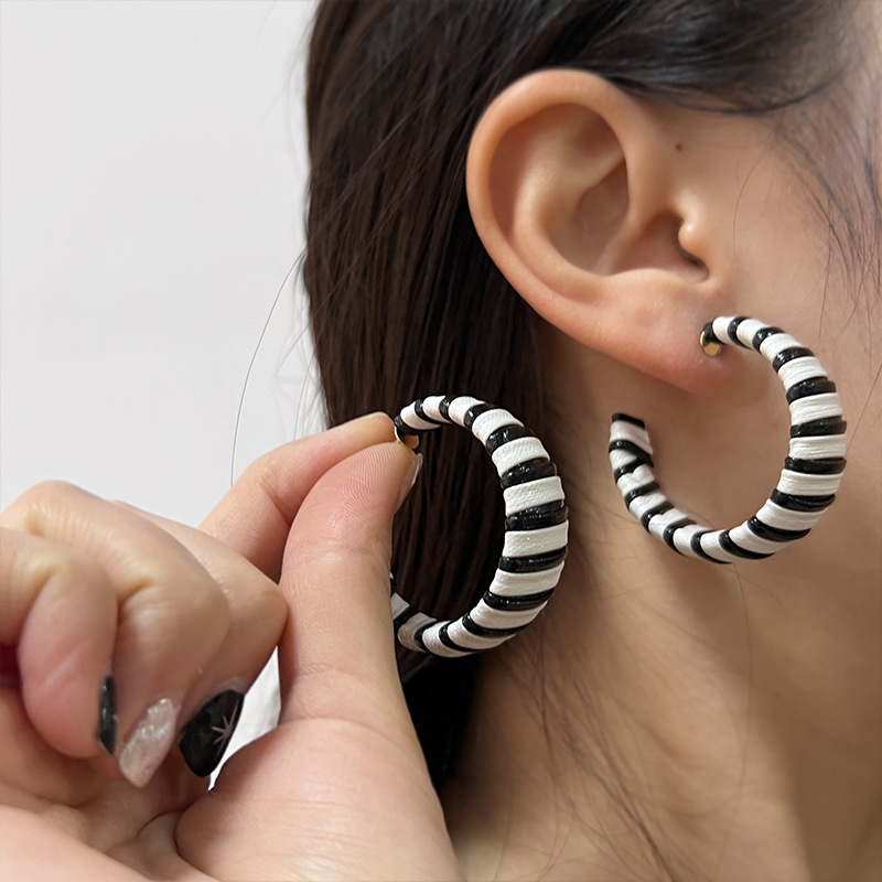 耳环2023年新款潮复古C圈圈斑马纹豹纹气质高级感时尚耳钉耳饰