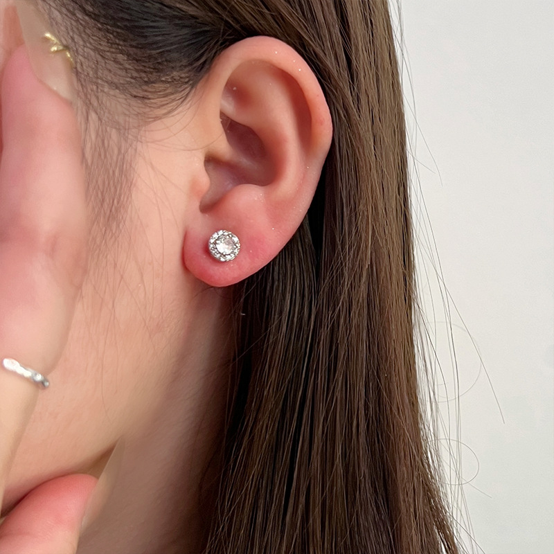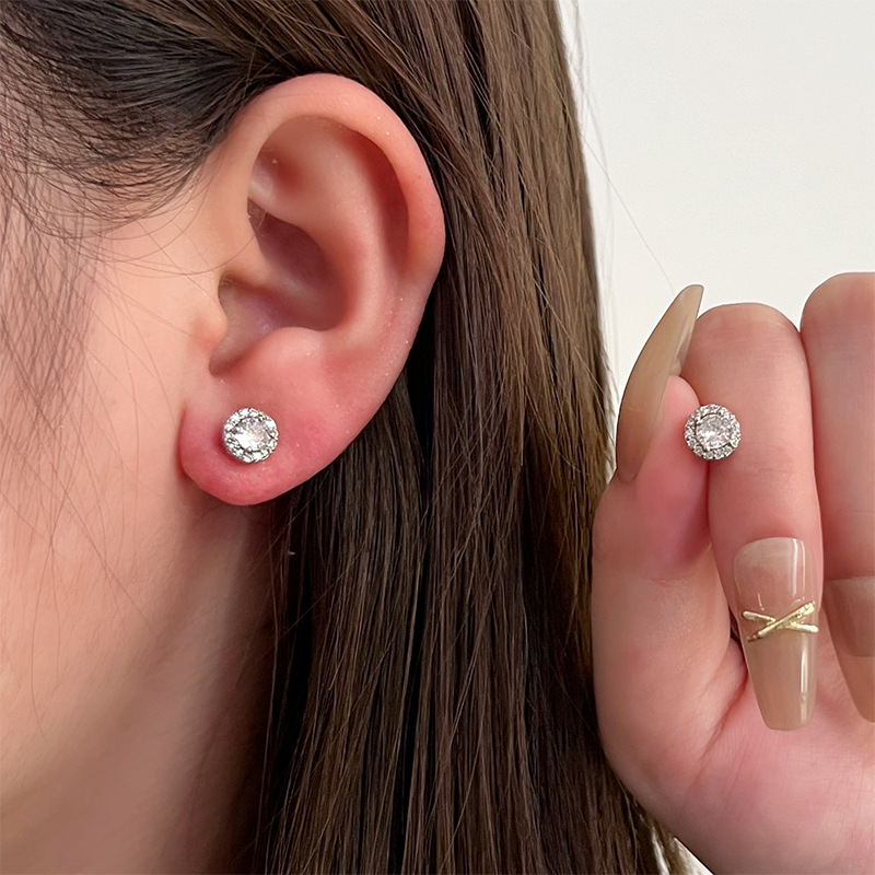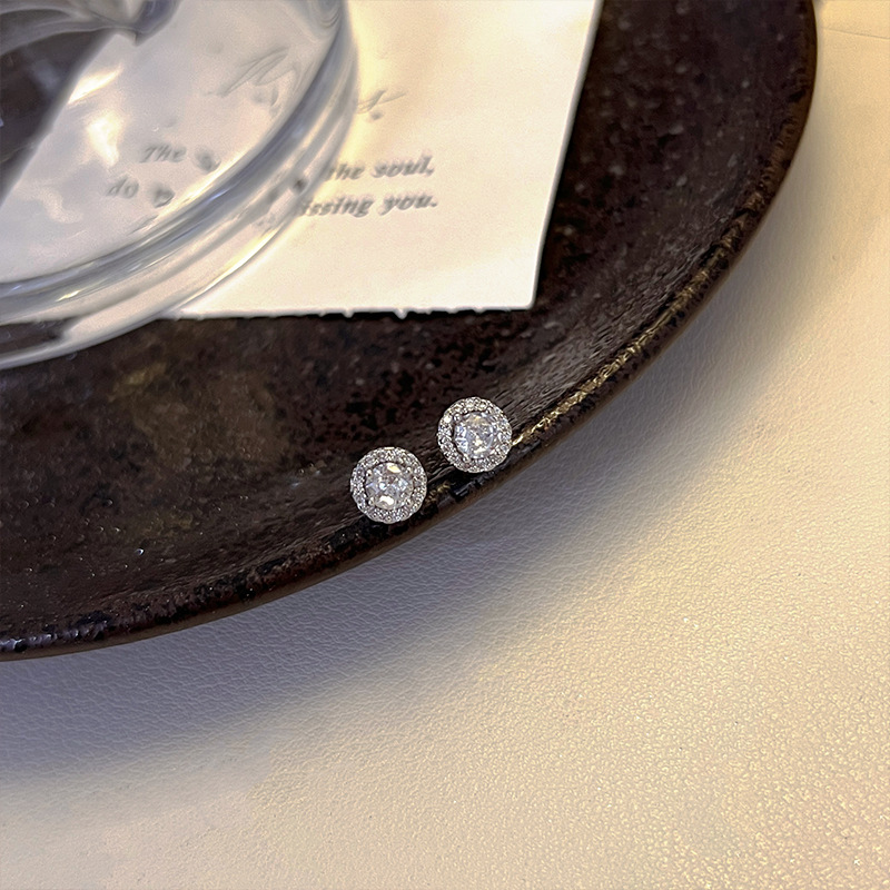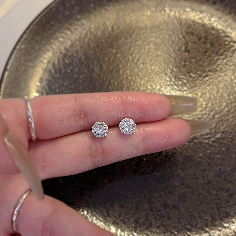 日韩小众高级感耳钉气质轻奢极简四爪圆锆耳钉时尚冷淡风小巧耳环