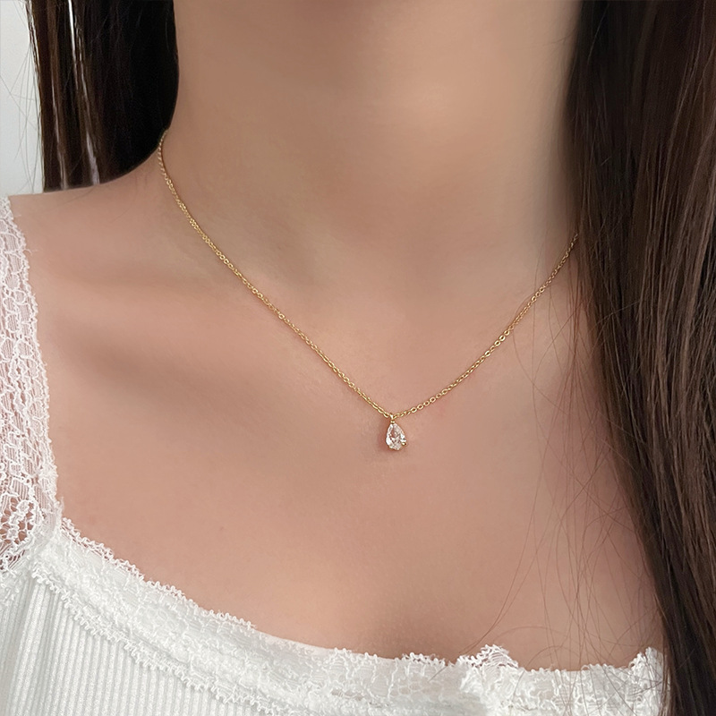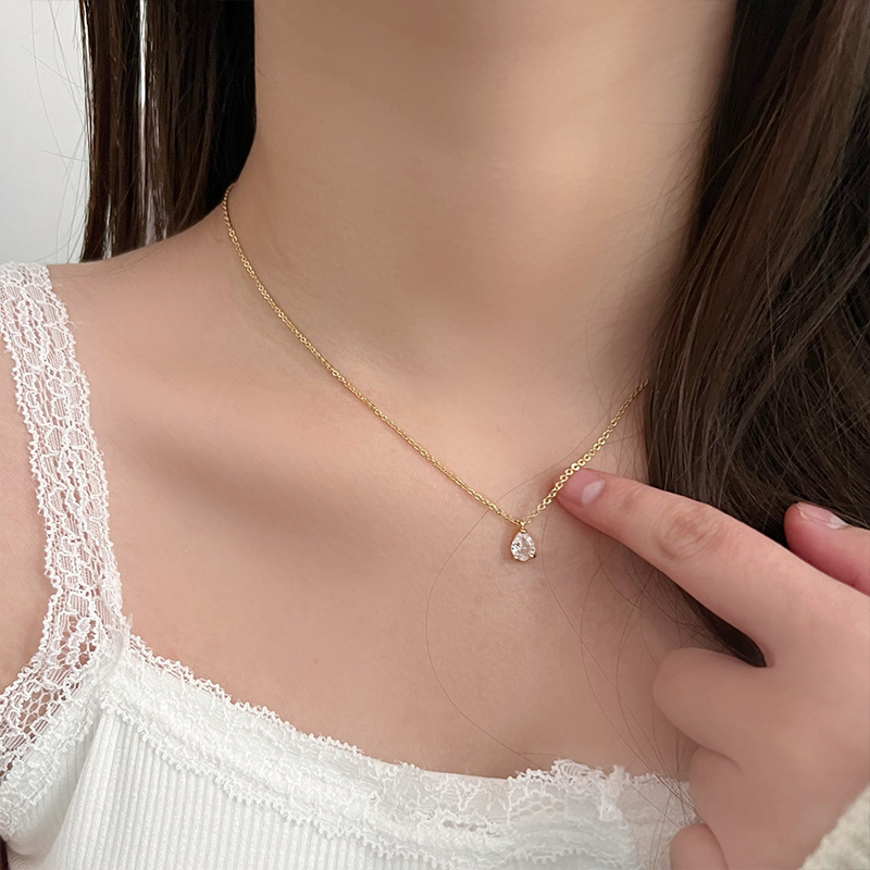 2024新款极简时髦水滴吊坠项链女热卖轻奢小众百搭颈链配饰