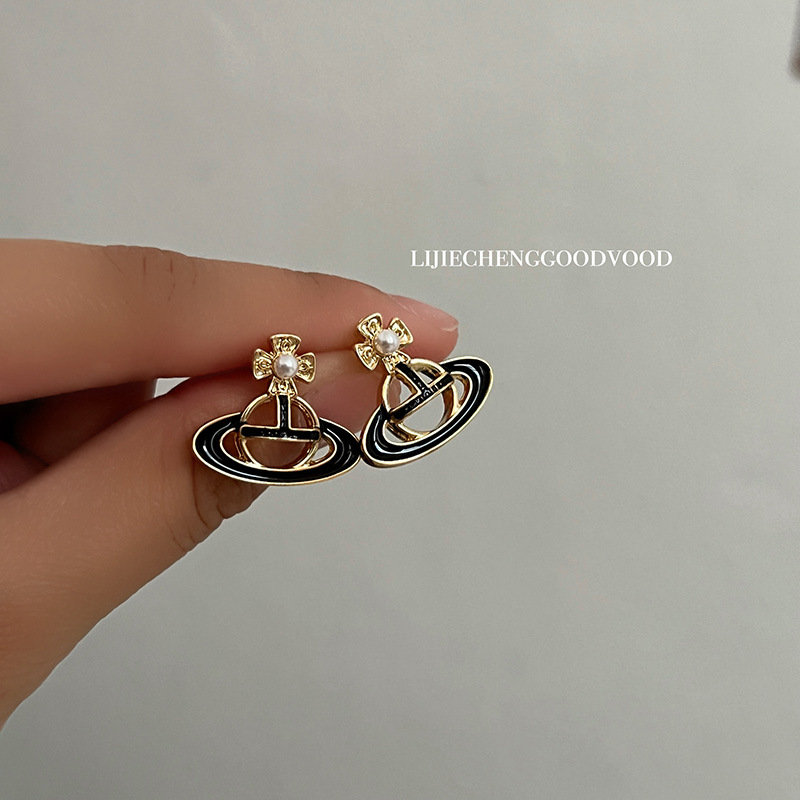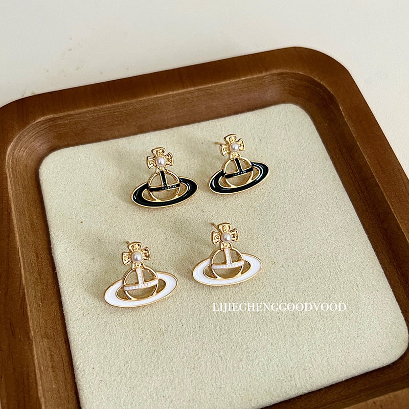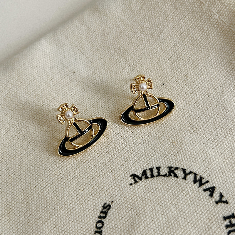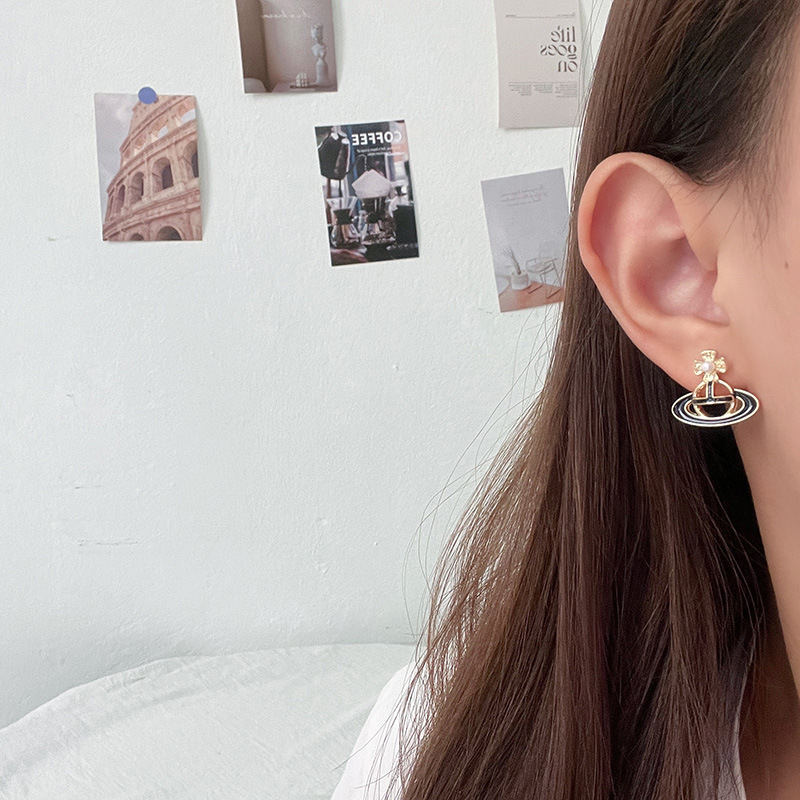 欧美复古风土星星球耳钉女黑白小众设计高级感精致轻奢气质耳环