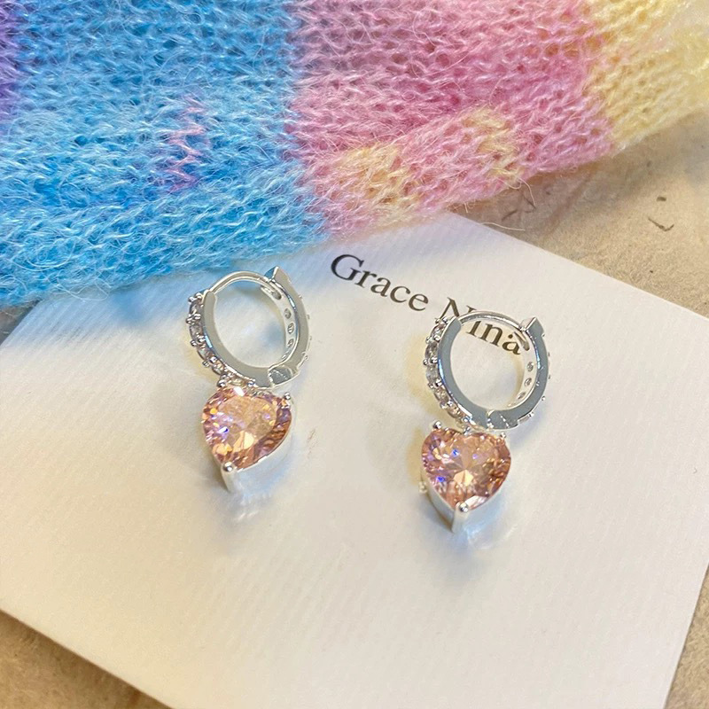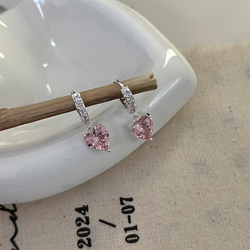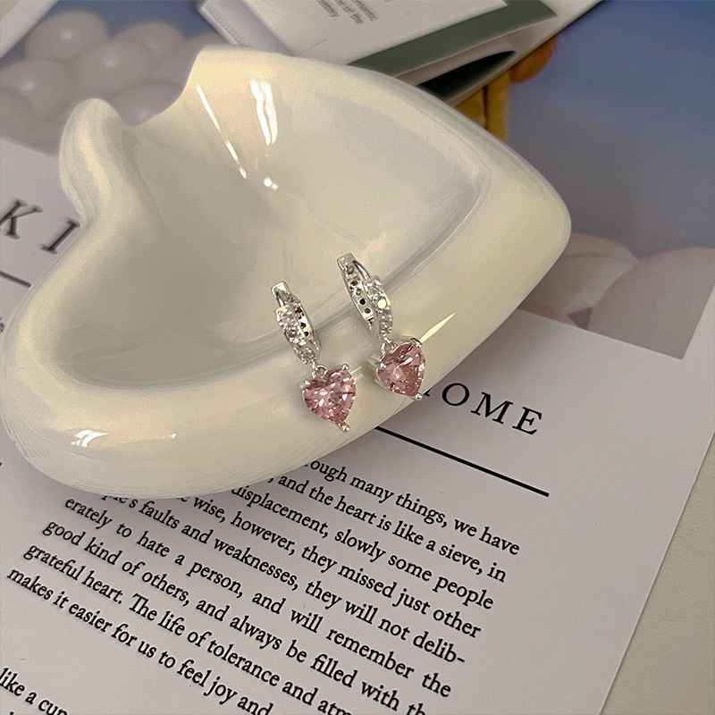 时尚高级感爱心锆石耳钉冷淡风简约百搭个性耳环小众设计精致耳饰