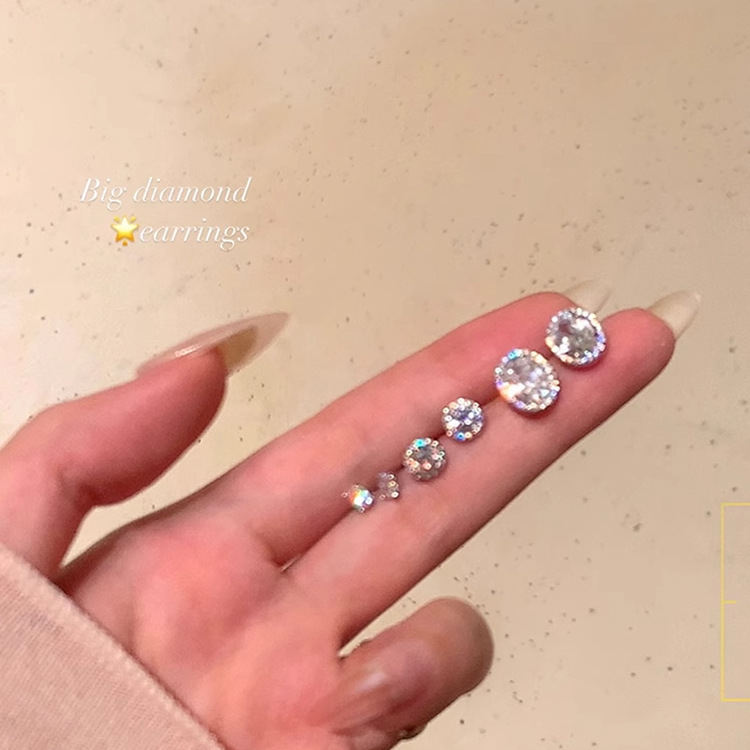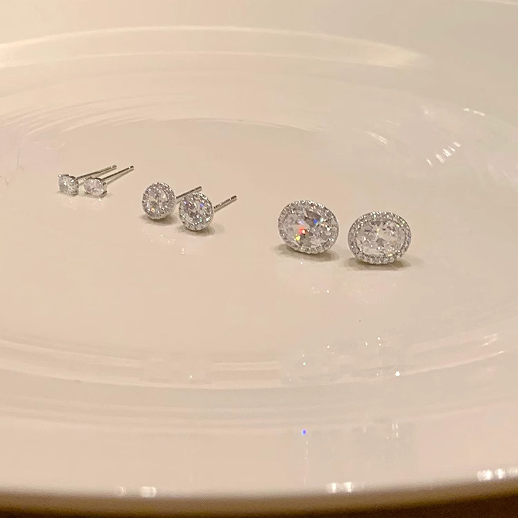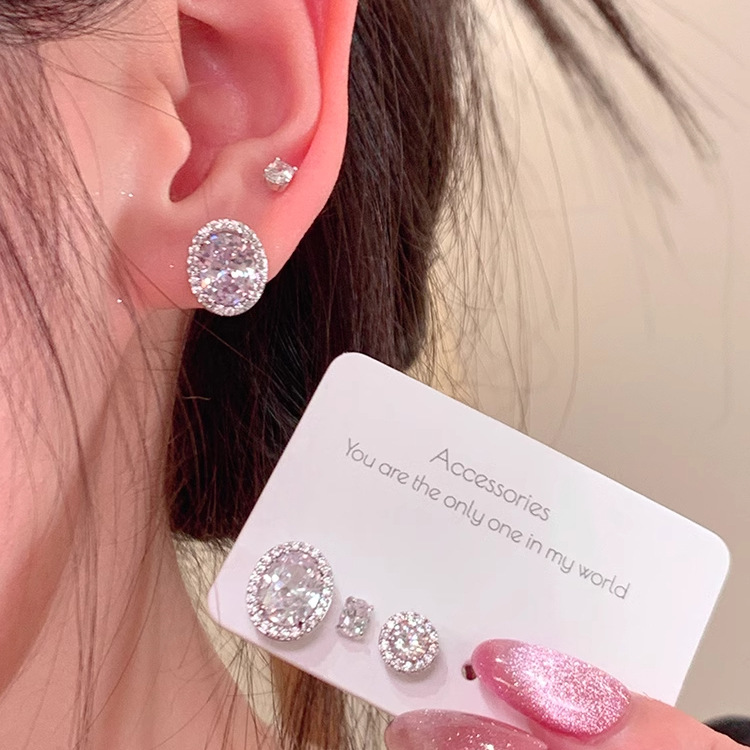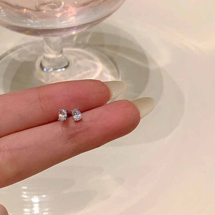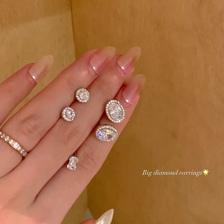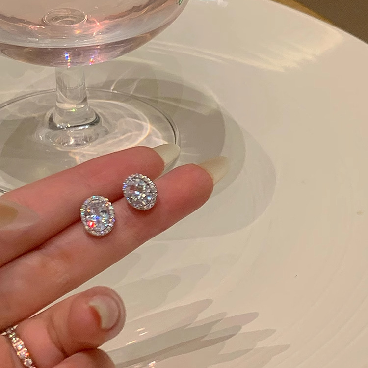 精致超闪椭圆形锆石耳钉女设计感小众轻奢气质耳环简约冷淡风耳饰