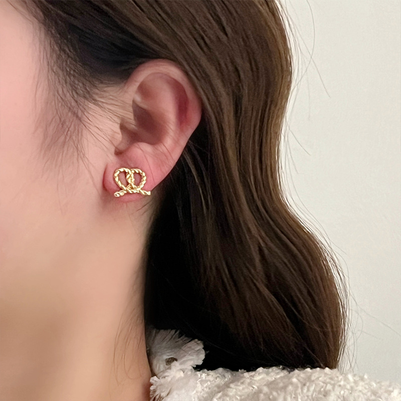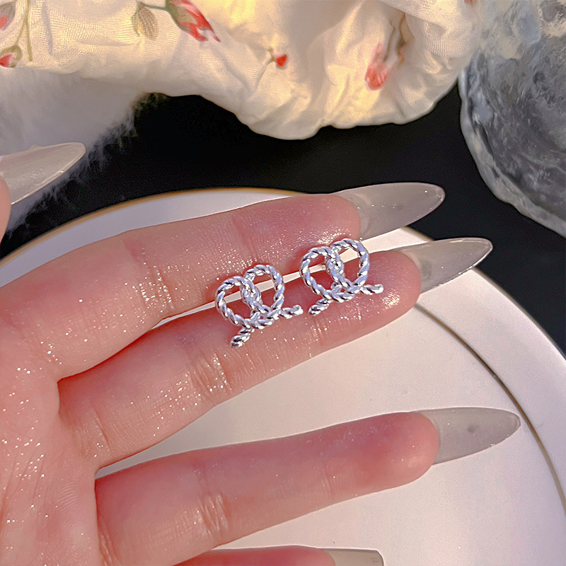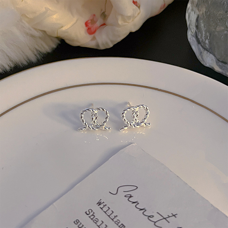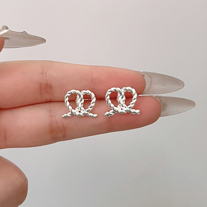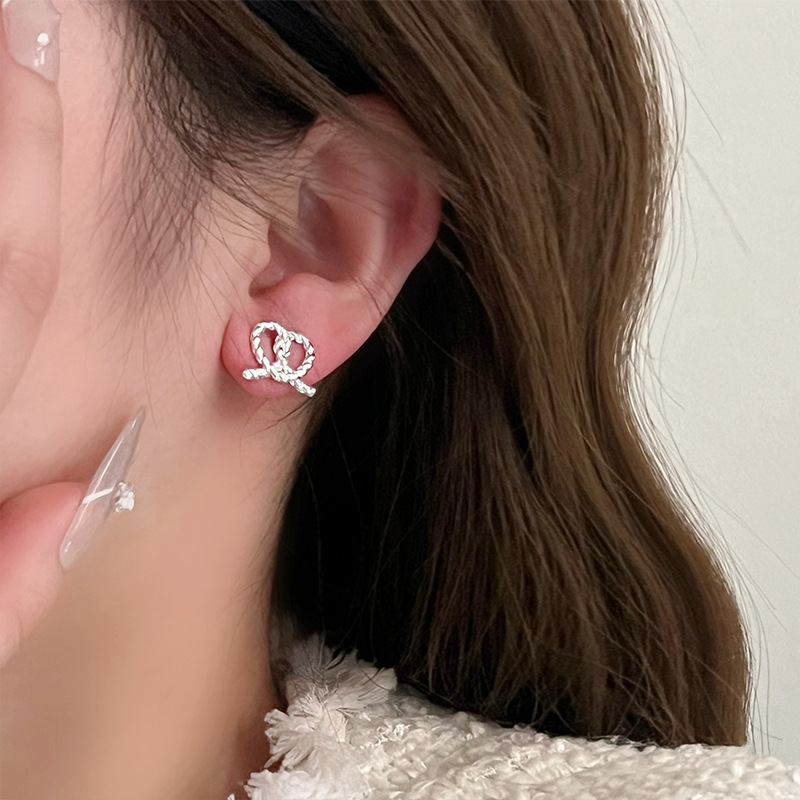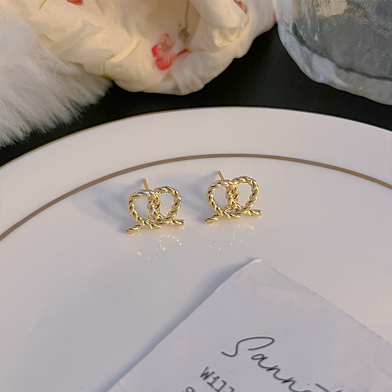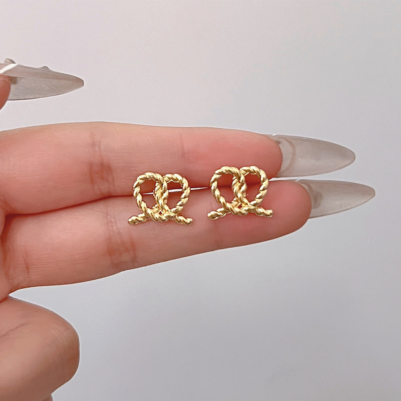 韩国韩版爱心扭结耳钉ins简约气质小众设计新中式碱水结耳环耳饰