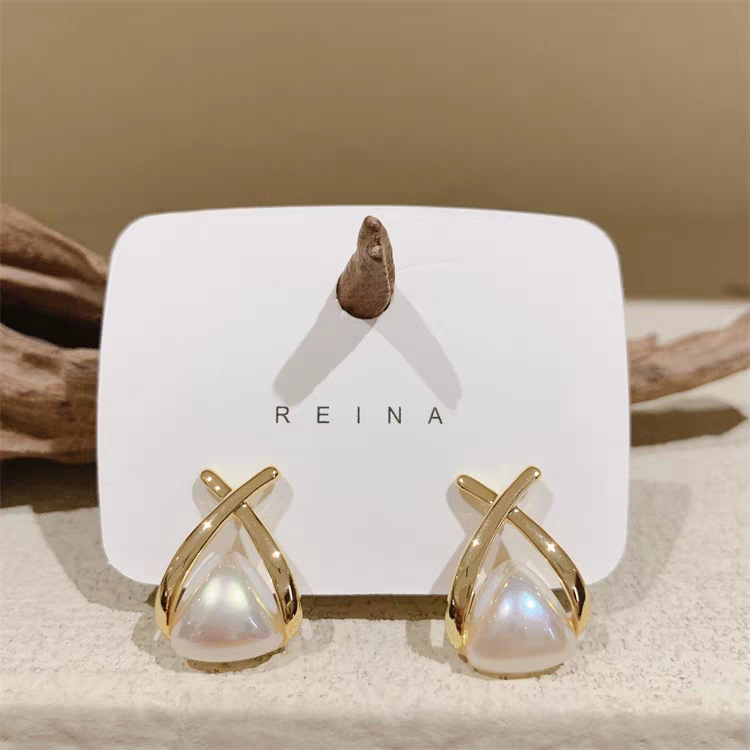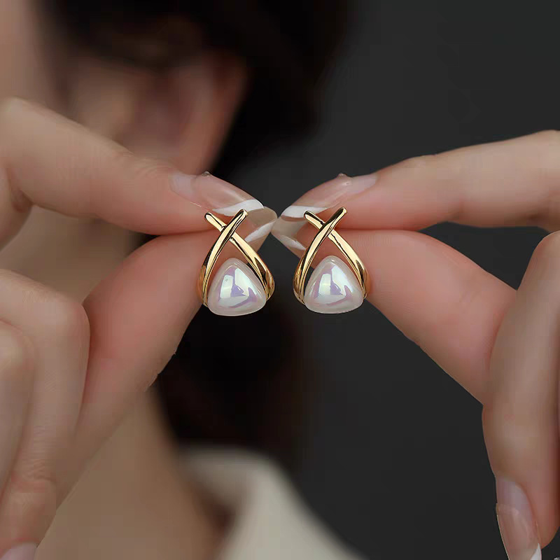 简约交叉优雅网红珍珠耳环2024新款潮轻奢小众交叉设计耳钉耳饰女