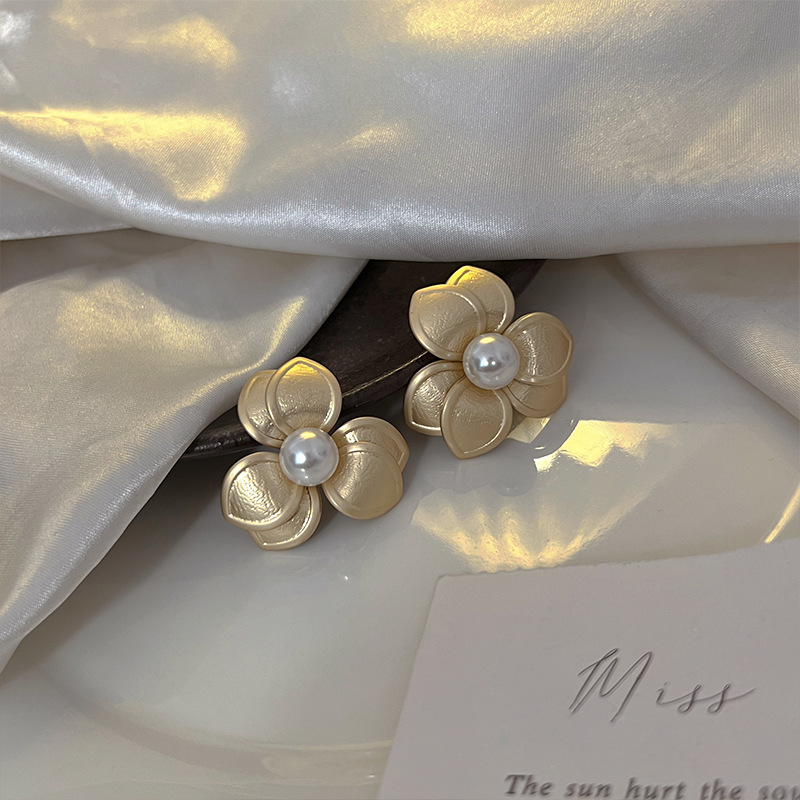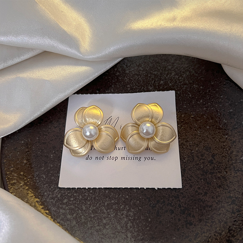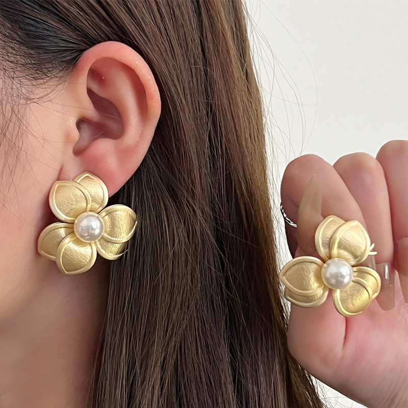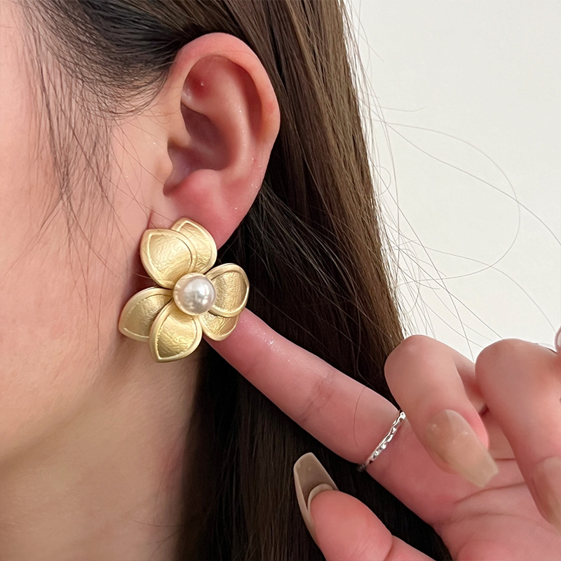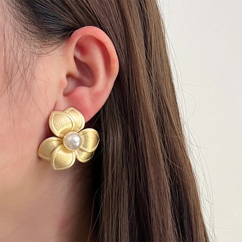 高级感夸张花朵耳钉新款2024爆款独特金色耳环小众设计感复古耳饰