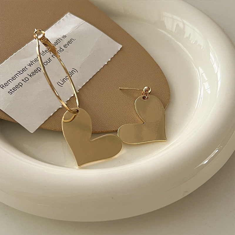 欧美风歪桃心不规则耳环心形耳环闺蜜爱心耳饰钛钢饰品嘻哈高级感