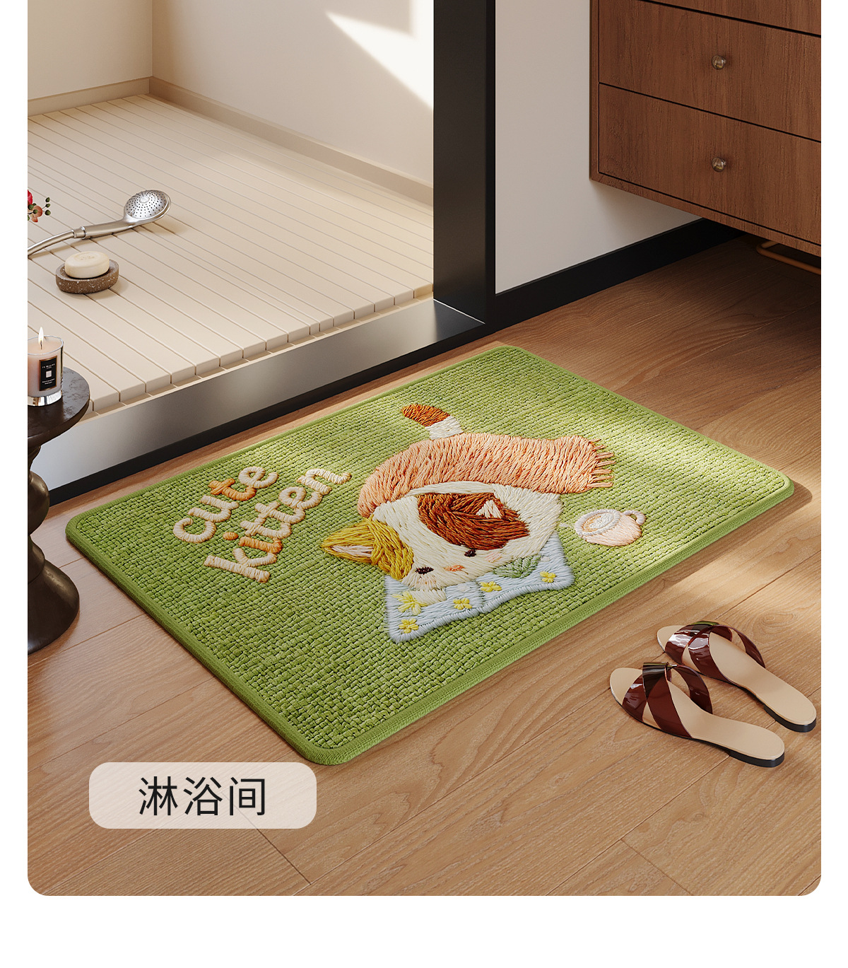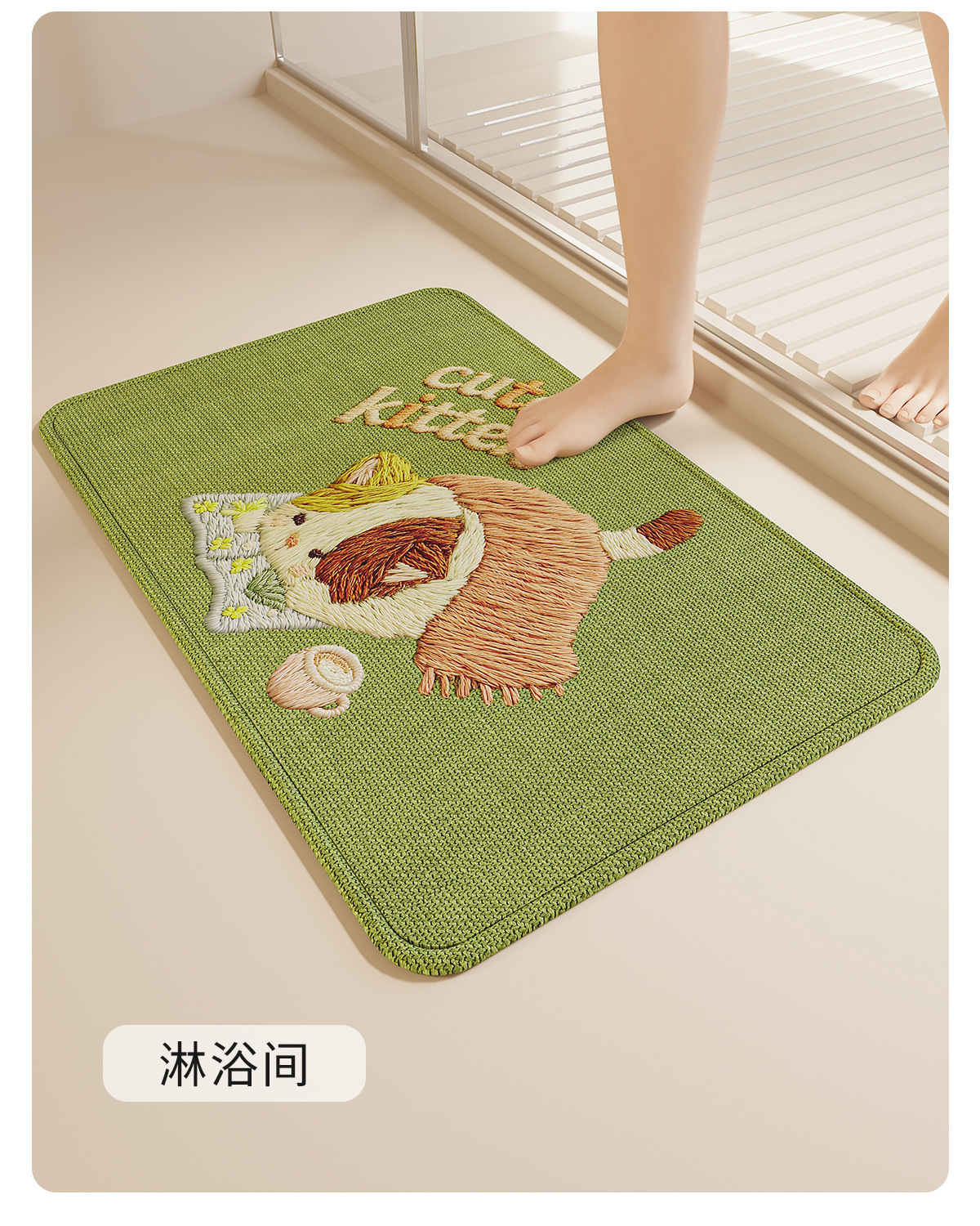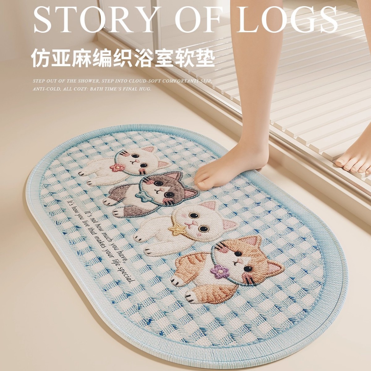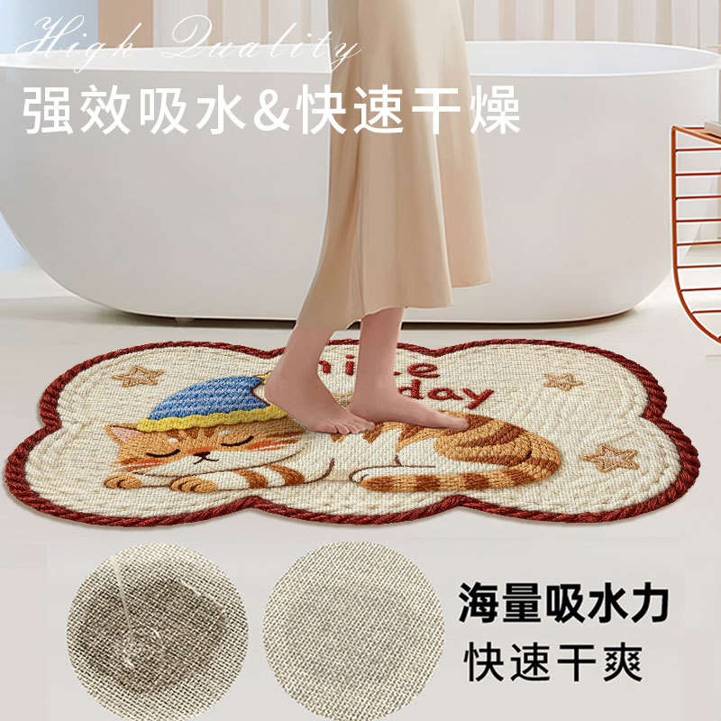 卡通浴室地垫家用卫生间防滑垫厕所吸水速干跨境仿亚麻编织纹地垫