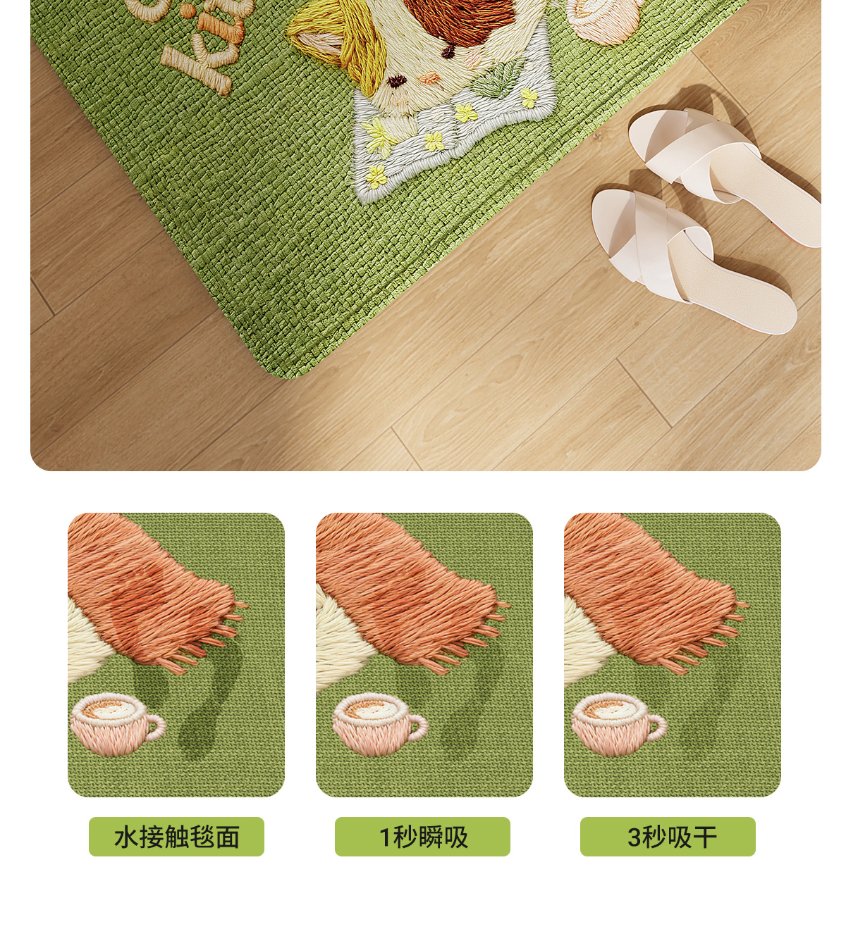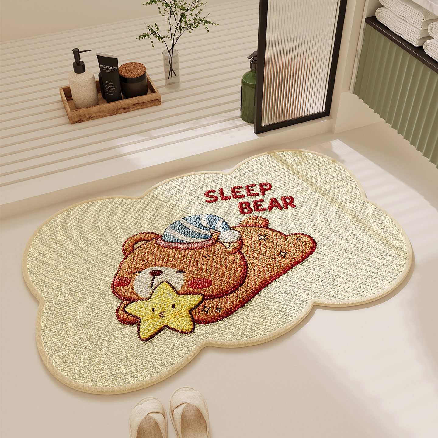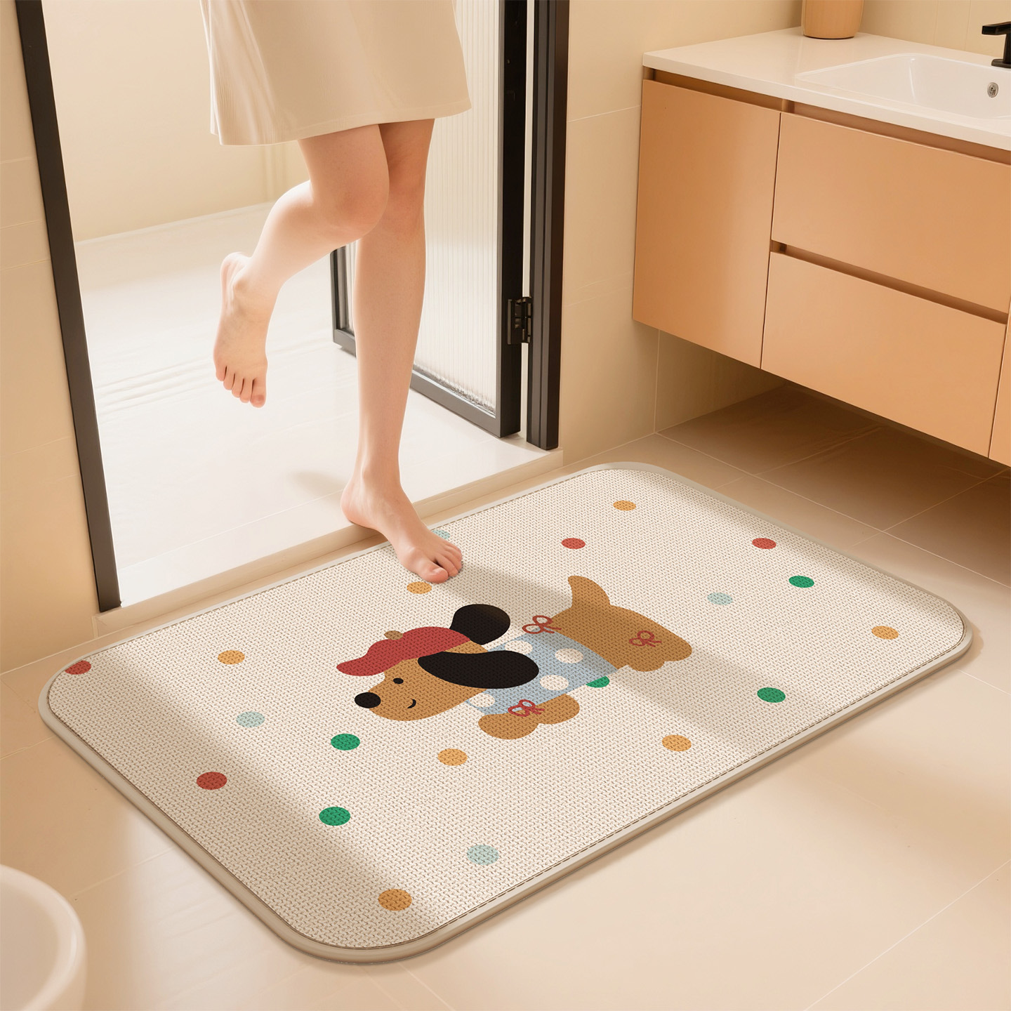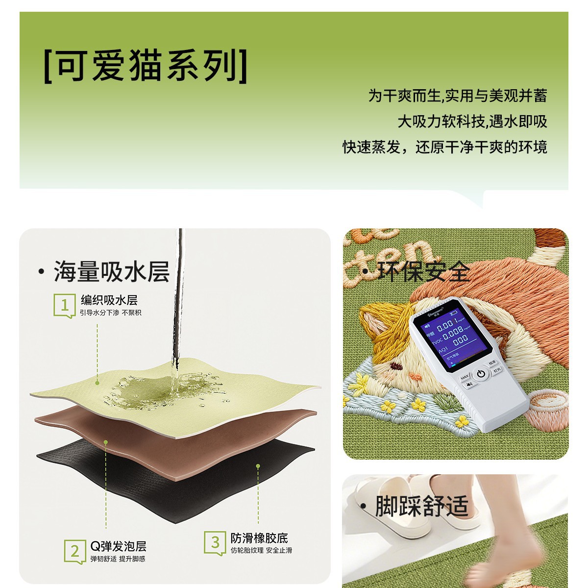 卡通浴室地垫家用卫生间防滑垫厕所吸水速干跨境仿亚麻编织纹地垫