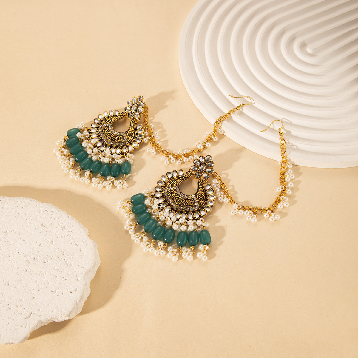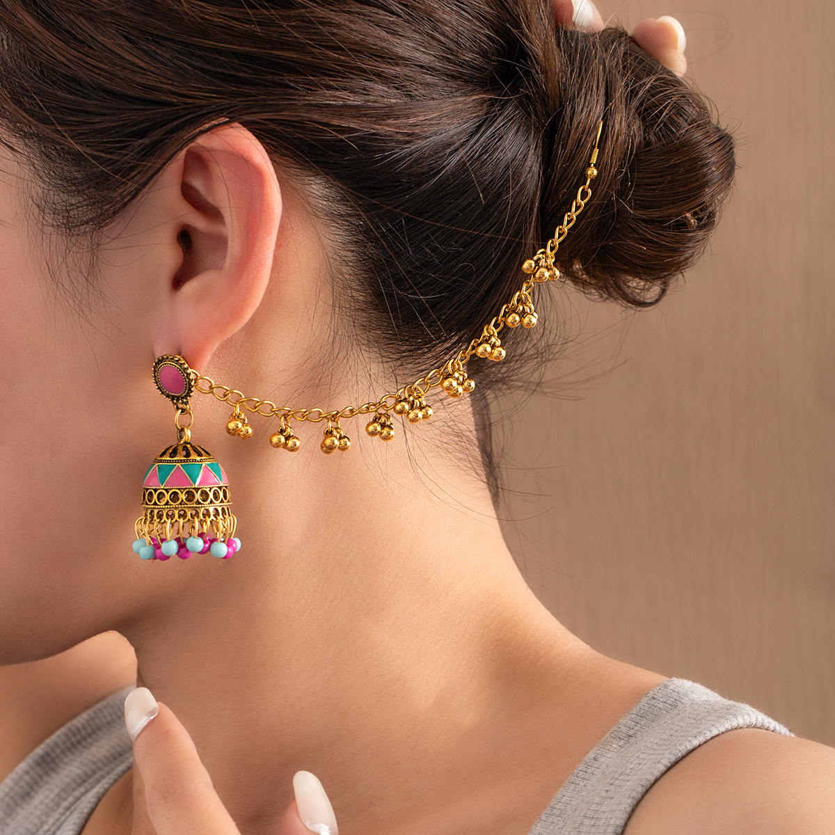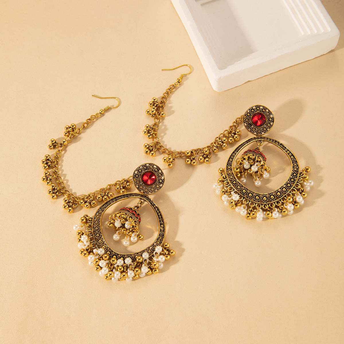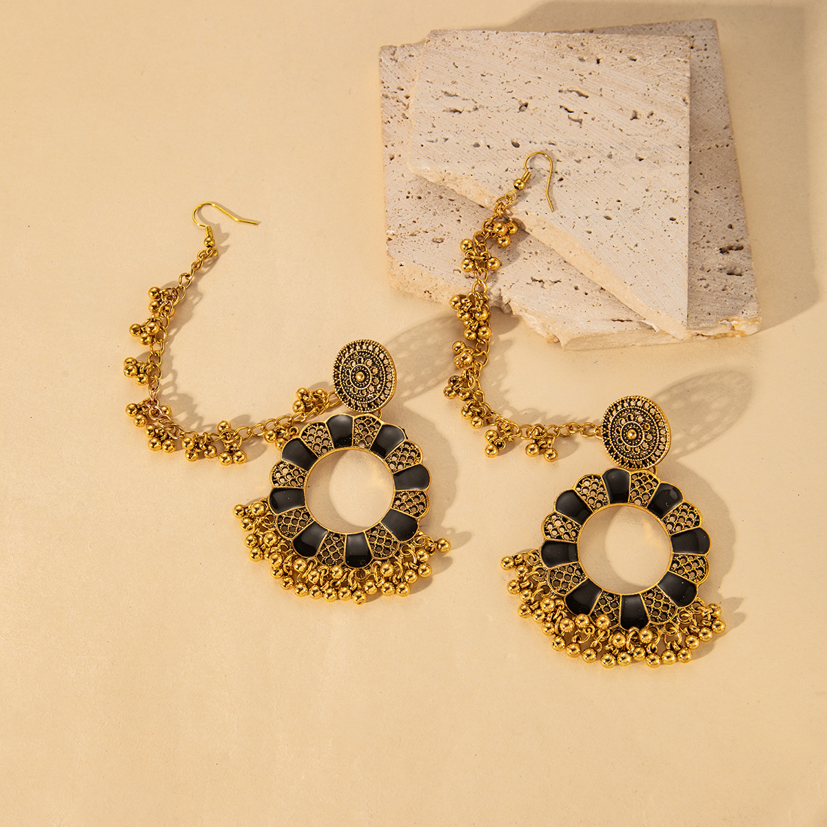 跨境重工一式两戴镂空复古个性耳坠女夸张波西米亚风串珠流苏耳环