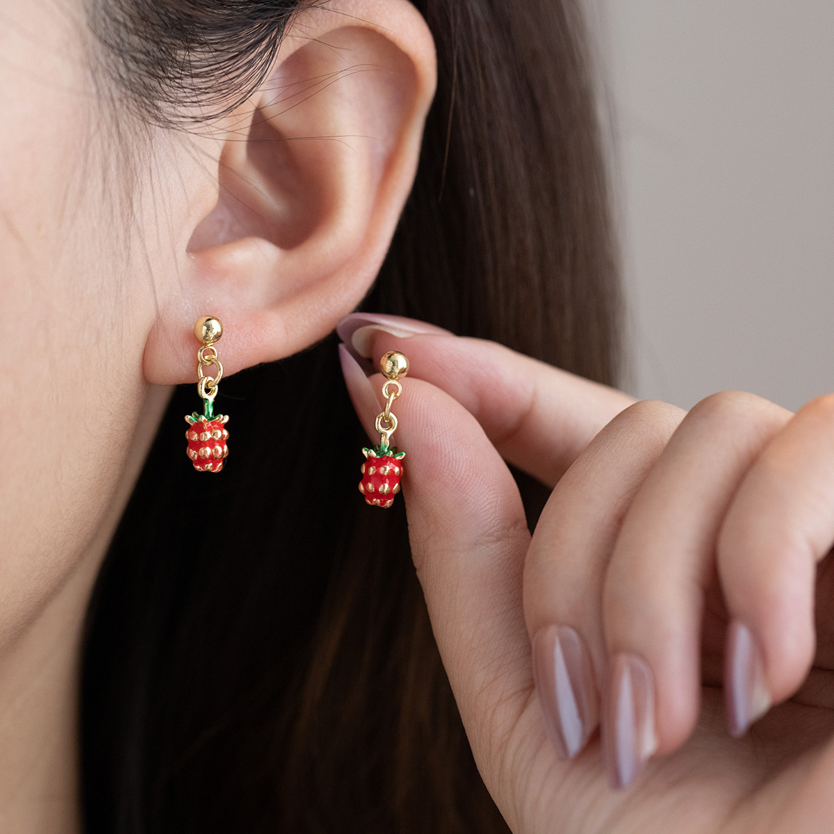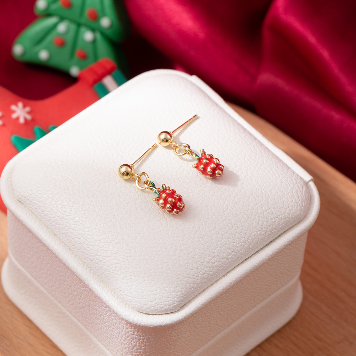 日韩可爱甜美时尚草莓耳环新款个性小清新设计感立体水果滴油耳饰