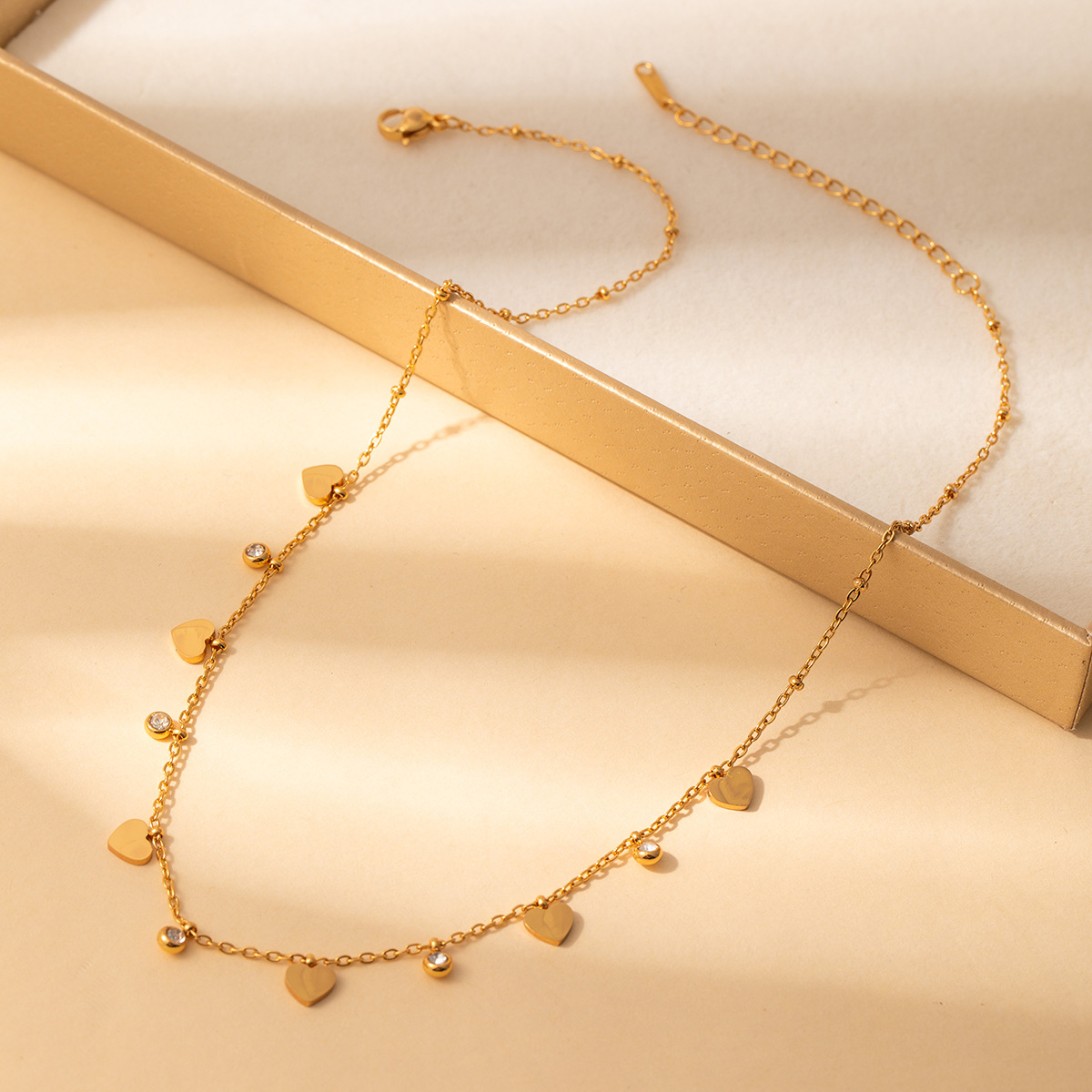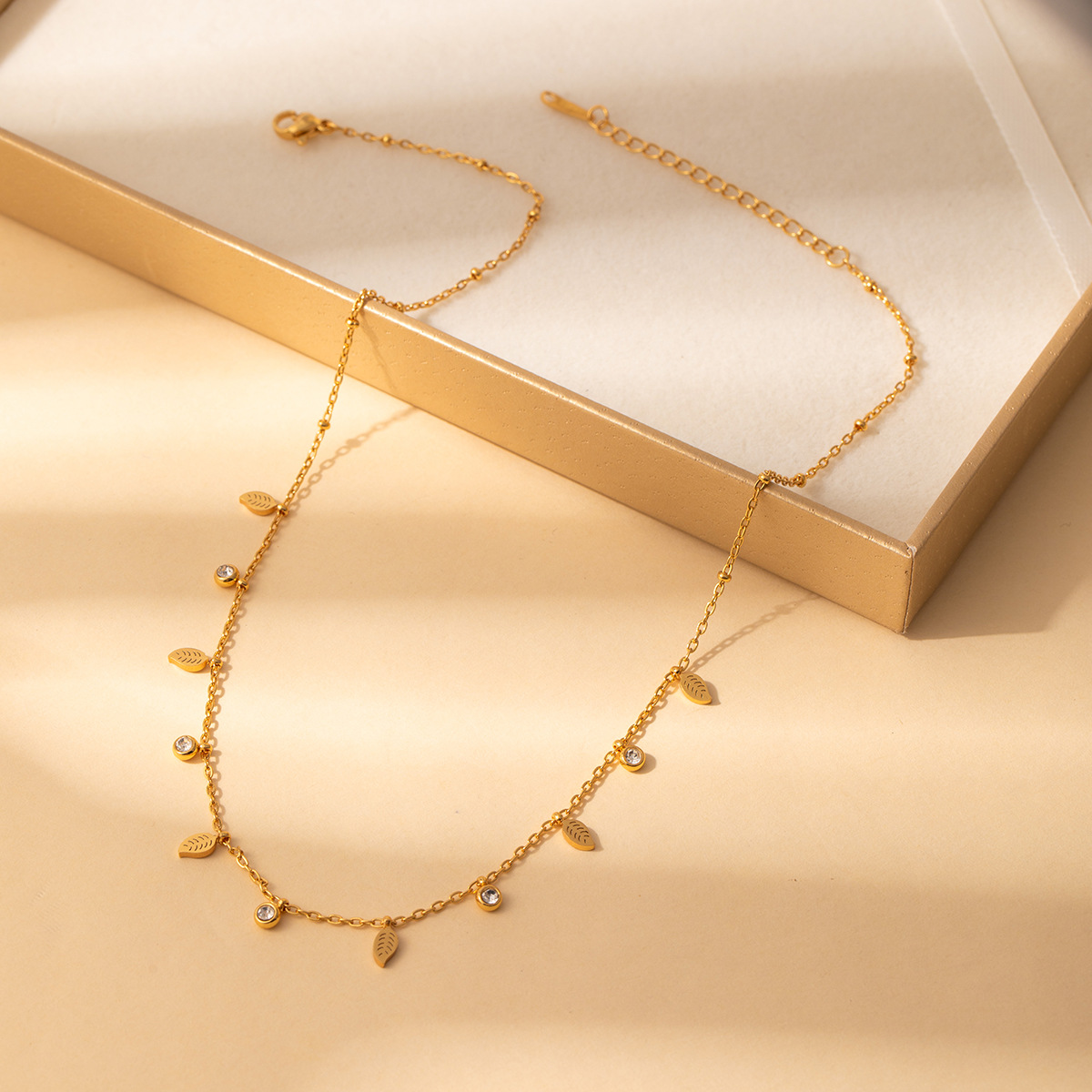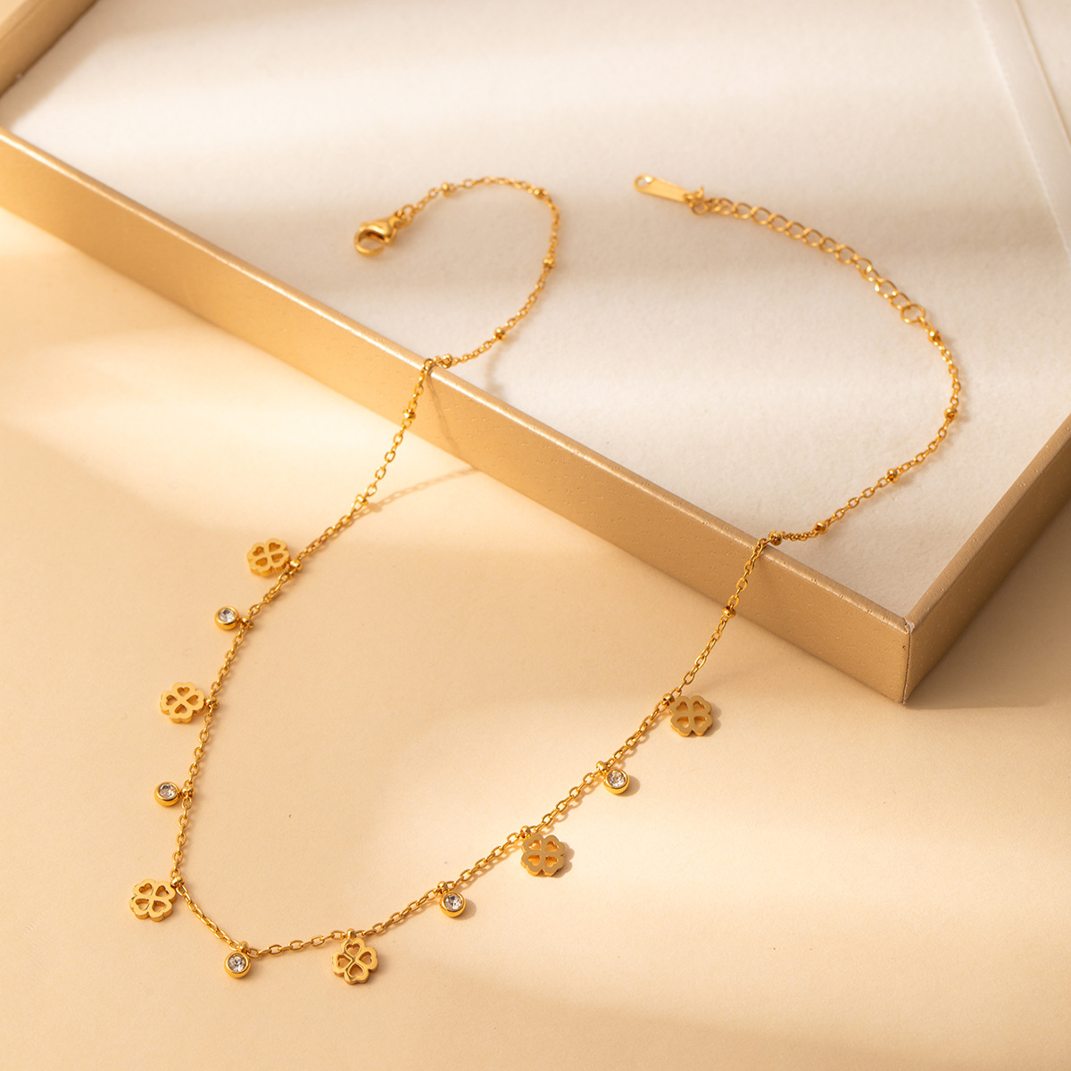 欧美金属风不锈钢几何花瓣吊坠项链跨境十字架镶钻设计感锁骨链女