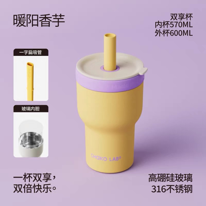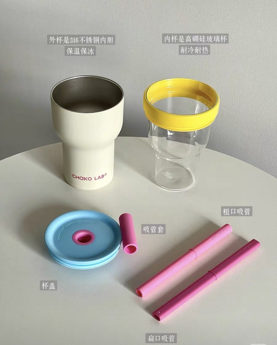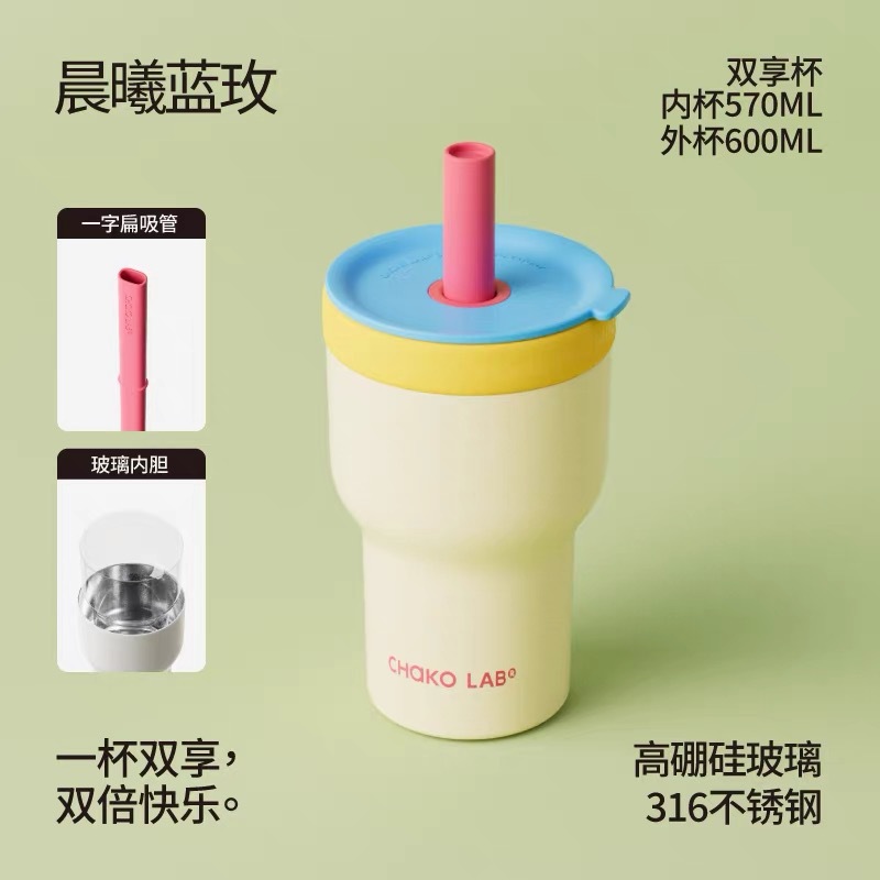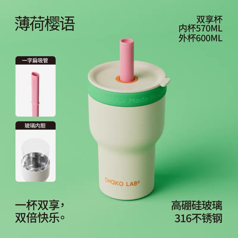 chakolab和序保温杯大容量玻璃杯水杯女生高颜值咖啡杯新款双享杯