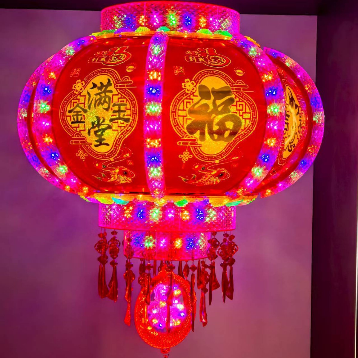 新款大红灯笼灯吊灯电动旋转春节新年七彩led走马灯厂家批发灯笼