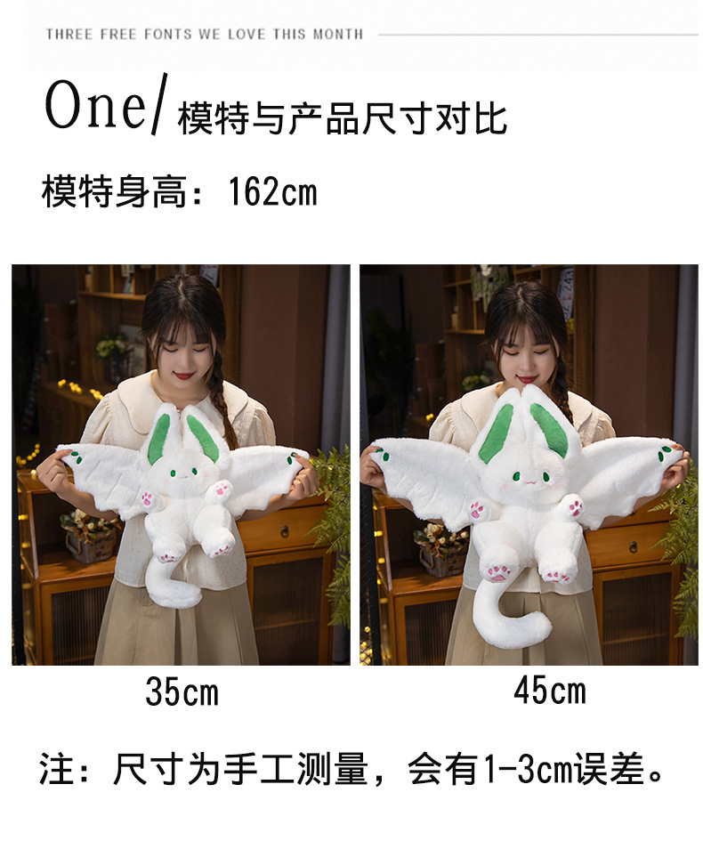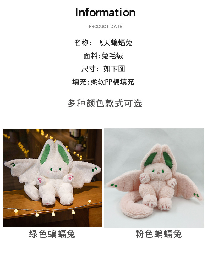 蝙蝠兔子公仔可爱飞天兔子变身大白兔娃娃毛绒玩具小福竹蝙蝠兔