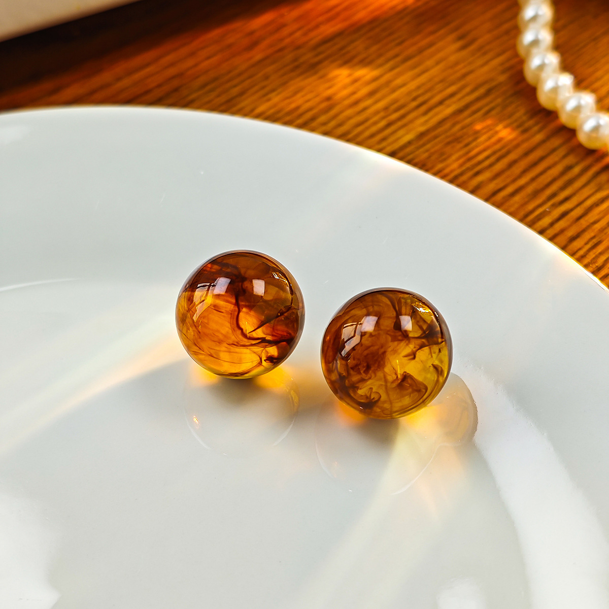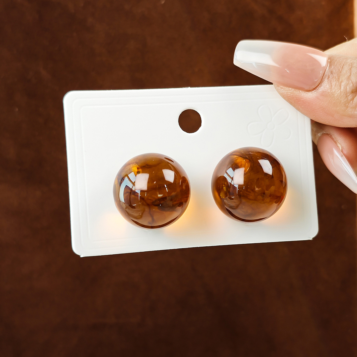 银针复古港风美拉德咖色耳环 轻奢高级感琥珀色几何圆形树脂耳钉