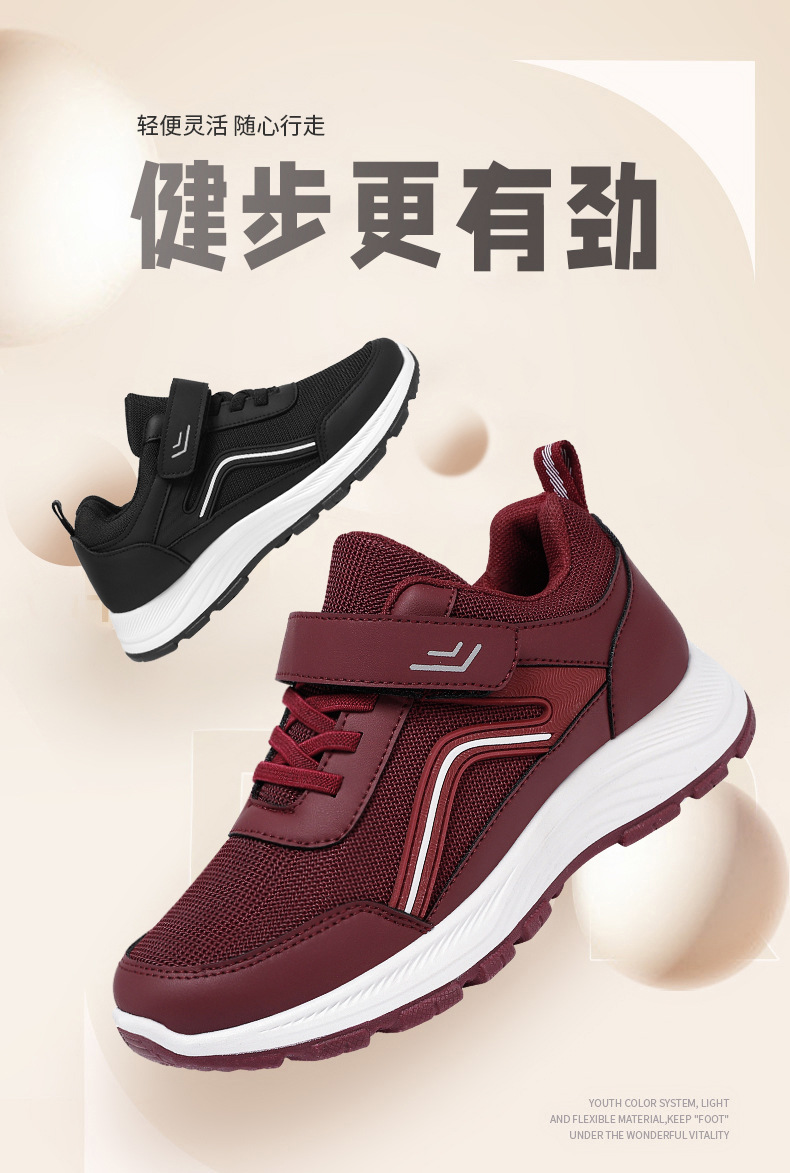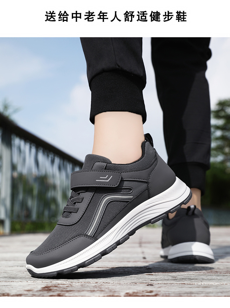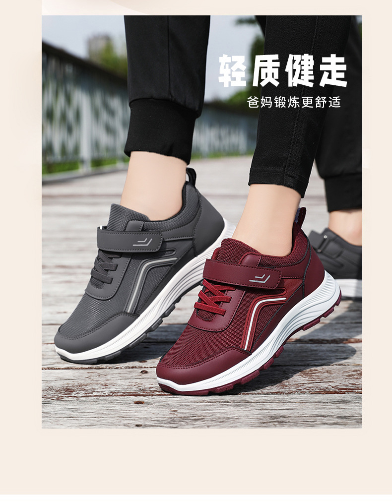 健步鞋老年休闲跑量鞋秋季新款魔术贴舒适男女鞋中老年跑步运动鞋