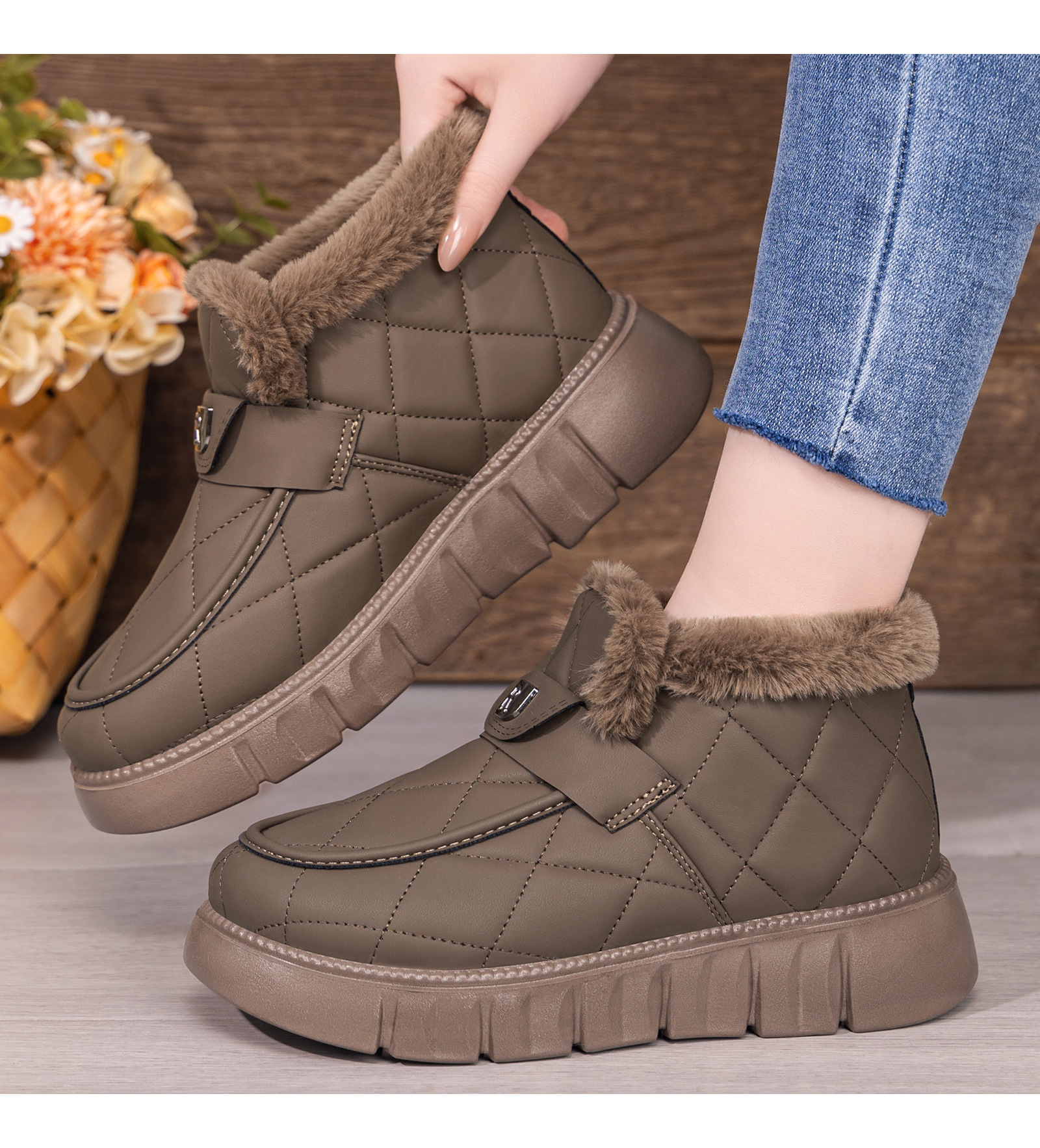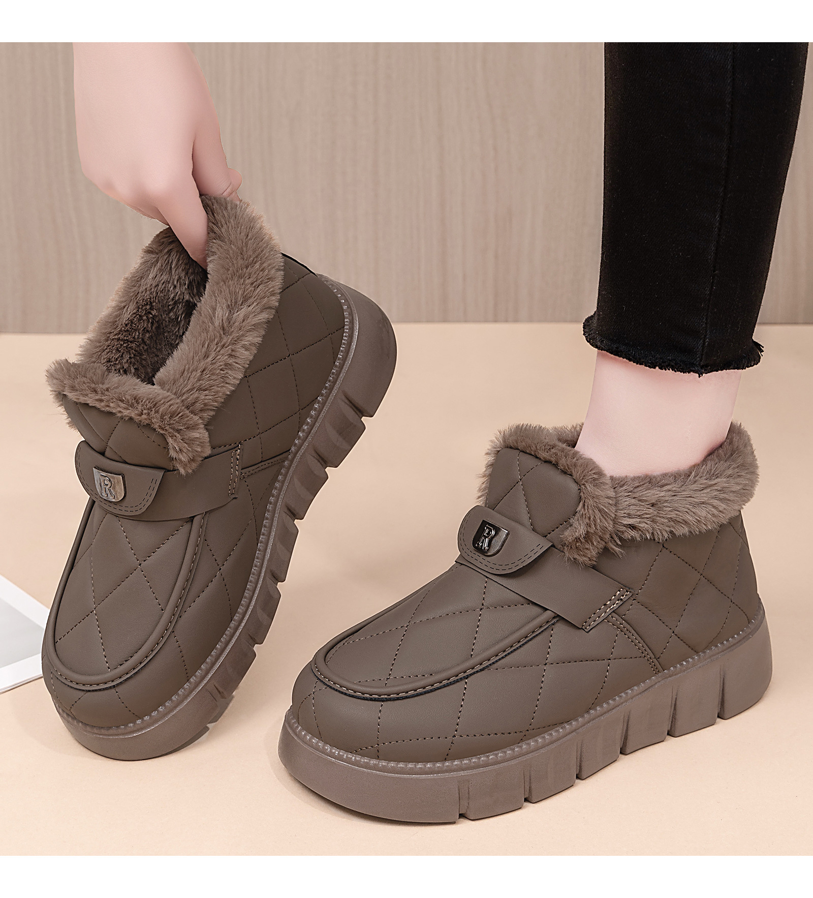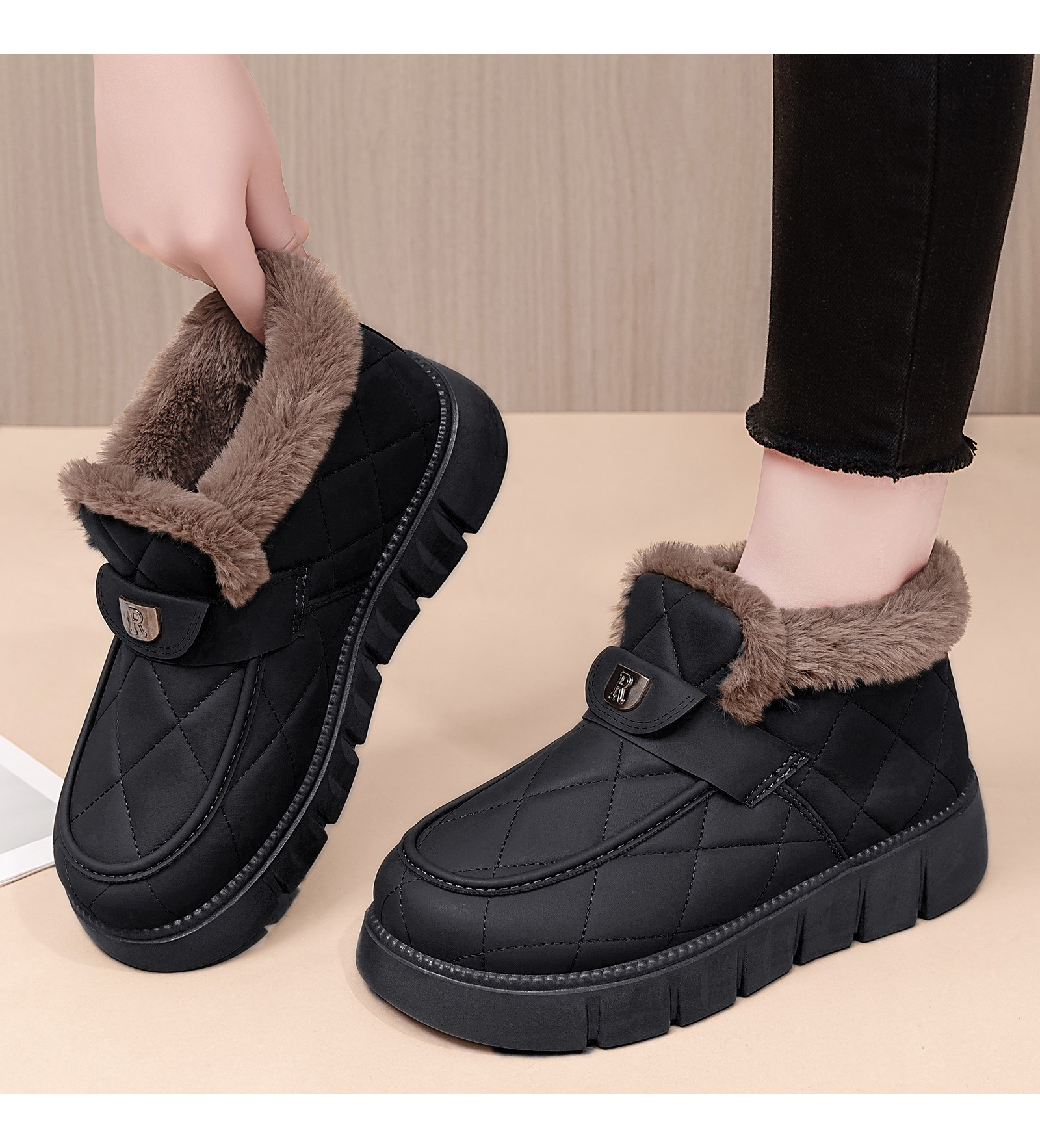 雪地靴女新款冬季加绒加厚temu爆款厚底短筒一脚蹬棉鞋保暖女鞋