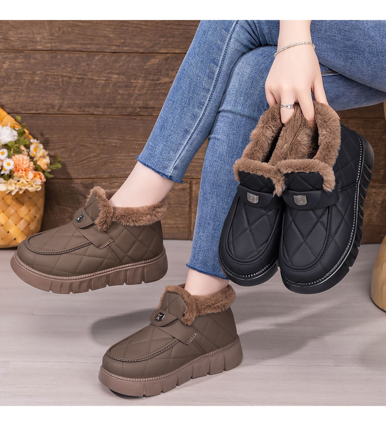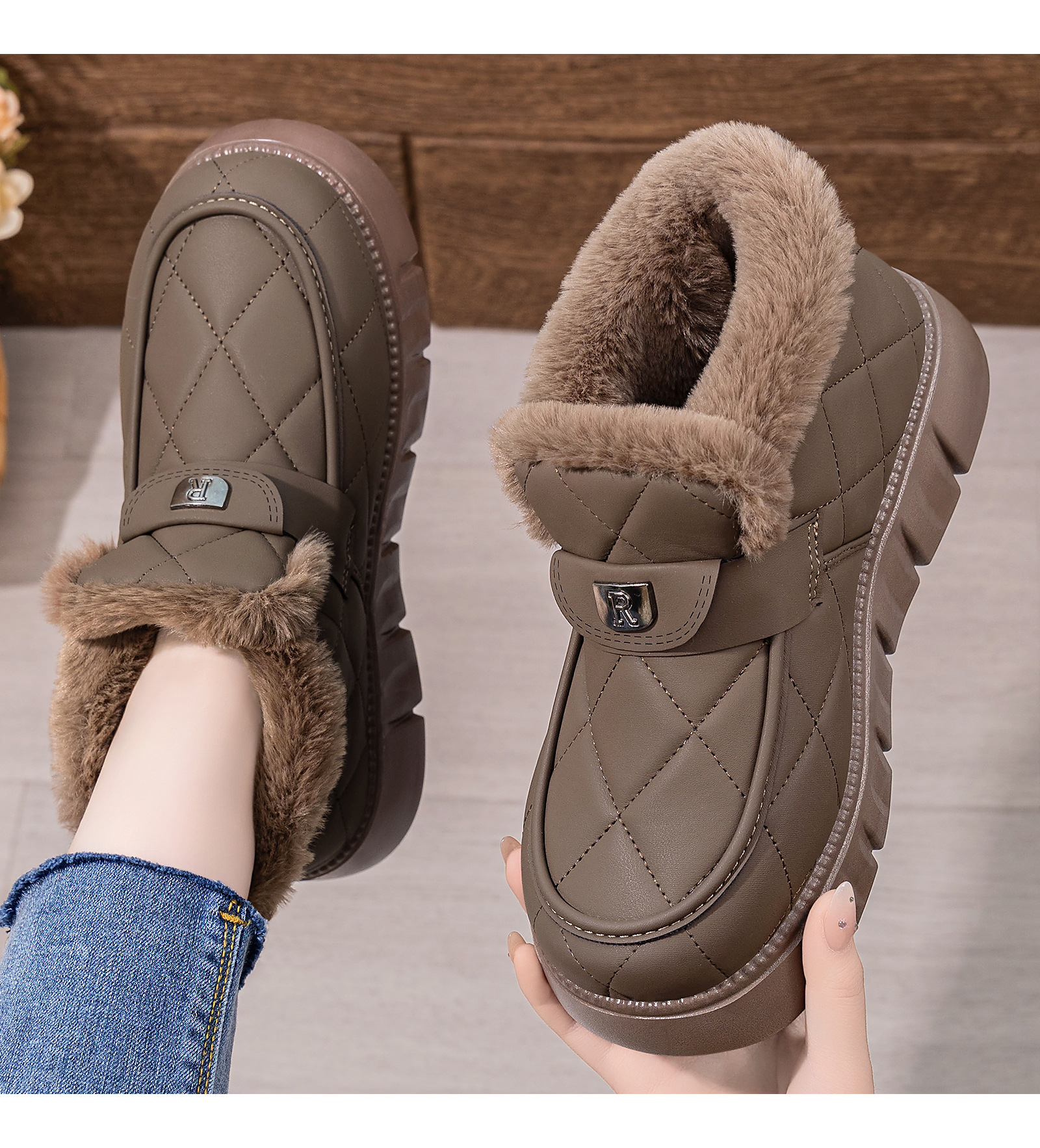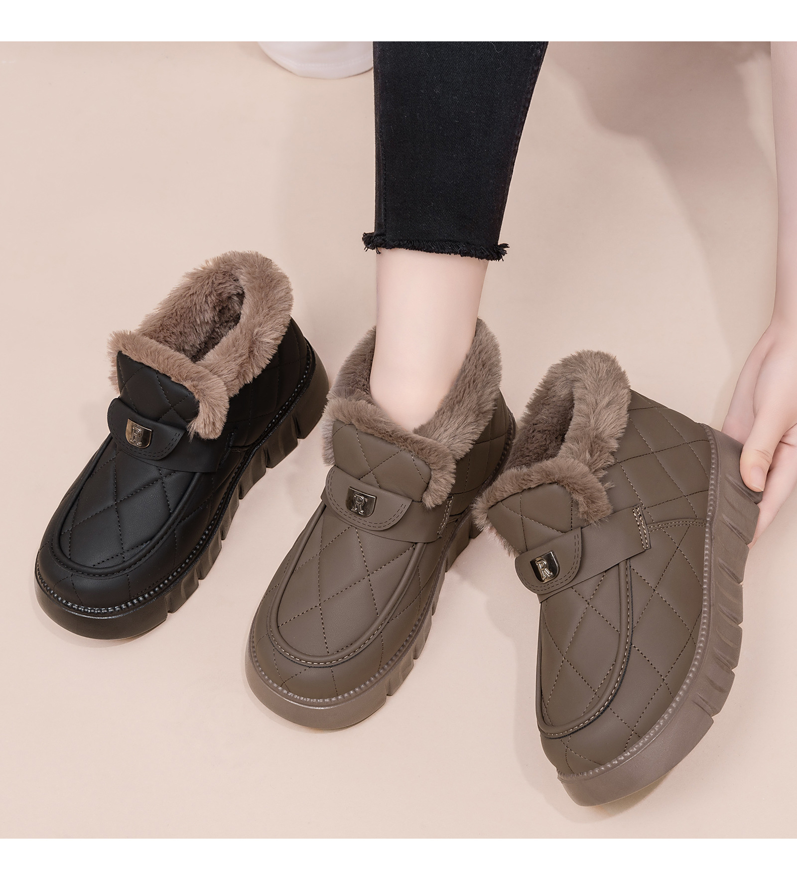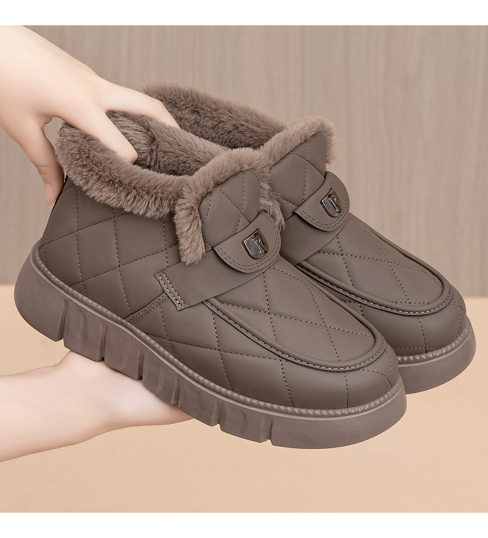 雪地靴女新款冬季加绒加厚temu爆款厚底短筒一脚蹬棉鞋保暖女鞋