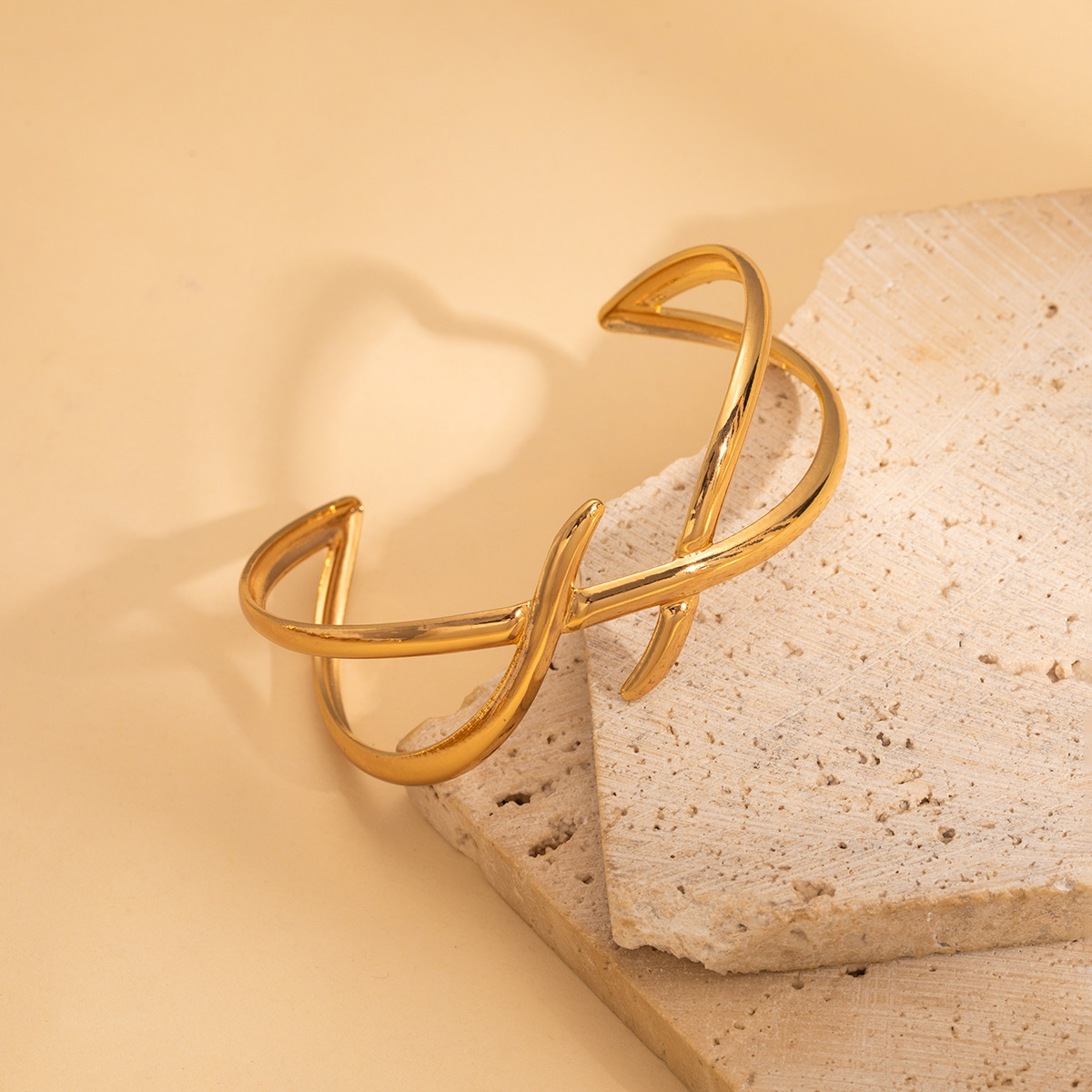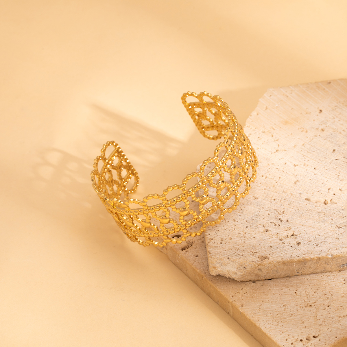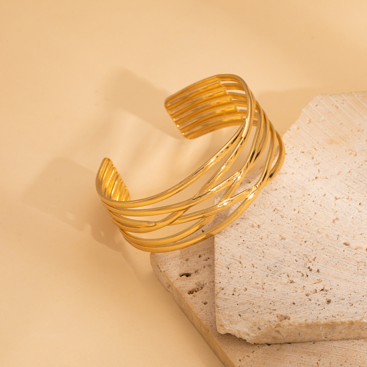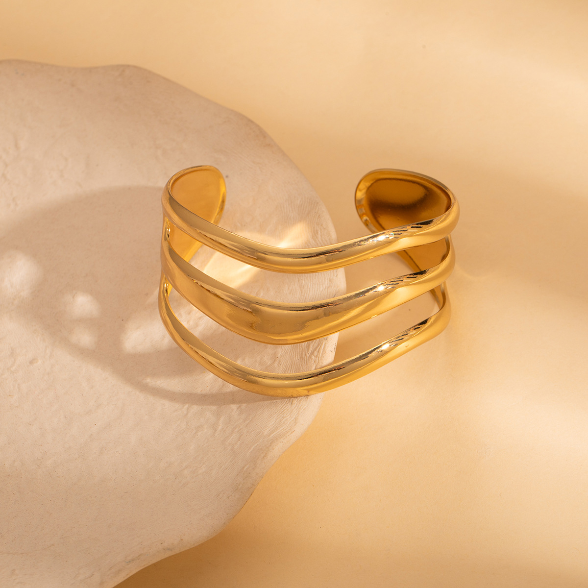 欧美新款个性夸张不规则镂空几何开口手镯跨境复古金属风重工手饰