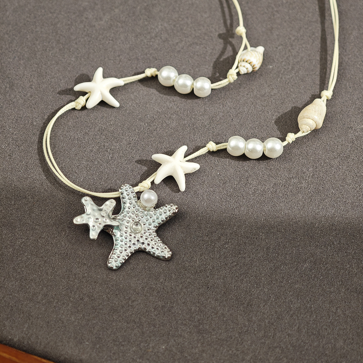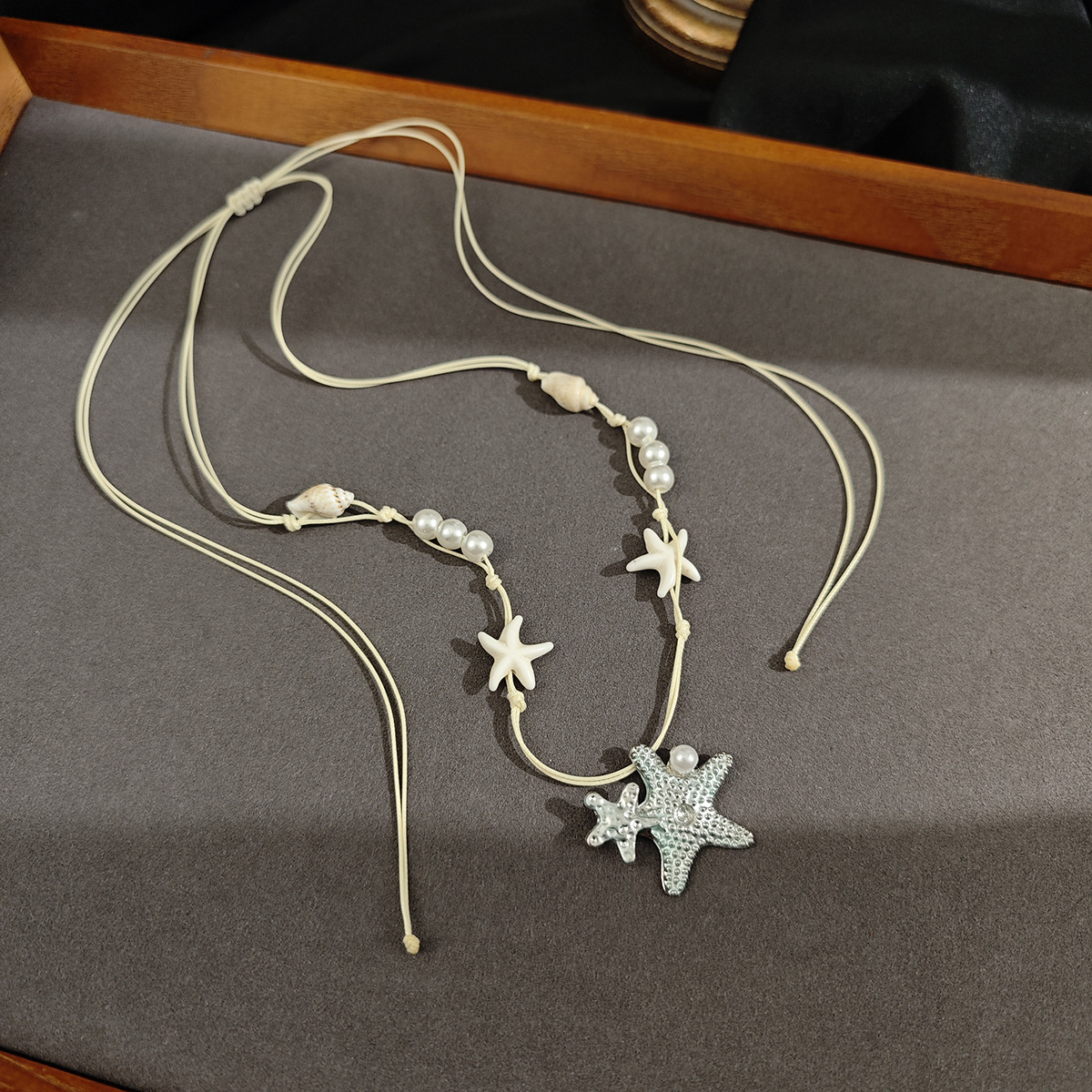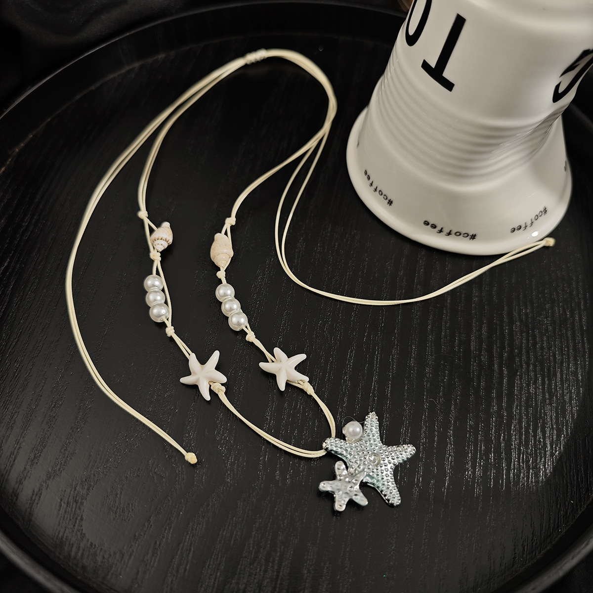 新款多巴胺星星吊坠珍珠串珠项链海边度假风气质精致氛围锁骨链女