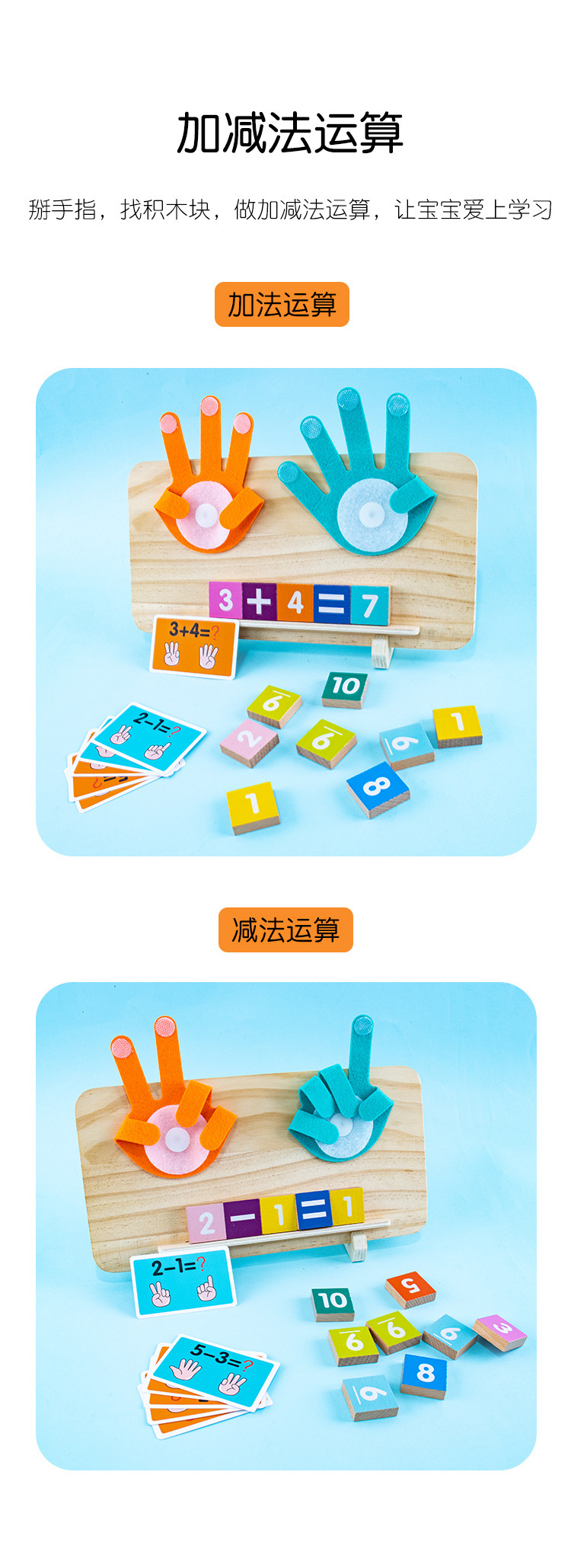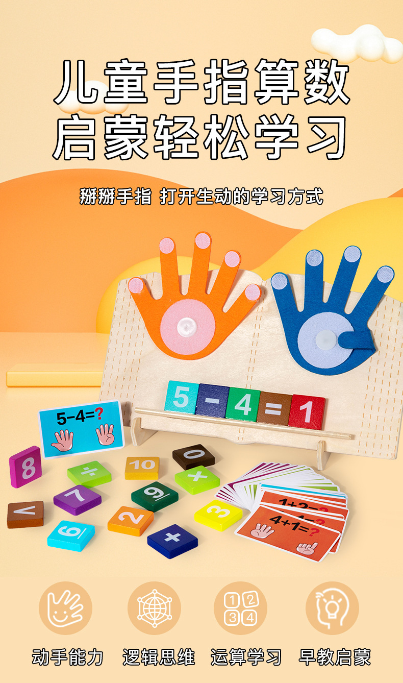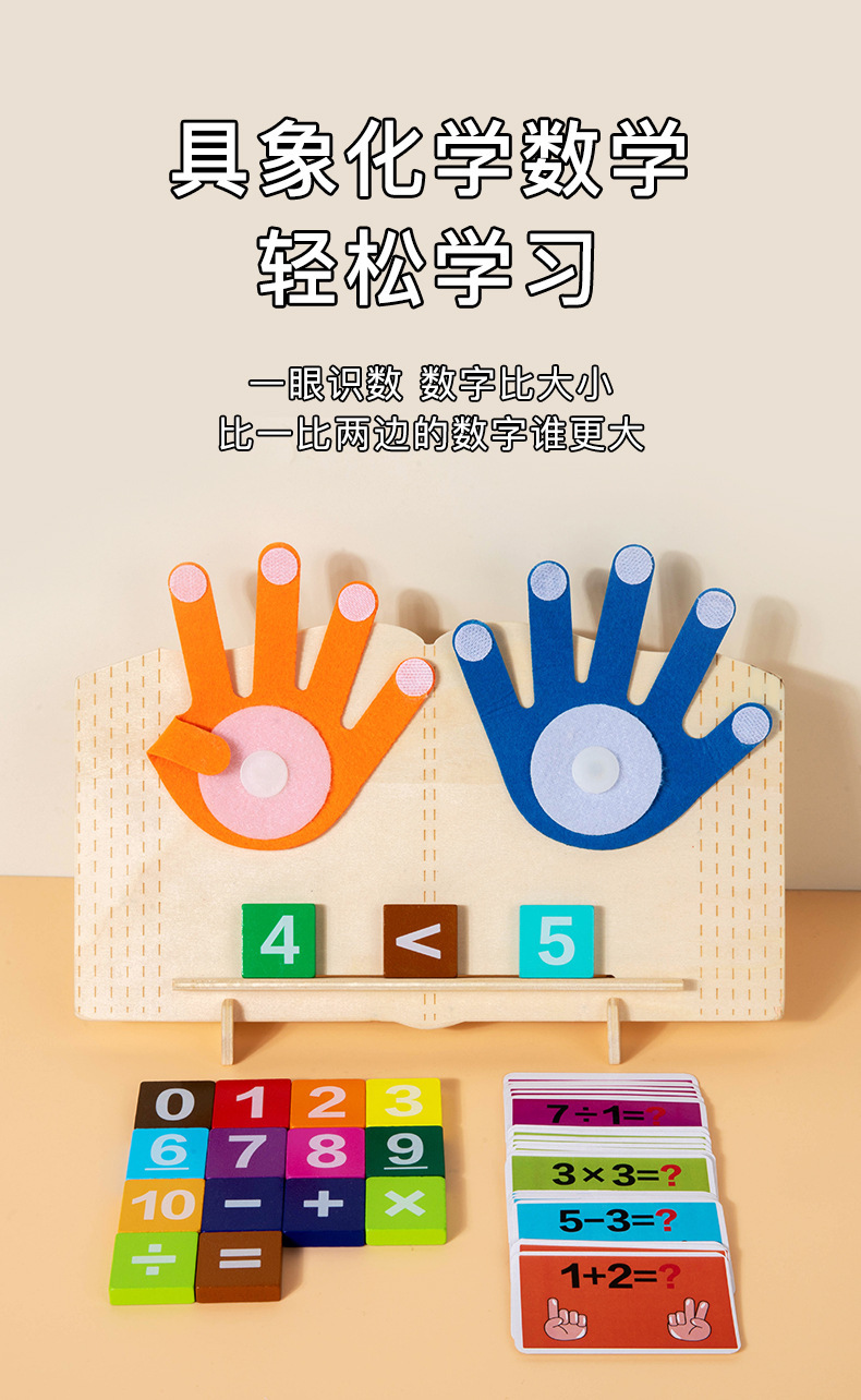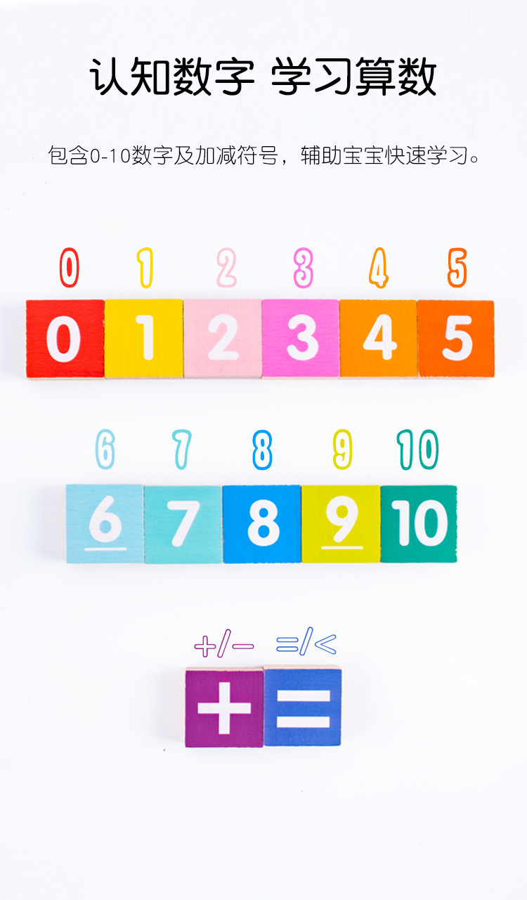 数学加减计算木制启蒙教具3-6岁儿童蒙特梭利木质早教科教玩具