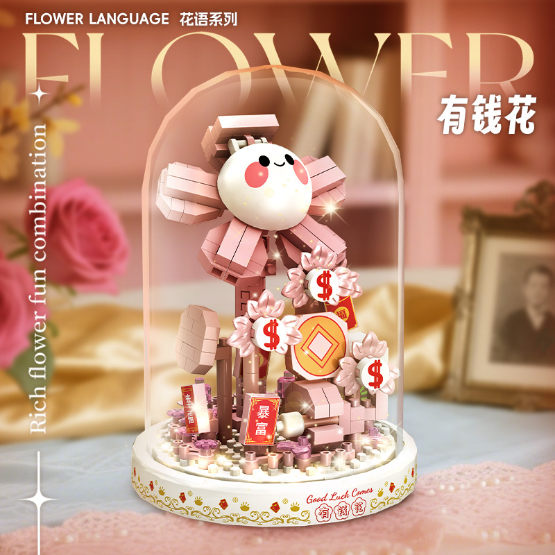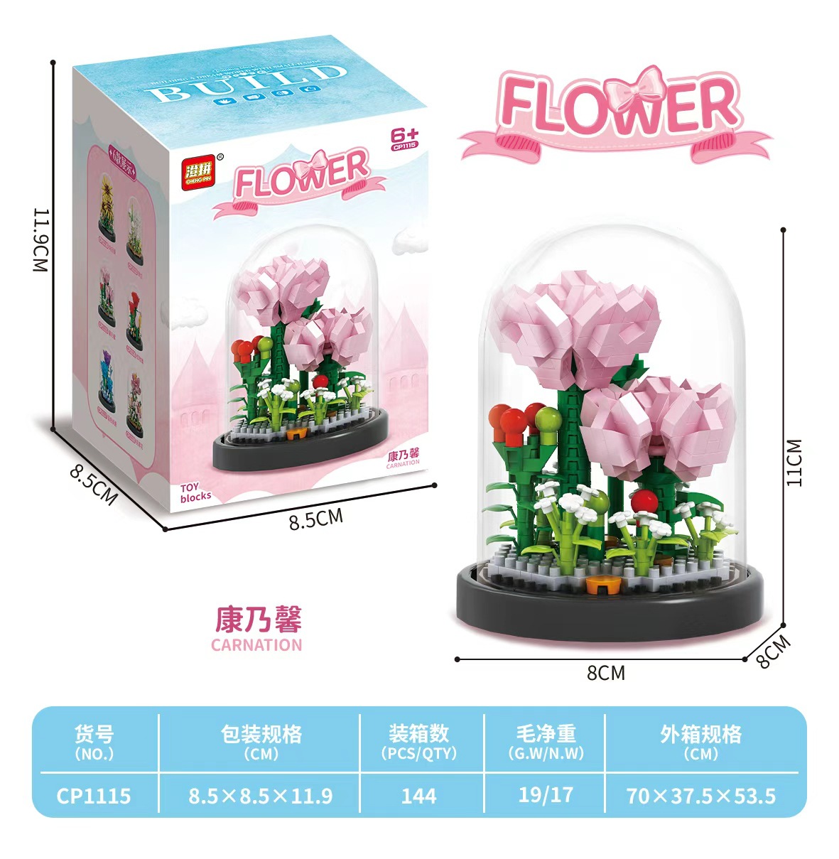 积木花玩具兼容乐高盆栽永生花女孩摆件玩具批发礼物情人节拼装花